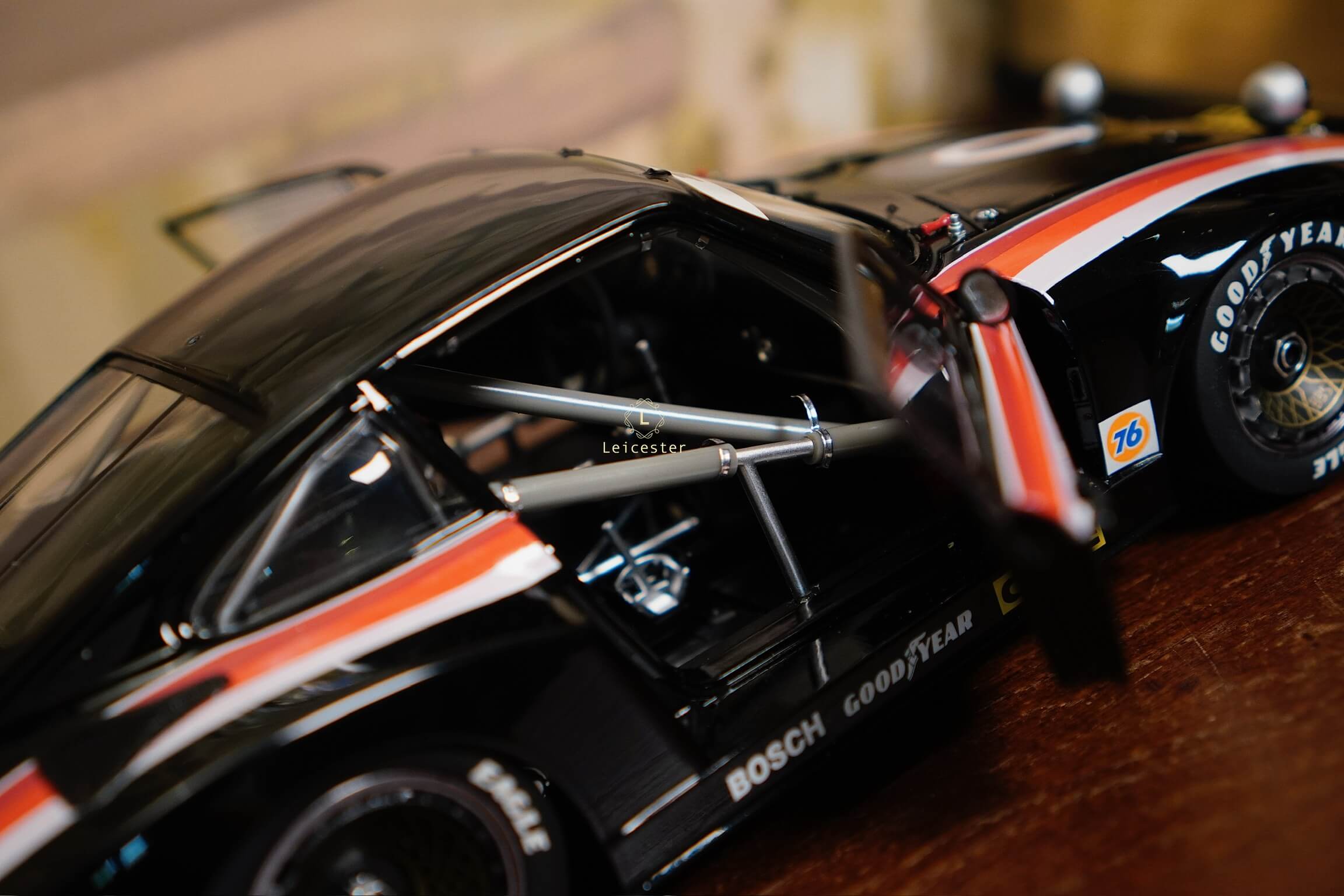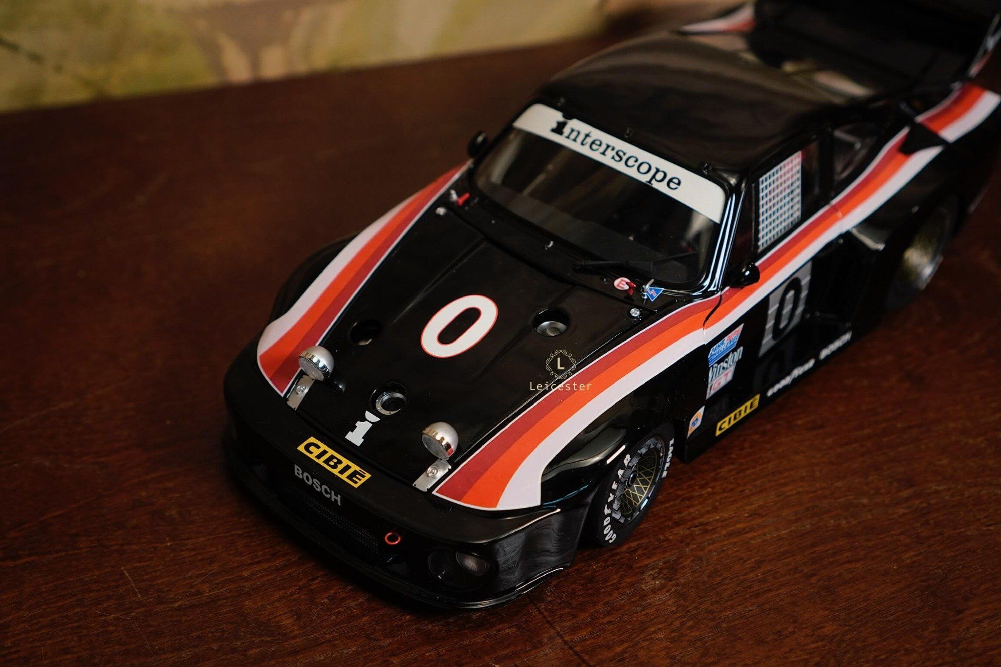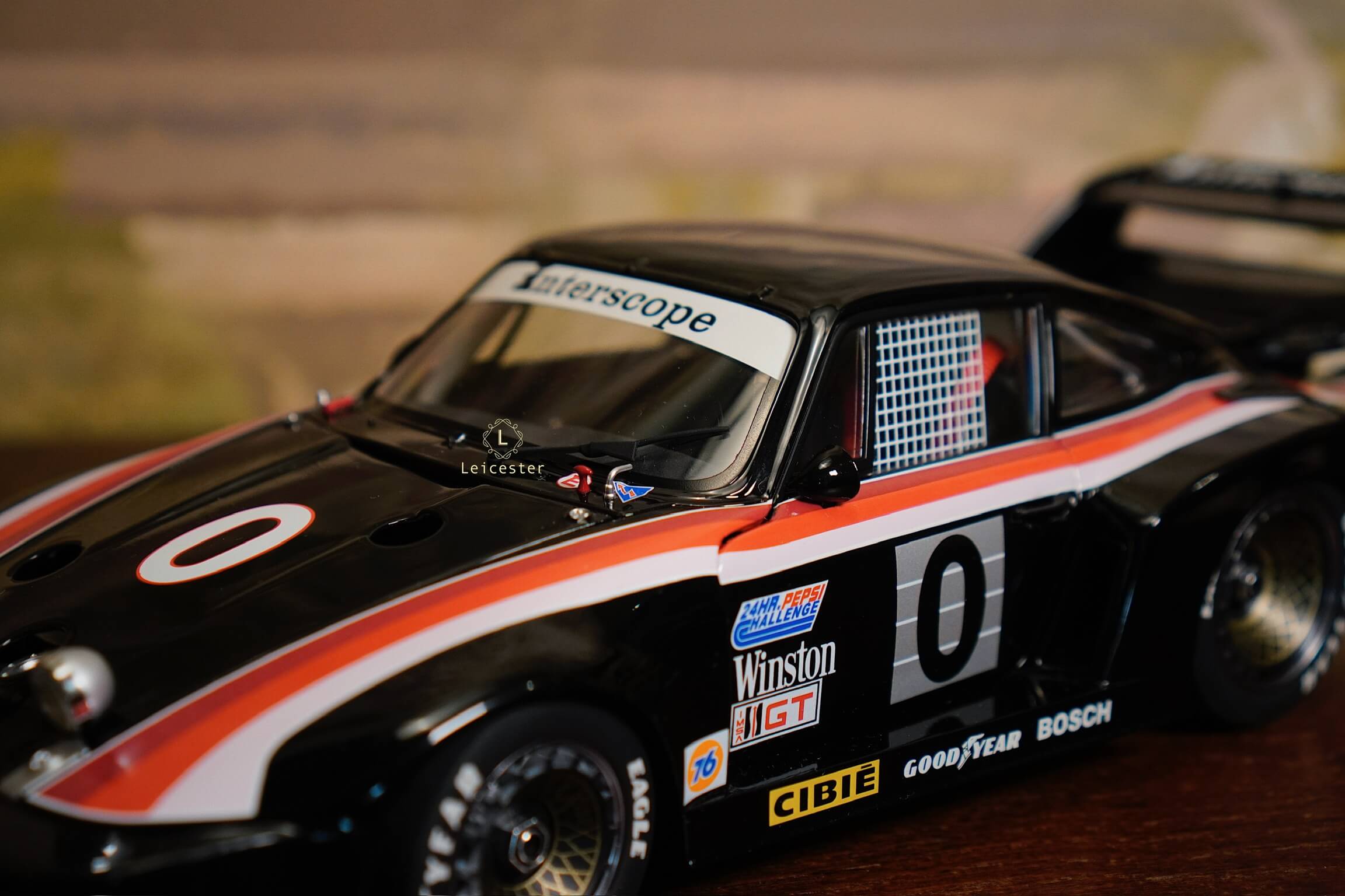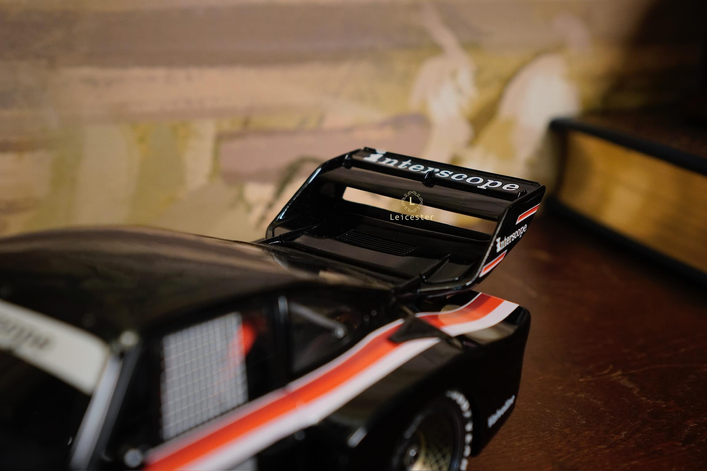 Mô hình được chế tác tinh xảo với từng chi tiết như màu sơn đen đặc trưng, sọc đỏ–trắng chạy dọc thân xe, logo Interscope trên kính chắn gió và cánh gió sau, mang đến cảm giác sống động như chiếc xe thật. Đây không chỉ là một mô hình, mà còn là biểu tượng lưu giữ khoảnh khắc huy hoàng trong lịch sử đua xe thể thao.