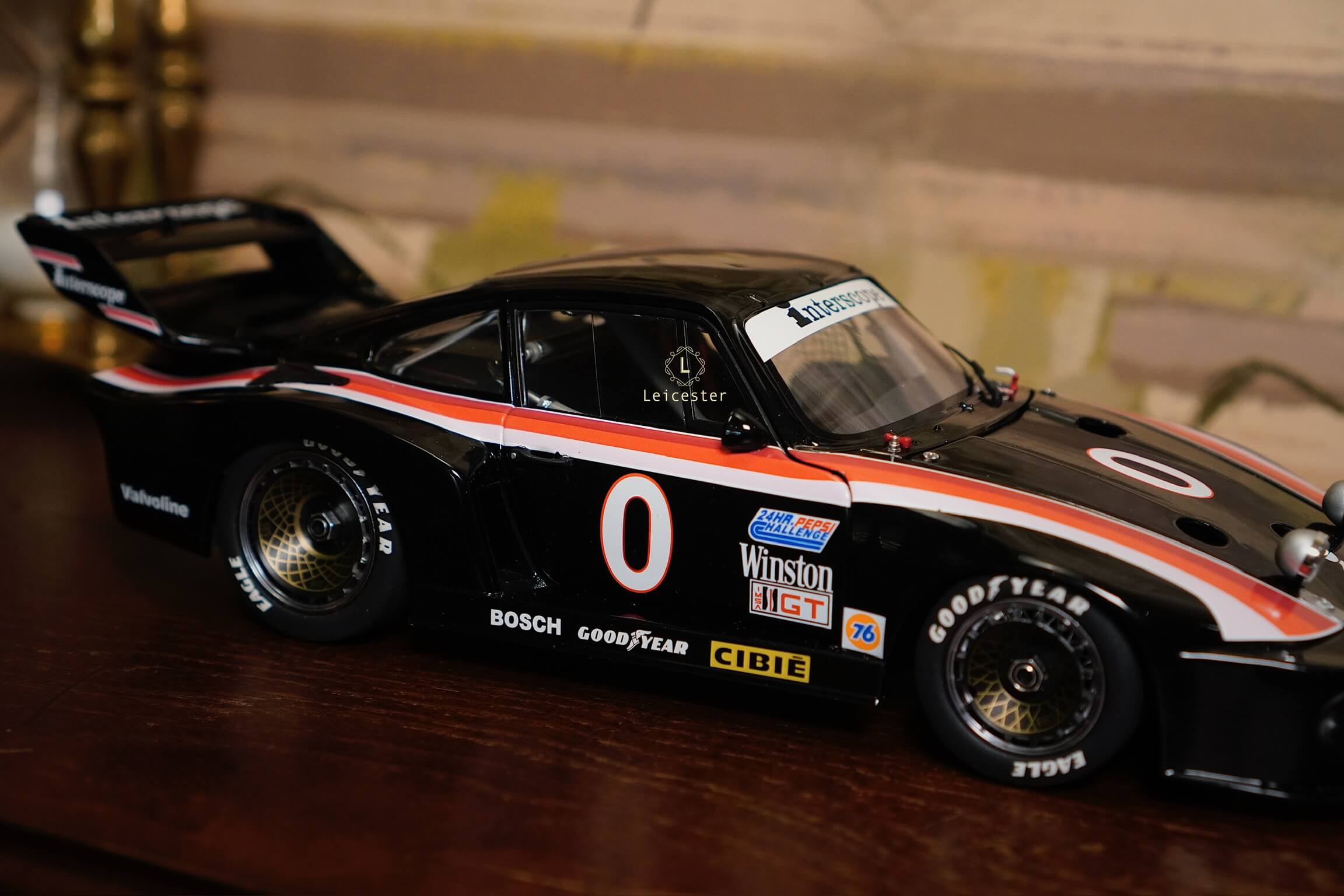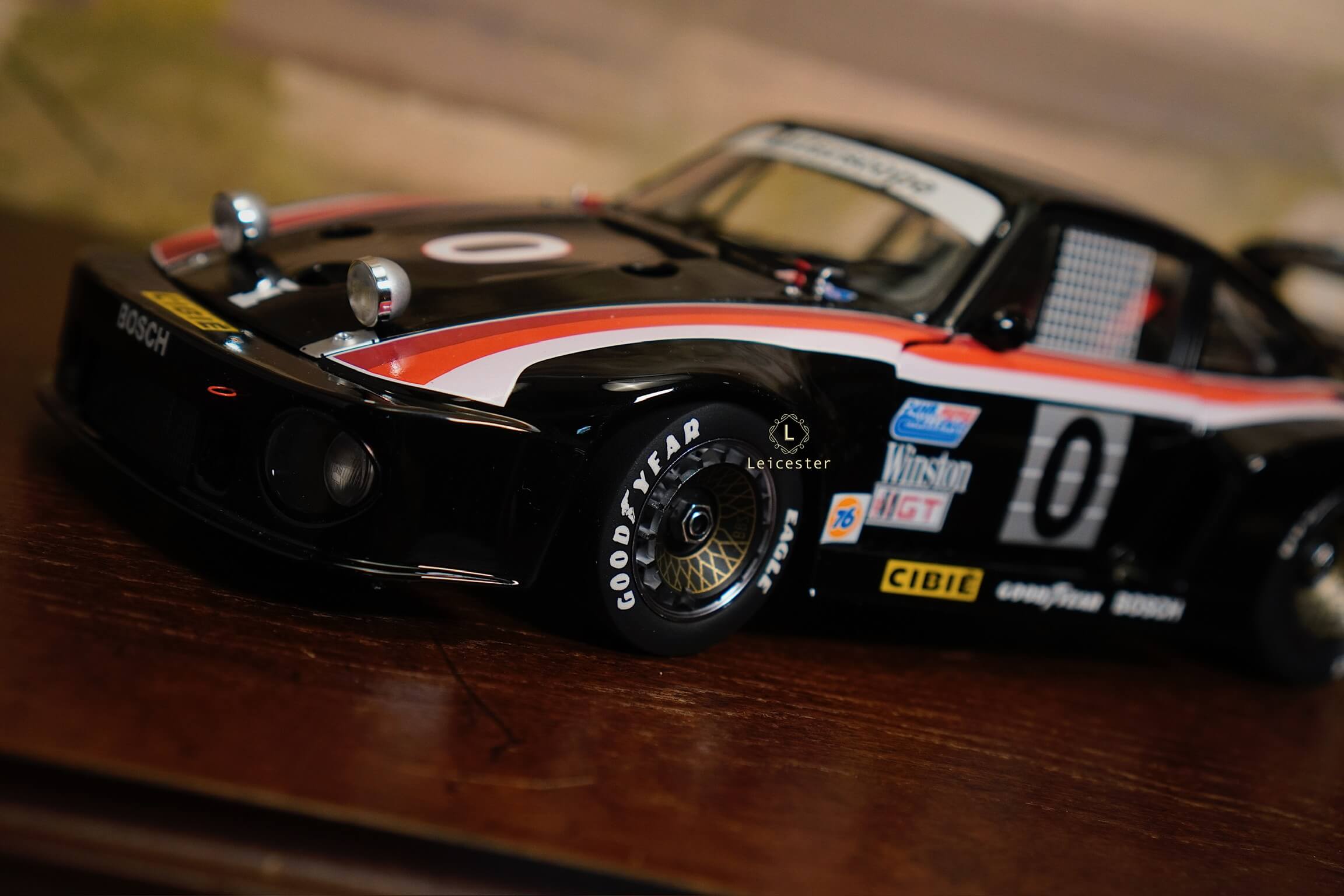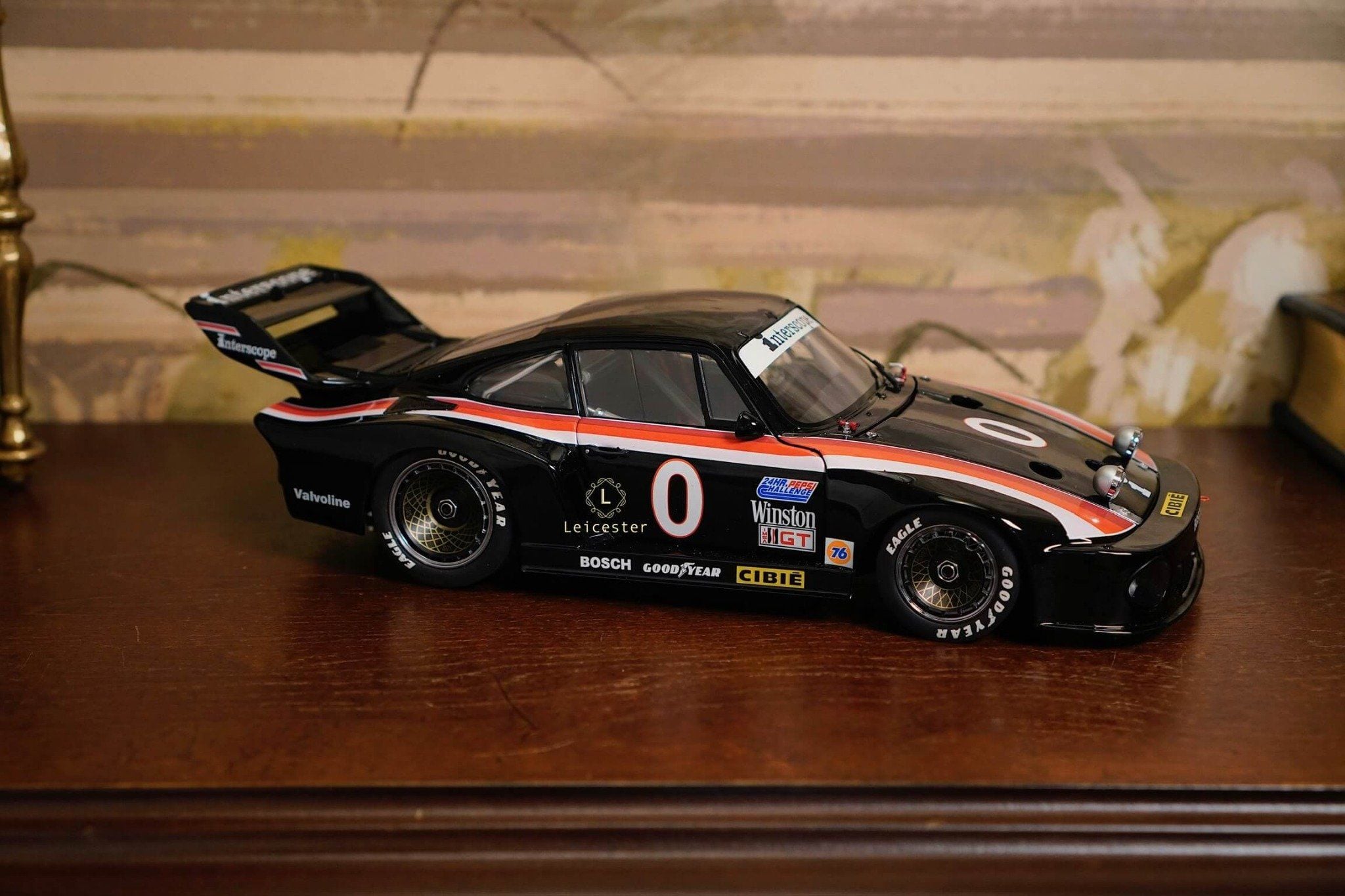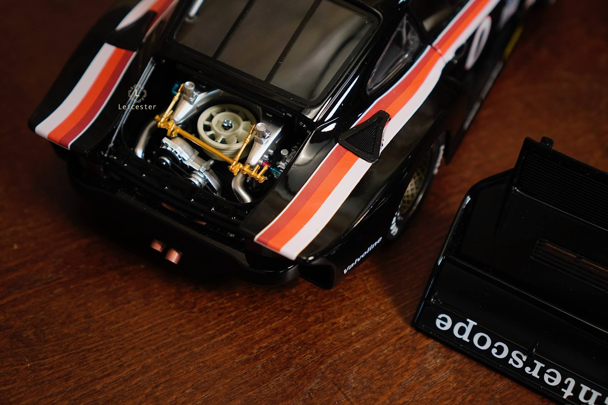 Mô hình được chế tác tinh xảo với từng chi tiết như màu sơn đen đặc trưng, sọc đỏ–trắng chạy dọc thân xe, logo Interscope trên kính chắn gió và cánh gió sau, mang đến cảm giác sống động như chiếc xe thật. Đây không chỉ là một mô hình, mà còn là biểu tượng lưu giữ khoảnh khắc huy hoàng trong lịch sử đua xe thể thao.