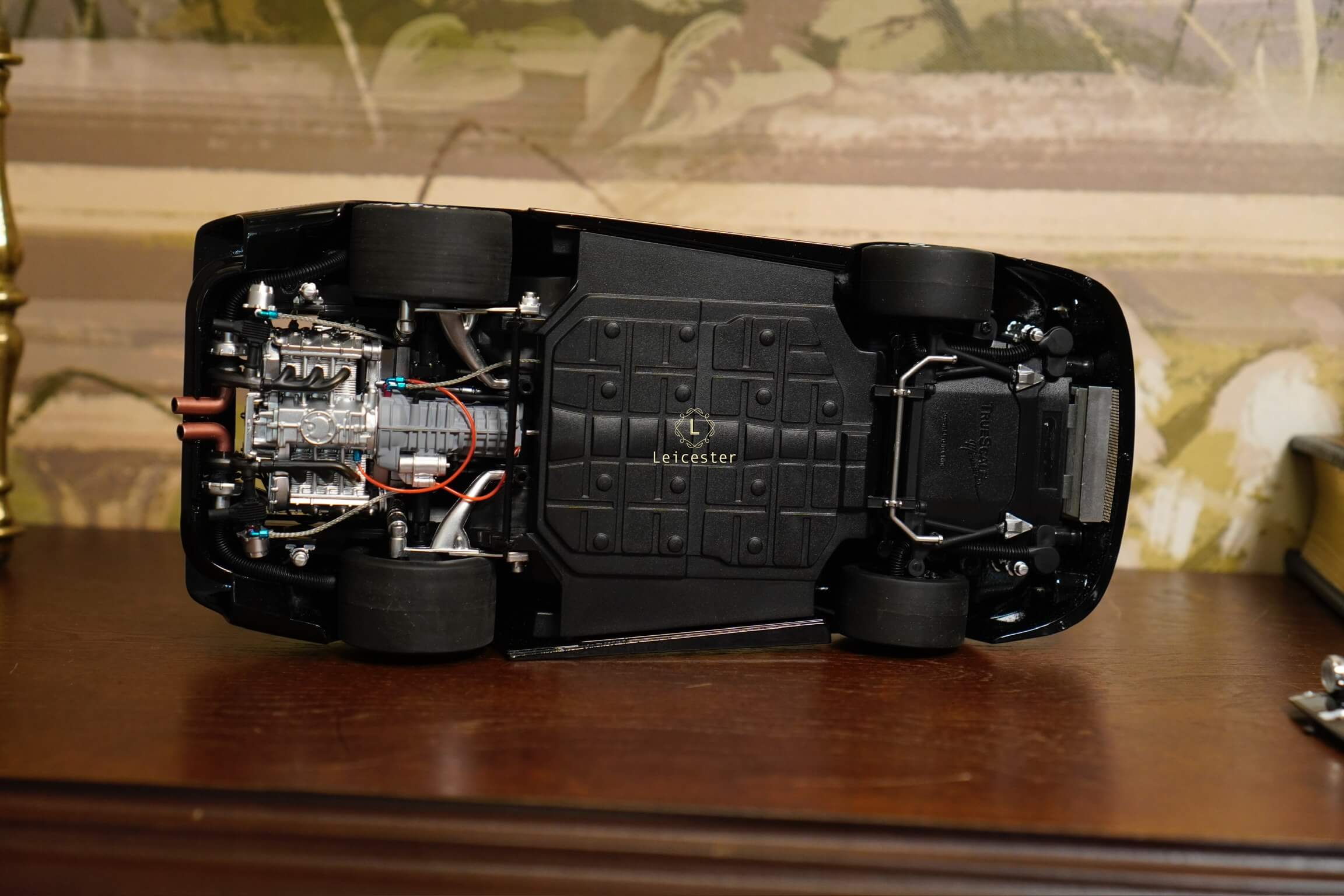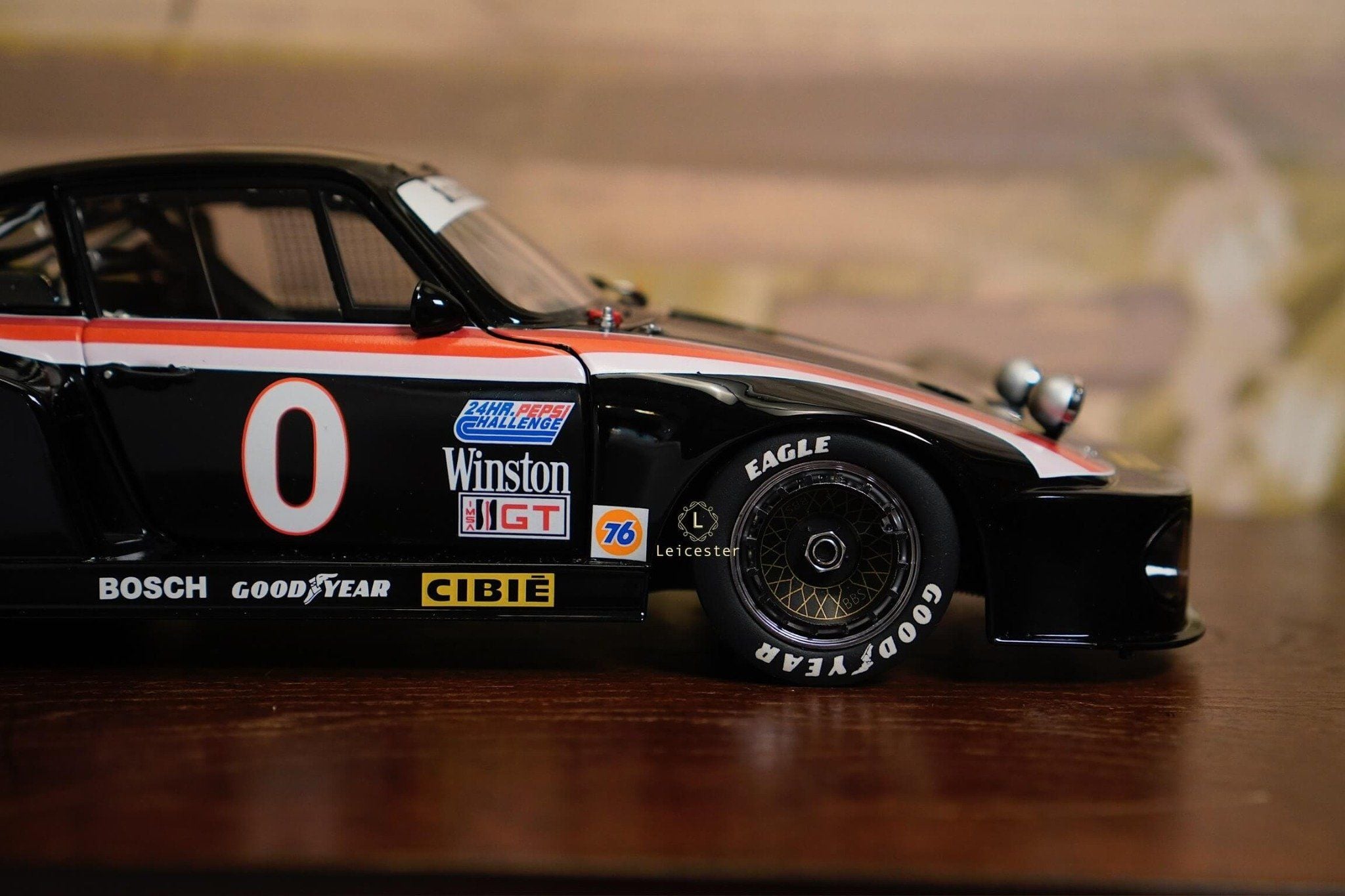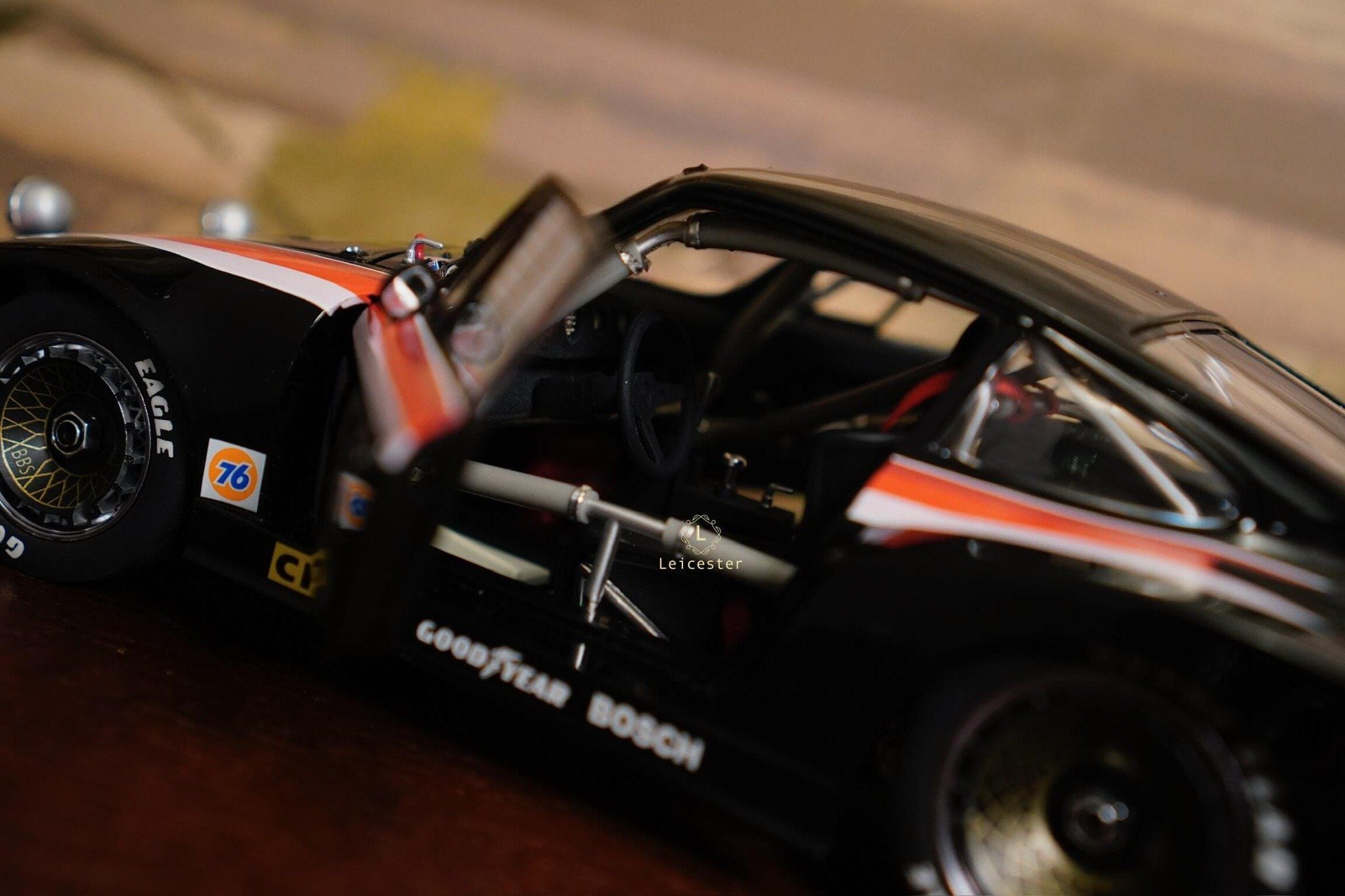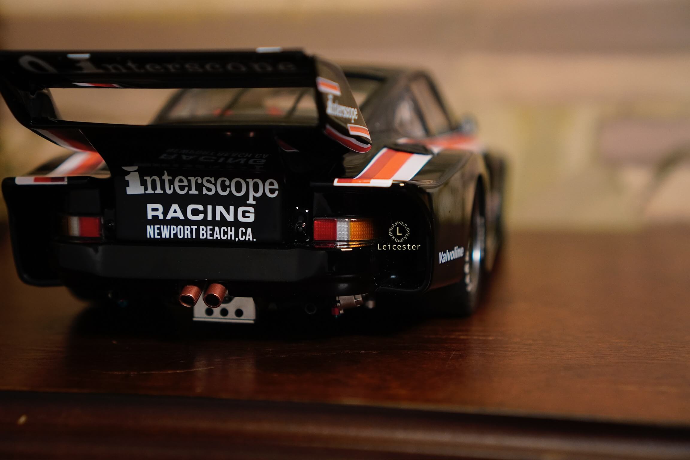 Mô hình được chế tác tinh xảo với từng chi tiết như màu sơn đen đặc trưng, sọc đỏ–trắng chạy dọc thân xe, logo Interscope trên kính chắn gió và cánh gió sau, mang đến cảm giác sống động như chiếc xe thật. Đây không chỉ là một mô hình, mà còn là biểu tượng lưu giữ khoảnh khắc huy hoàng trong lịch sử đua xe thể thao.