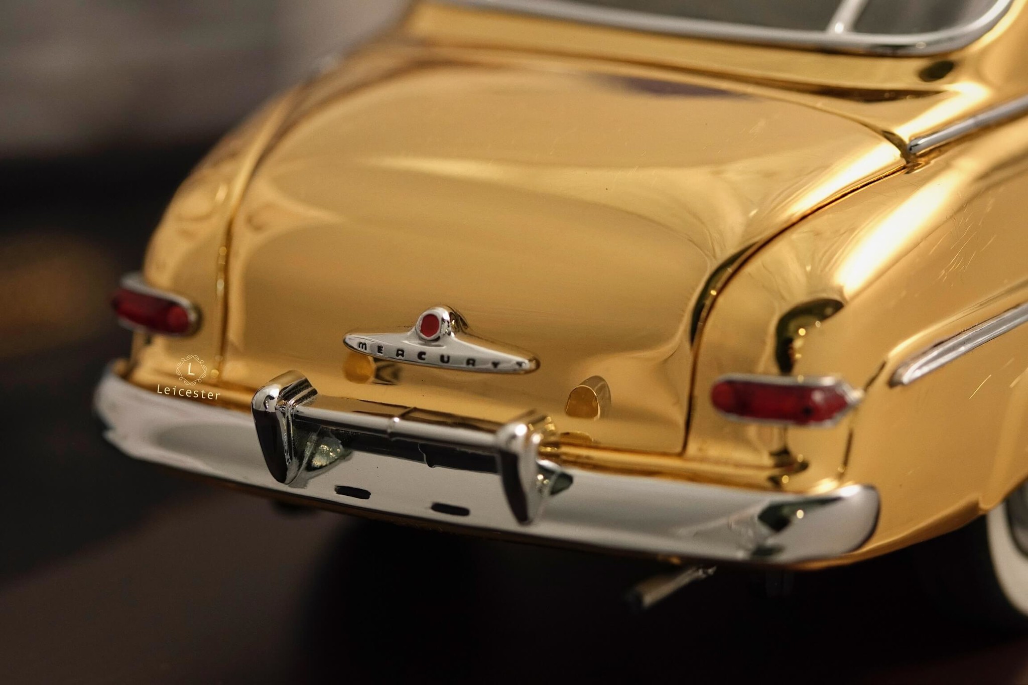 Chiếc Mercury Club Coupe được tái tạo lại trong một bản sao mạ vàng 24K với tỷ lệ 1:24 được chế tác, lắp ráp thủ công từ nhiều thành phần riêng biệt từ bộ máy ấn tượng dưới mui xe đến các chi tiết như ghế ngồi và lốp xe.