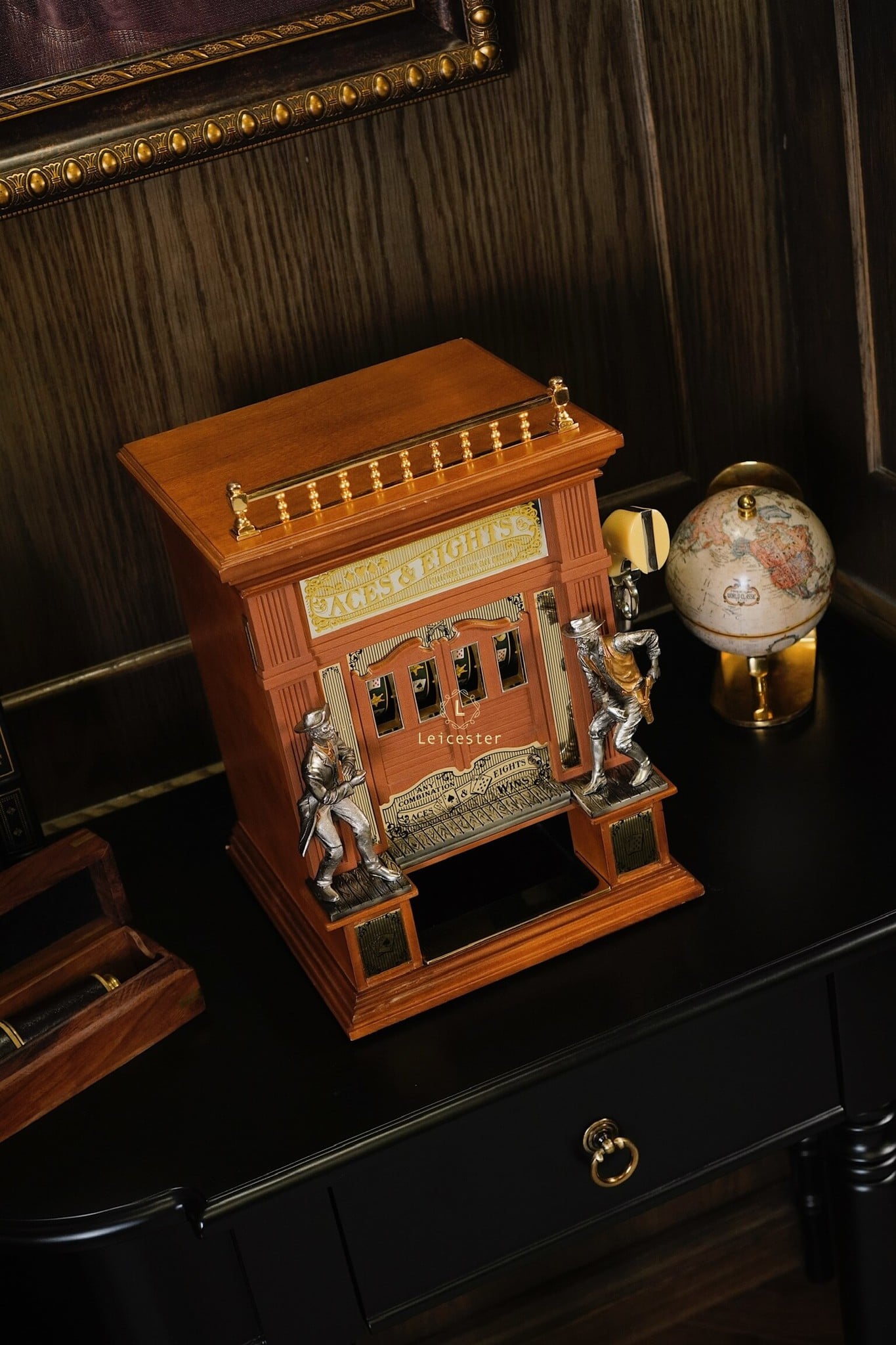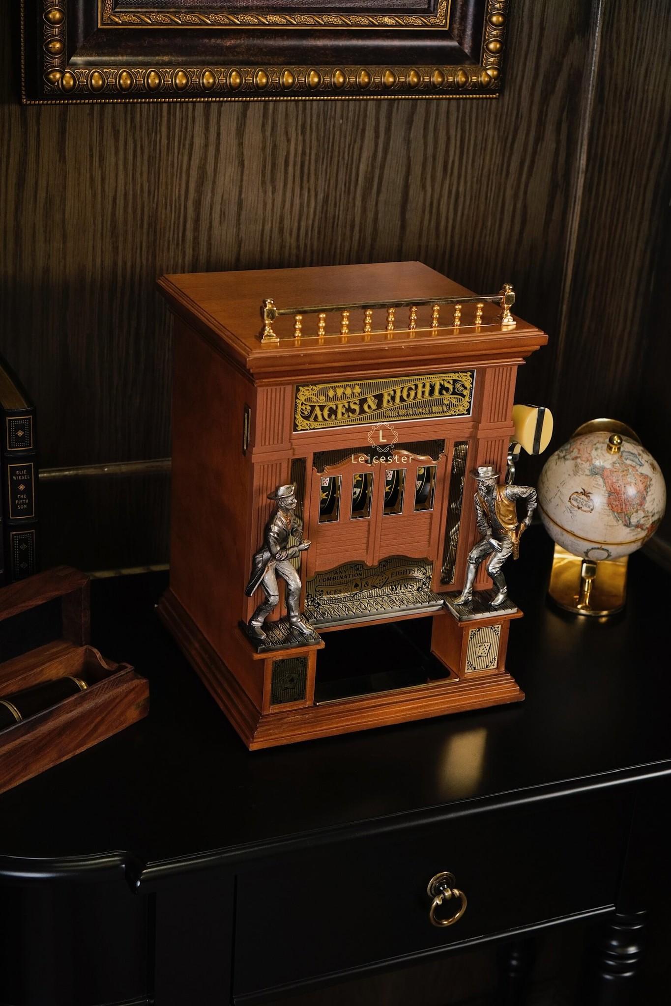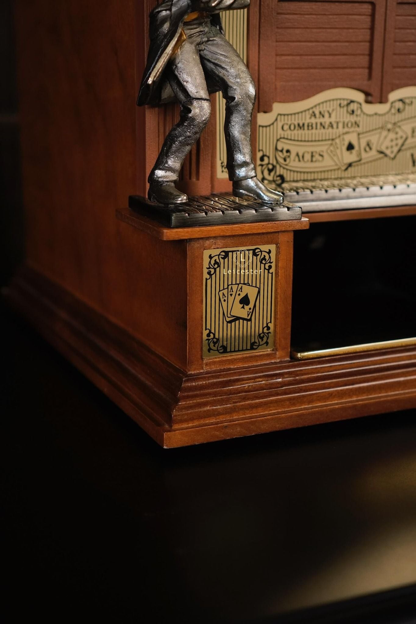 Bộ máy Aces & Eights Western được chế tác từ gỗ tự nhiên cao cấp kết hợp chi tiết kim loại và mạ vàng đúc tinh xảo cùng cơ chế hoạt động tay gạt cổ điển, mang lại trải nghiệm đậm chất hoài cổ. Không chỉ là một thiết bị giải trí, “Aces & Eights” còn là kiệt tác cơ học mang đậm chất lịch sử, thích hợp trong không gian sang trọng, sưu tầm hoặc các bộ sưu tập mang phong cách vintage cao cấp.