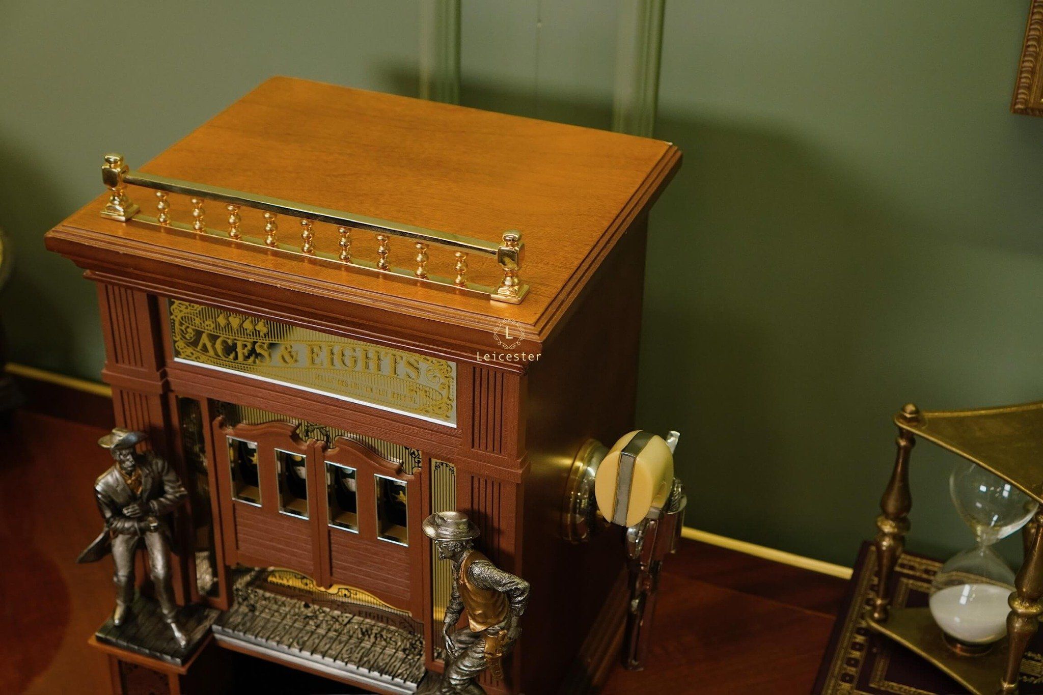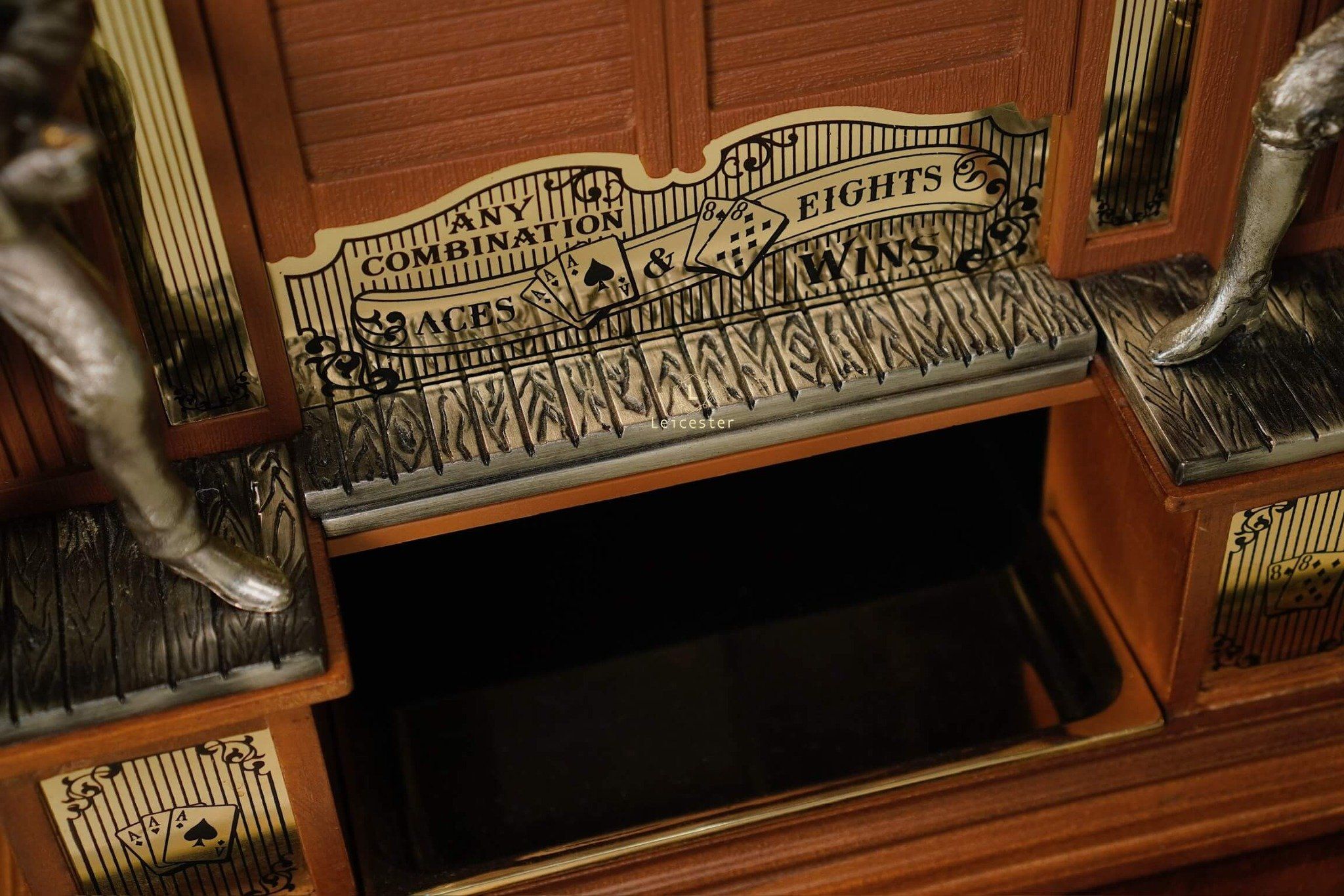 Bộ máy Aces & Eights Western được chế tác từ gỗ tự nhiên cao cấp kết hợp chi tiết kim loại và mạ vàng đúc tinh xảo cùng cơ chế hoạt động tay gạt cổ điển, mang lại trải nghiệm đậm chất hoài cổ. Không chỉ là một thiết bị giải trí, “Aces & Eights” còn là kiệt tác cơ học mang đậm chất lịch sử, thích hợp trong không gian sang trọng, sưu tầm hoặc các bộ sưu tập mang phong cách vintage cao cấp.