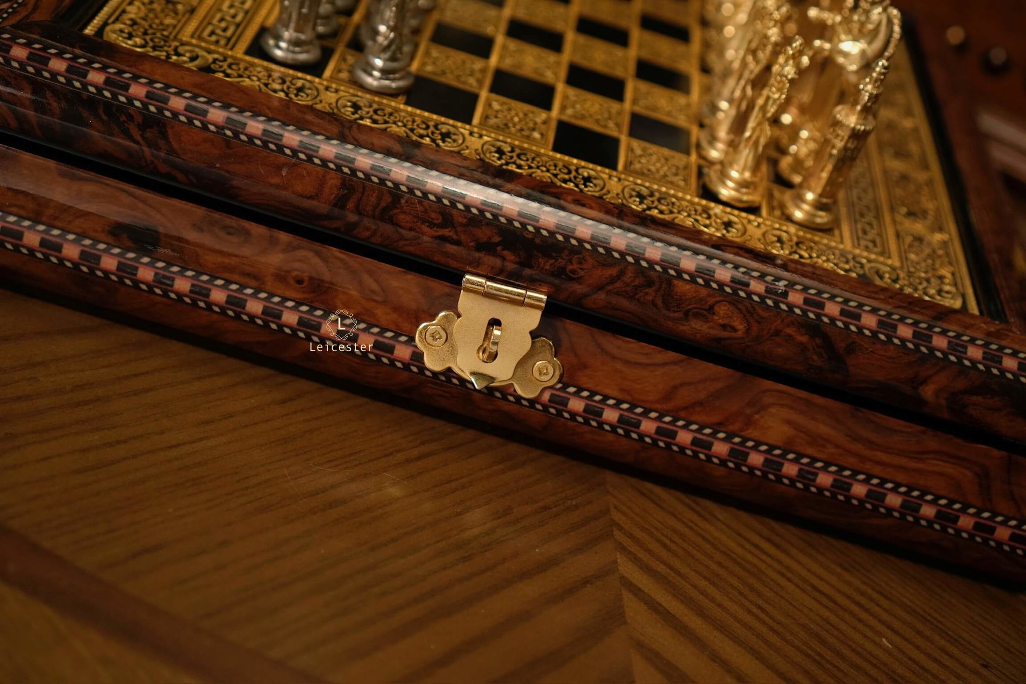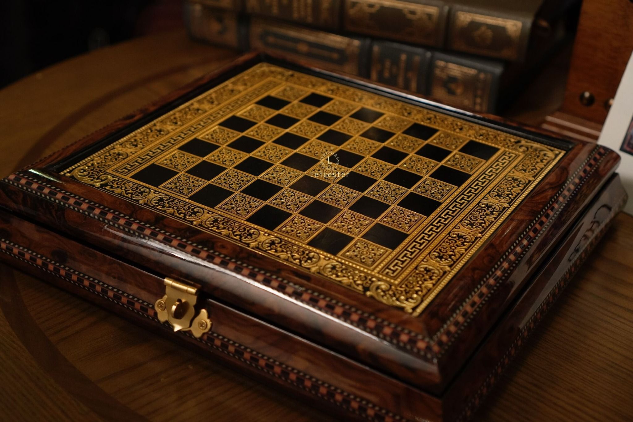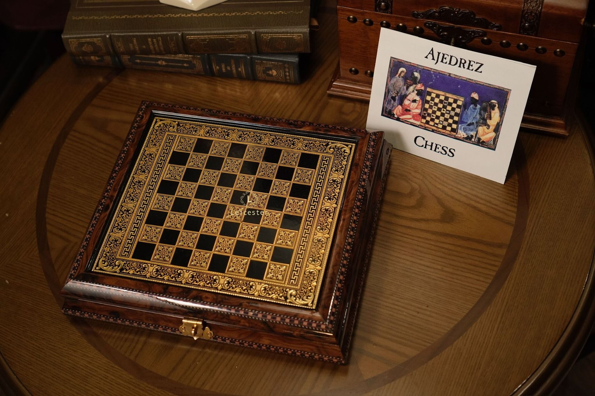 Đây là sản phẩm của Manufacturas Anframa, một nhà sản xuất các mặt hàng Damascene hàng đầu thế giới, với tiêu chí bảo tồn bản chất truyền thống nghệ thuật Toledo (được biết đến từ thời kỳ Phục Hưng và được nhà Anframa lưu truyền, phát triển độc quyền ở Toledo, Tây Ban Nha). Kiệt tác nhỏ này chính là sự mô tả lại một bàn cờ điêu khắc bằng gỗ của vị vua người Ý ở thế kỷ 15, giai đoạn cờ vua được cho là thú vui trí tuệ của giới Hoàng Gia thời bấy giờ.