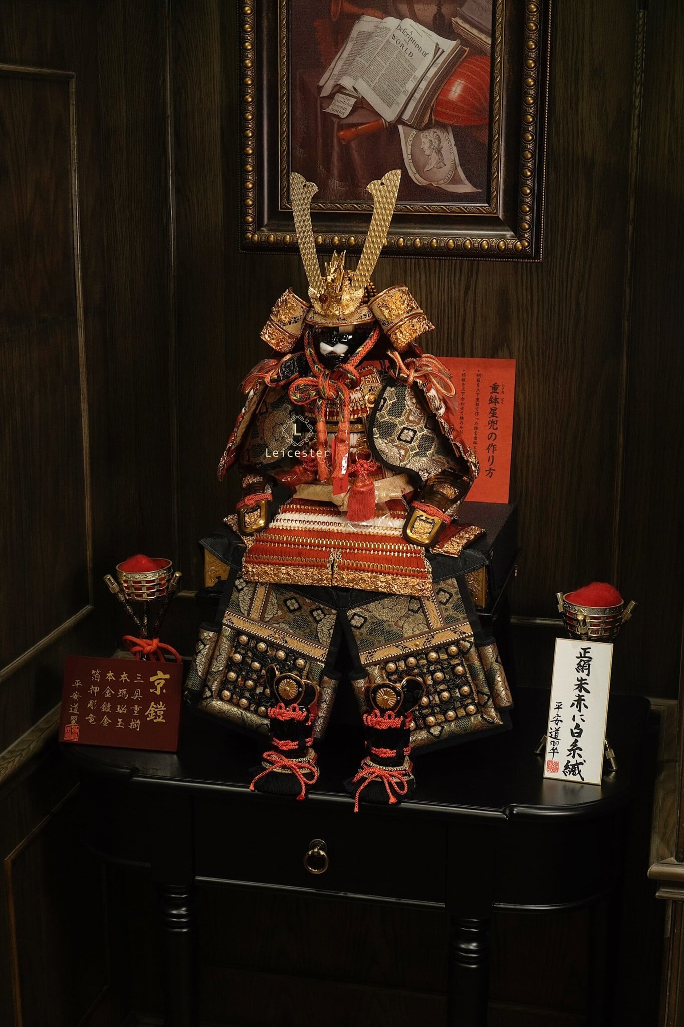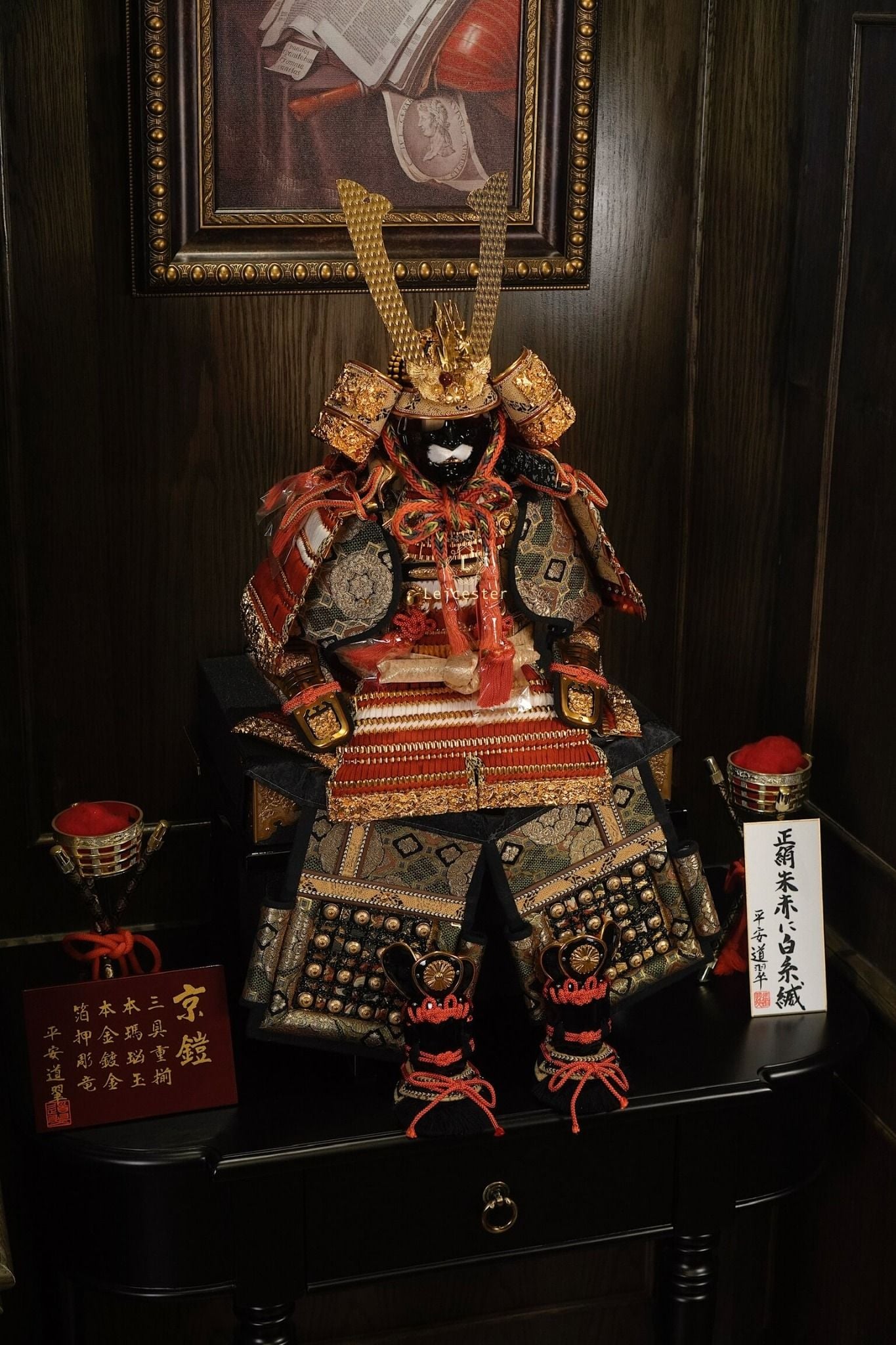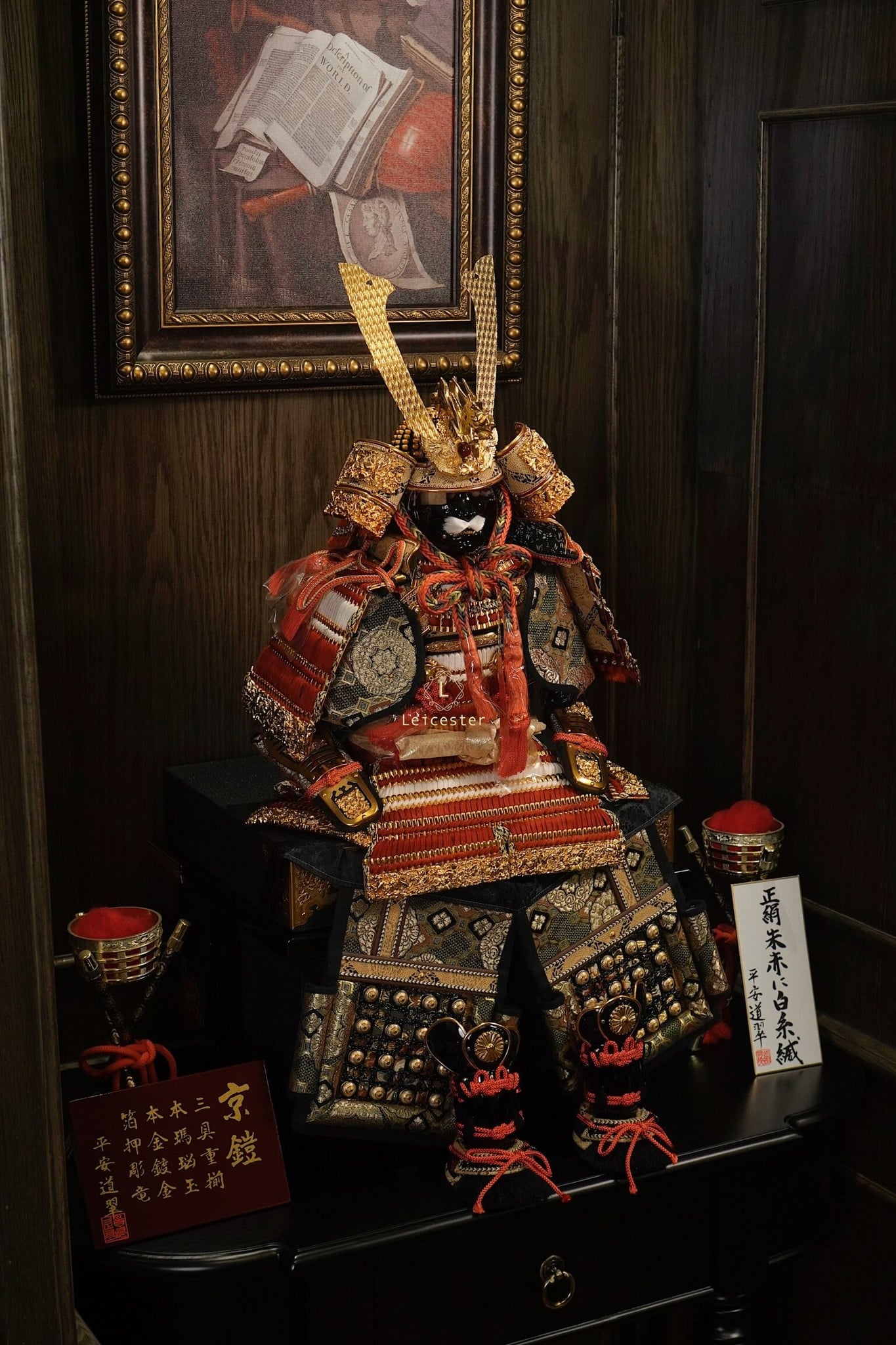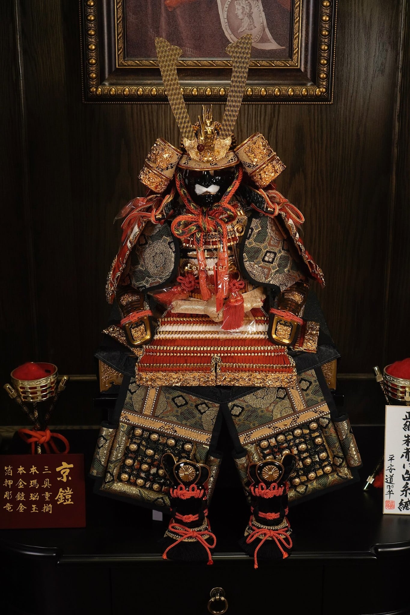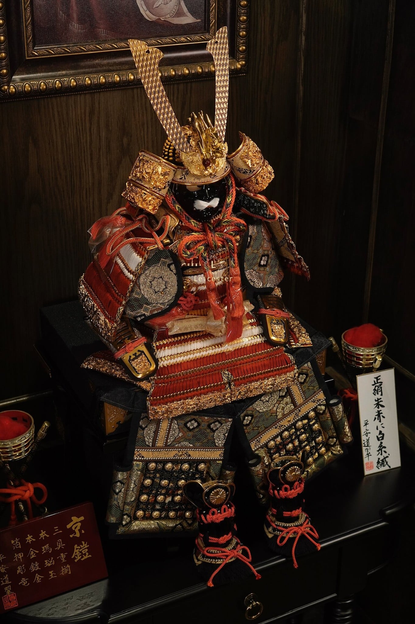 Tái tạo lại hình ảnh của võ sĩ huyền thoại Samurai, bộ nón giáp trưng bày thể hiện sự uy phong, dũng mạnh và kỷ luật của một Samurai. Bộ giáp màu vàng chủ đạo là màu tượng trưng cho các gia tộc có quyền lực và Hoàng gia.