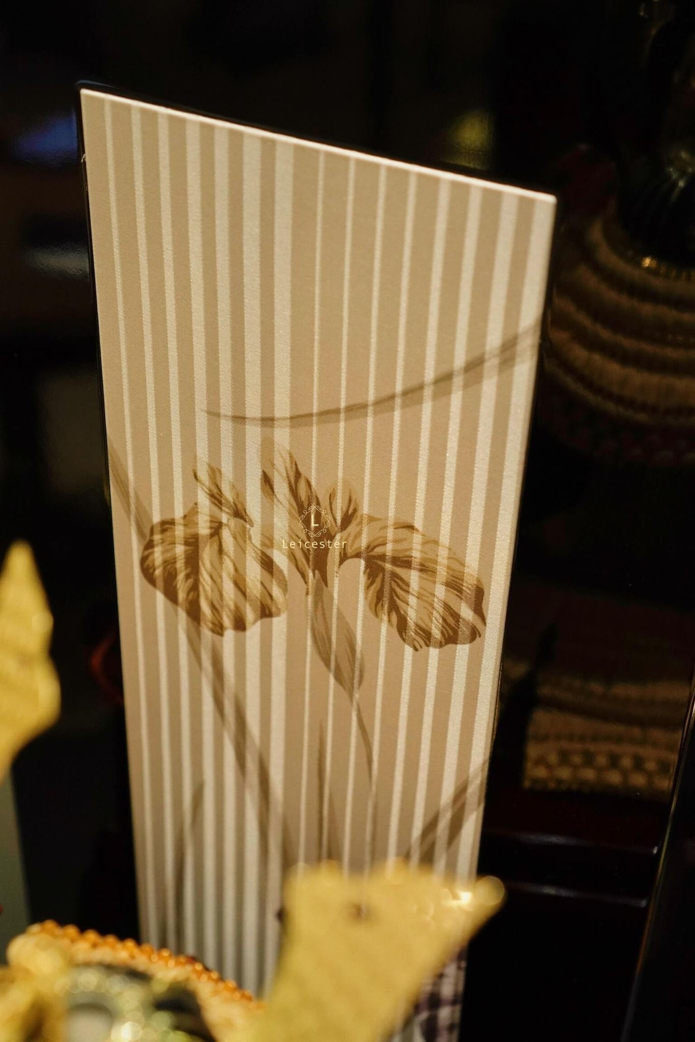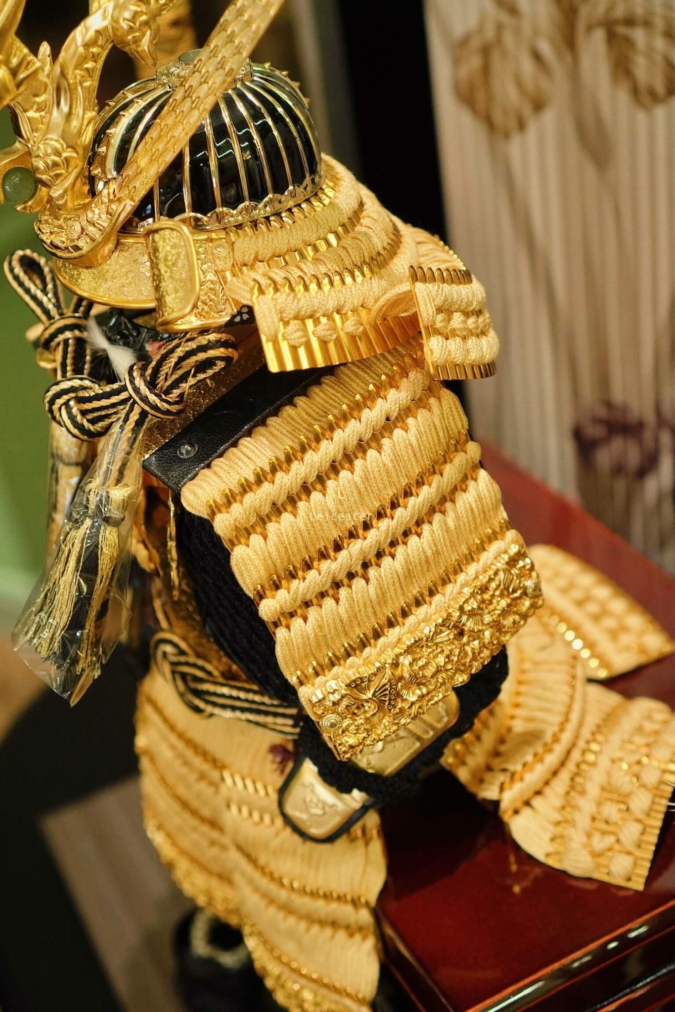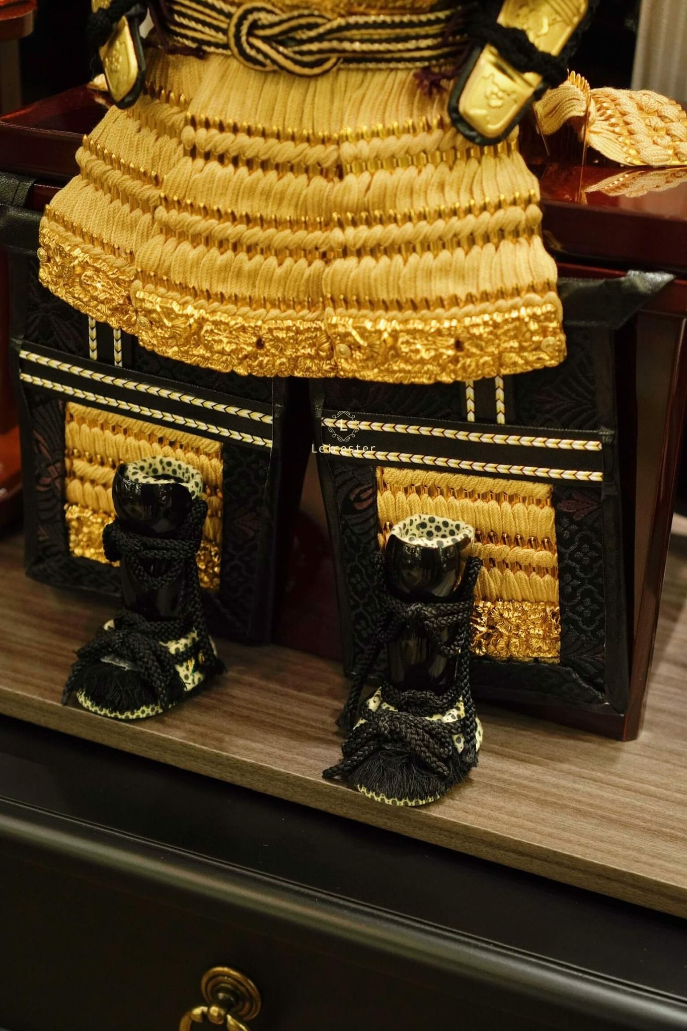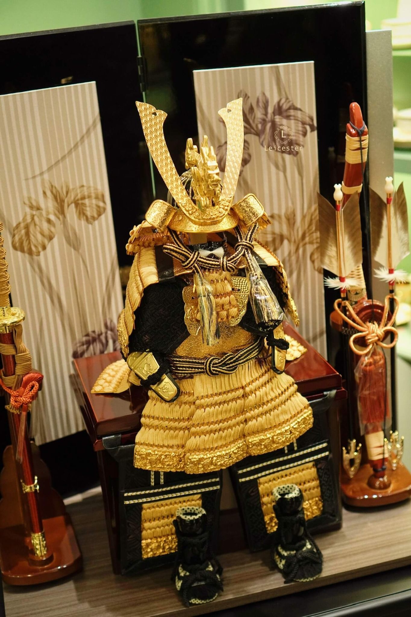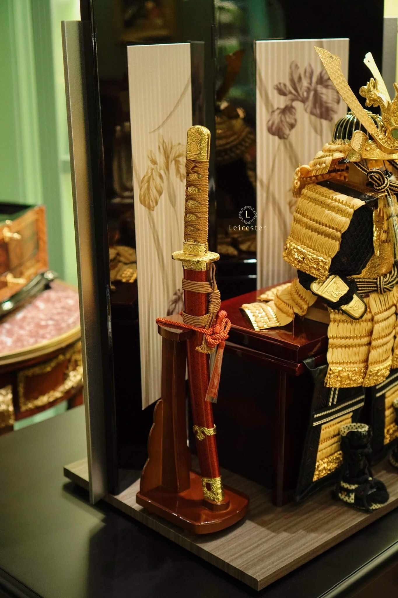 Chất liệu: lụa tơ tằm, kim loại mạ vàng, gỗ