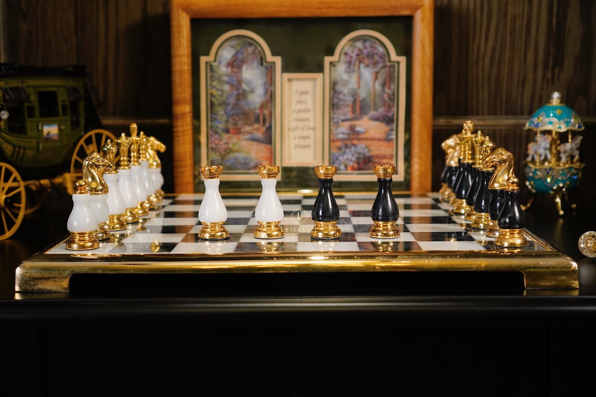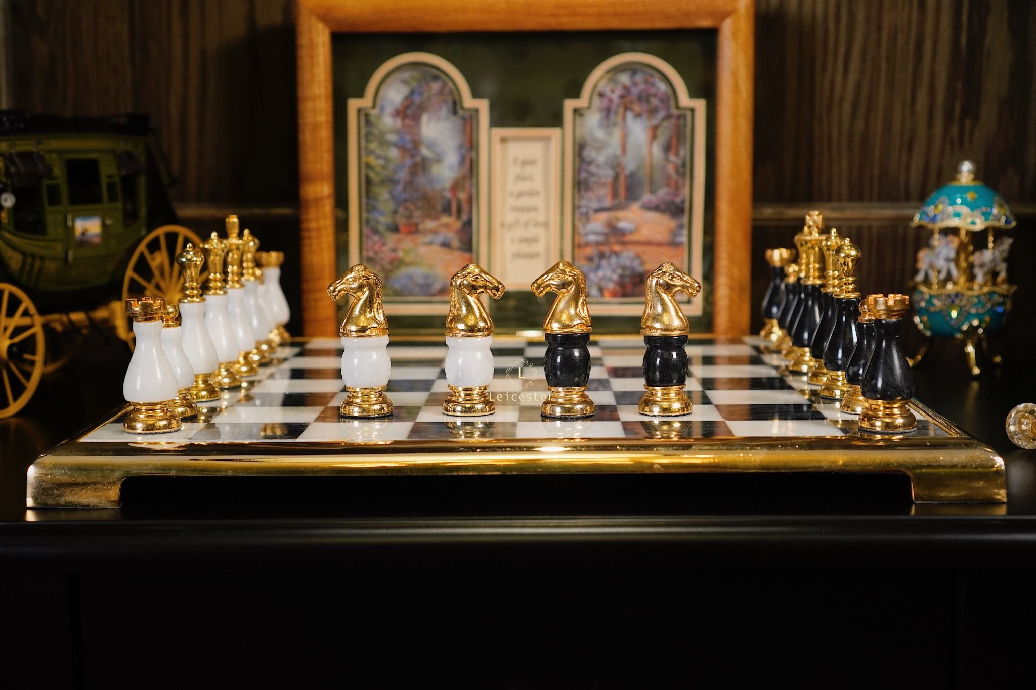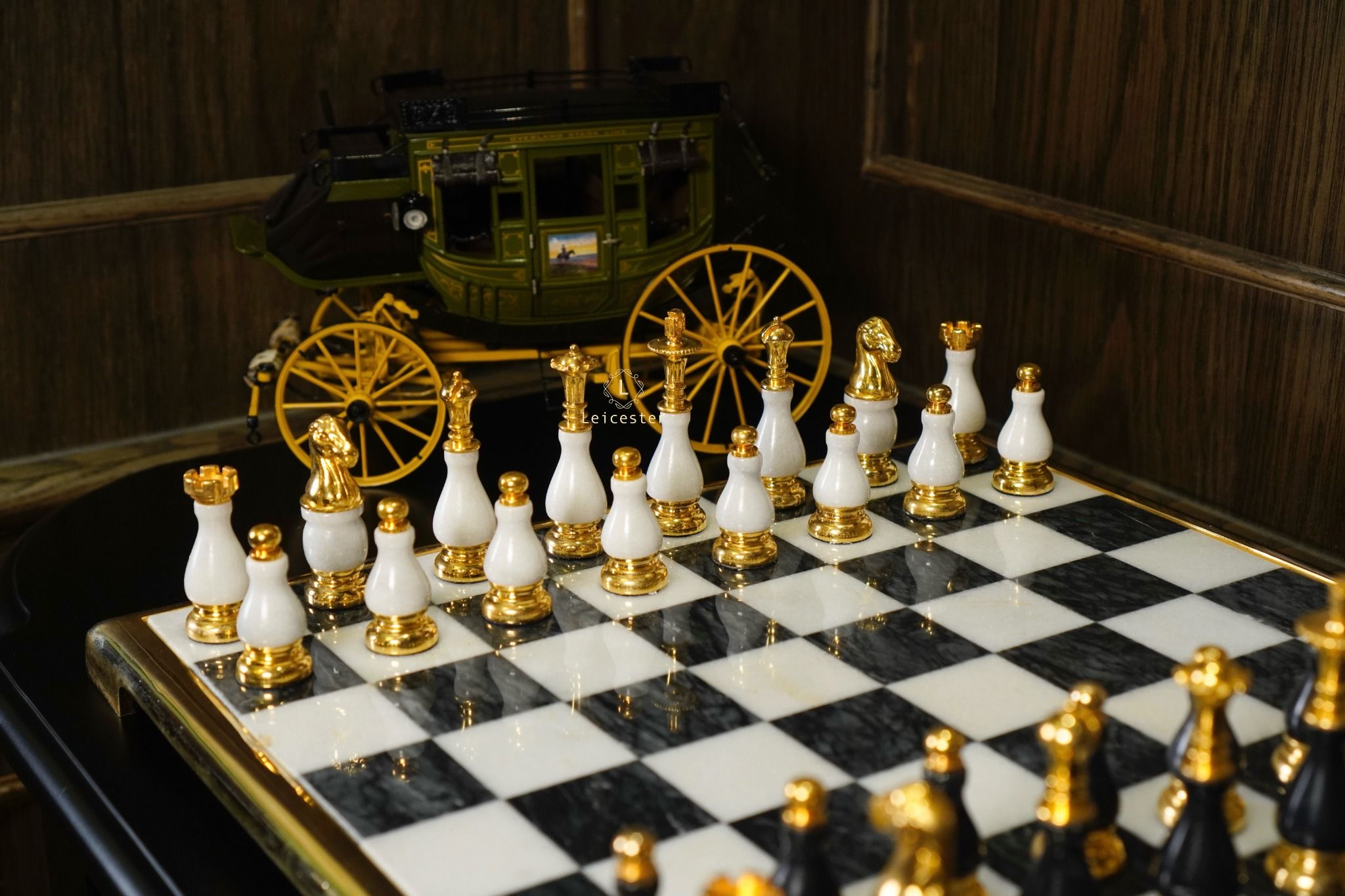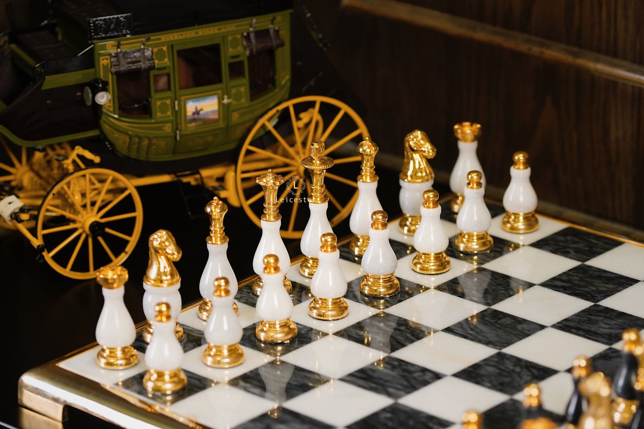 Quân cờ: đá cẩm thạch, Kim loại mạ vàng