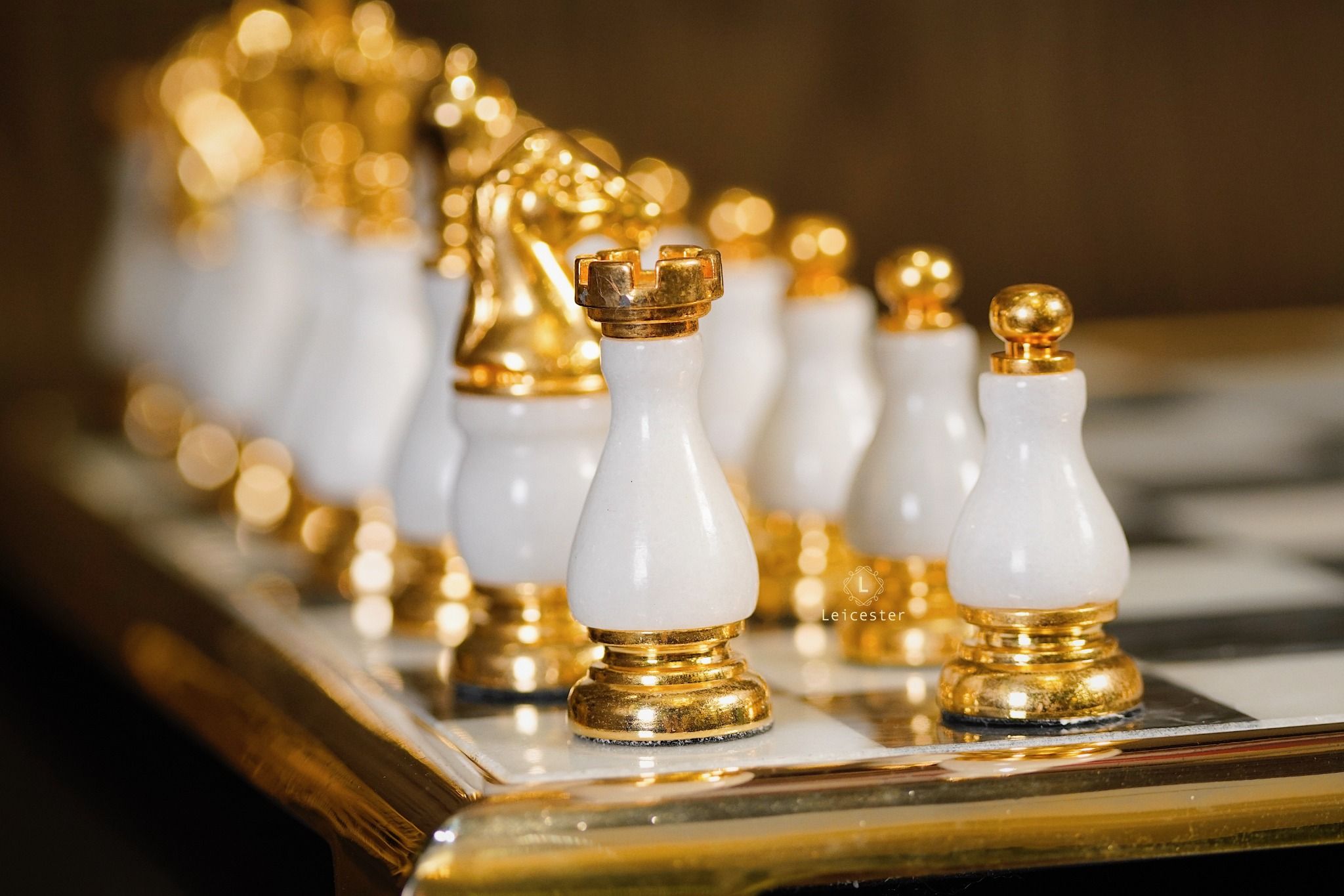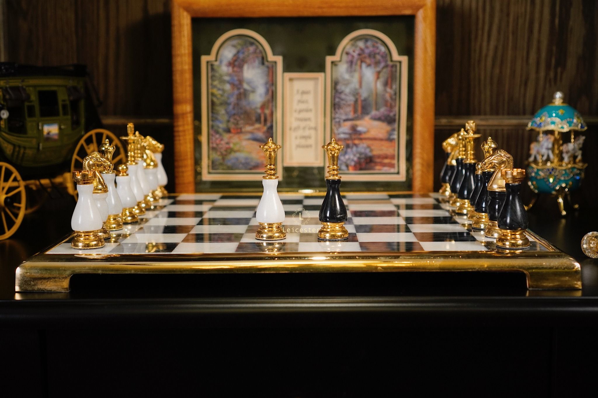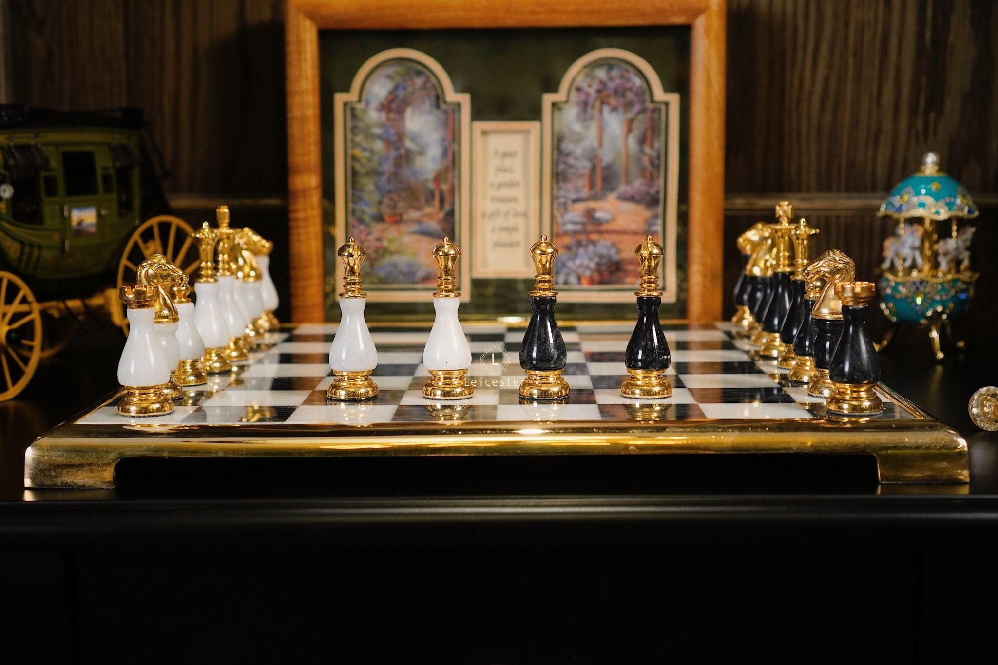 Quân cờ: đá cẩm thạch, Kim loại mạ vàng