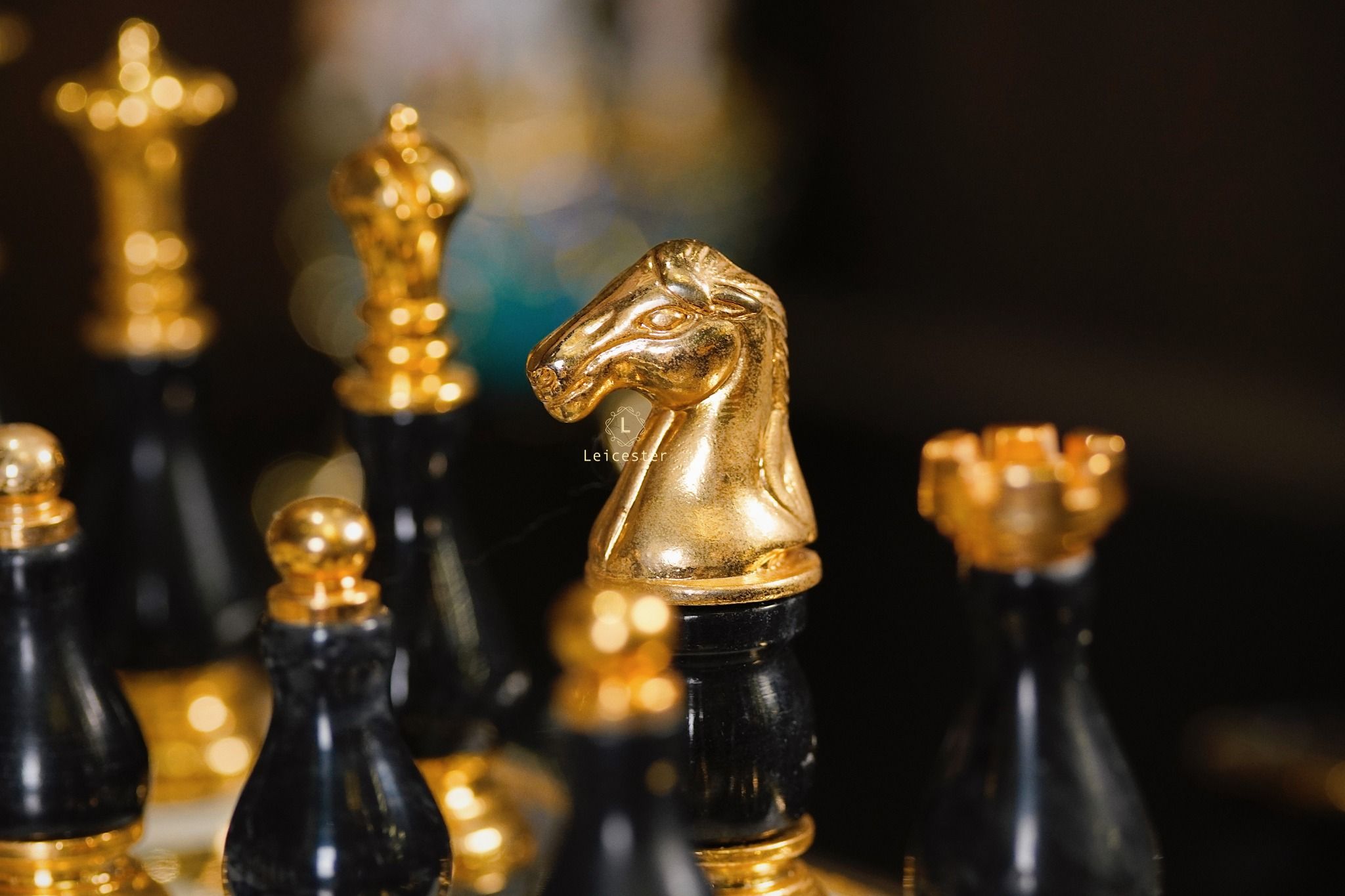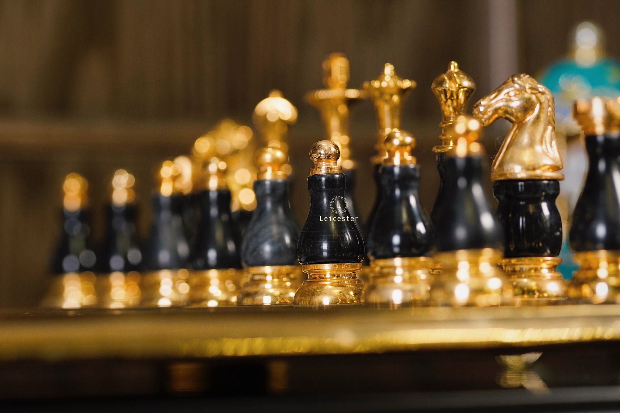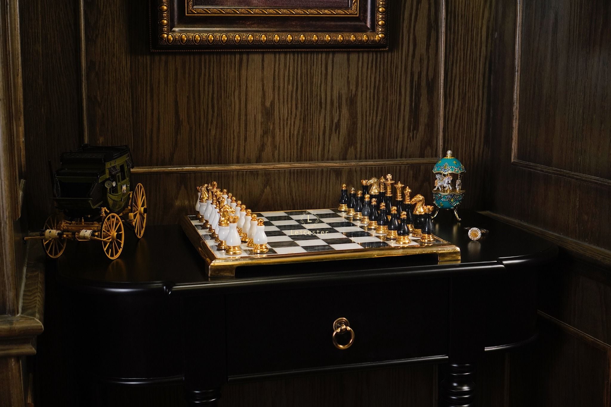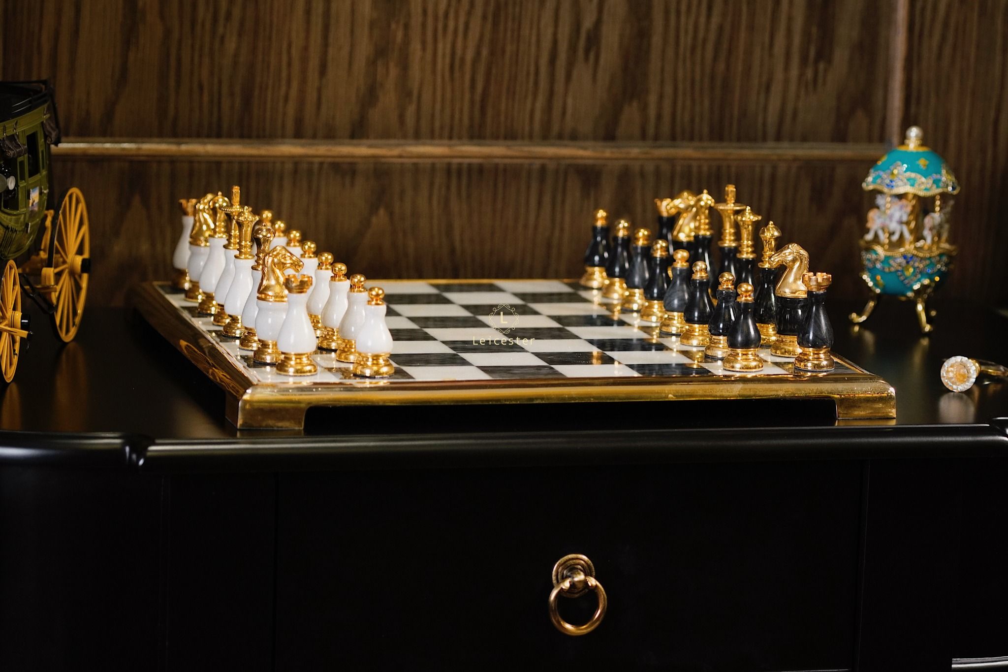 Quân cờ: đá cẩm thạch, Kim loại mạ vàng