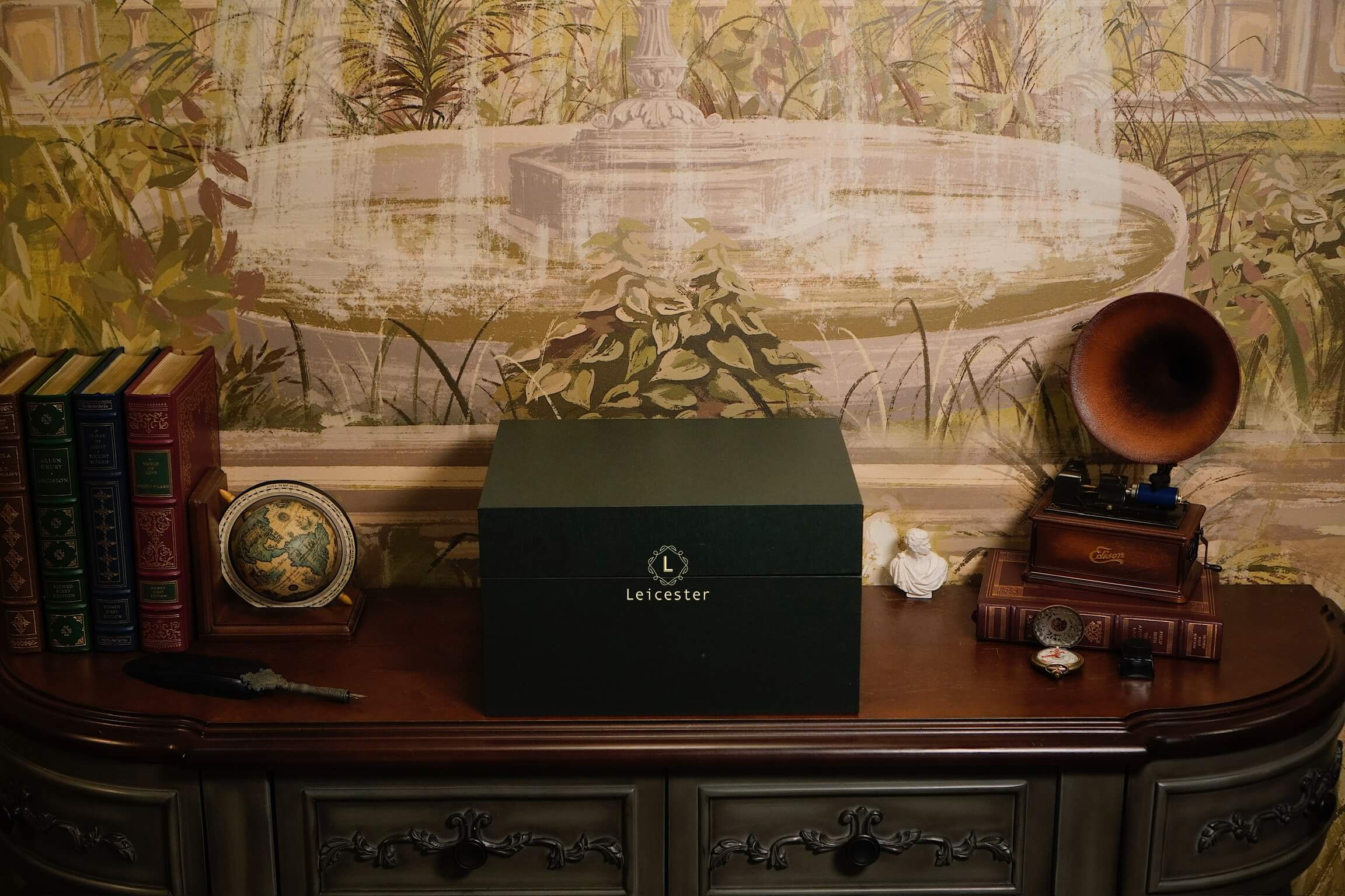 Chất liệu: gỗ bọc da và giấy