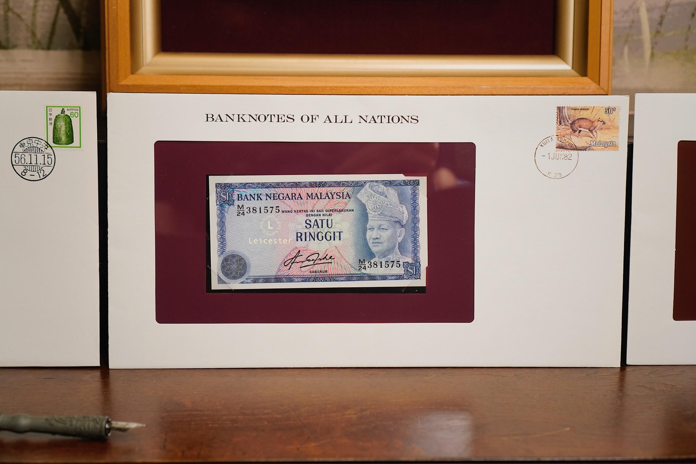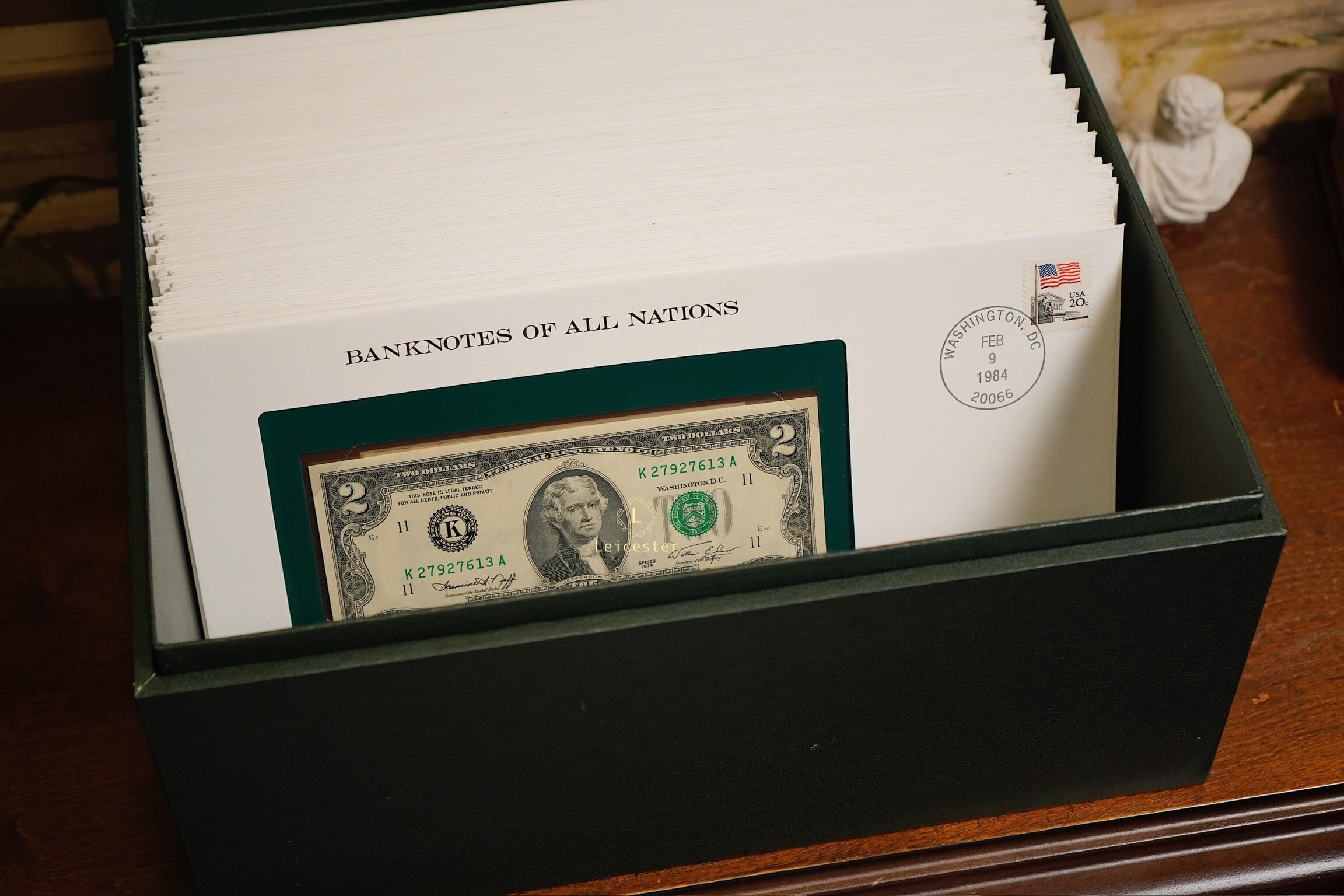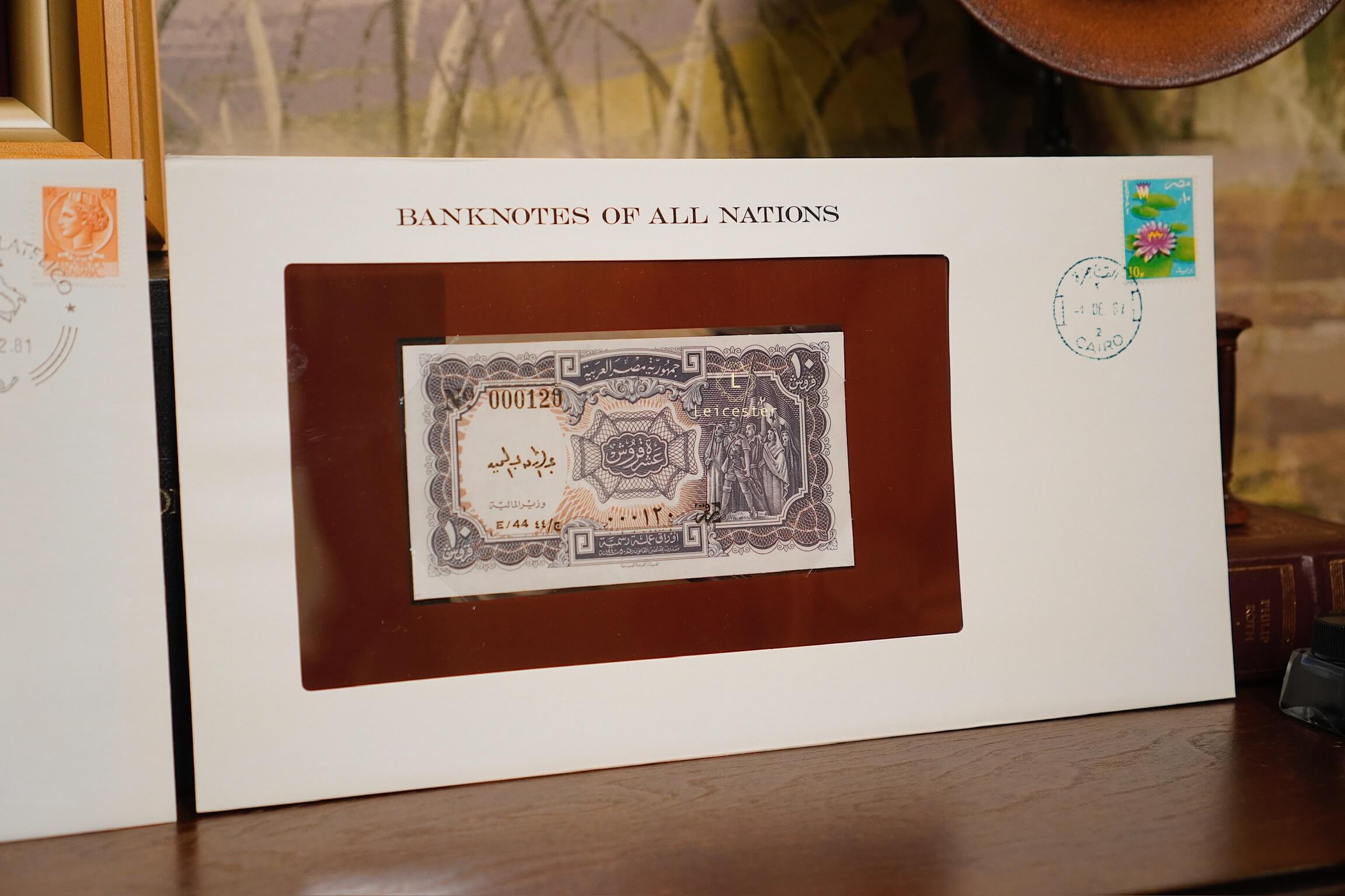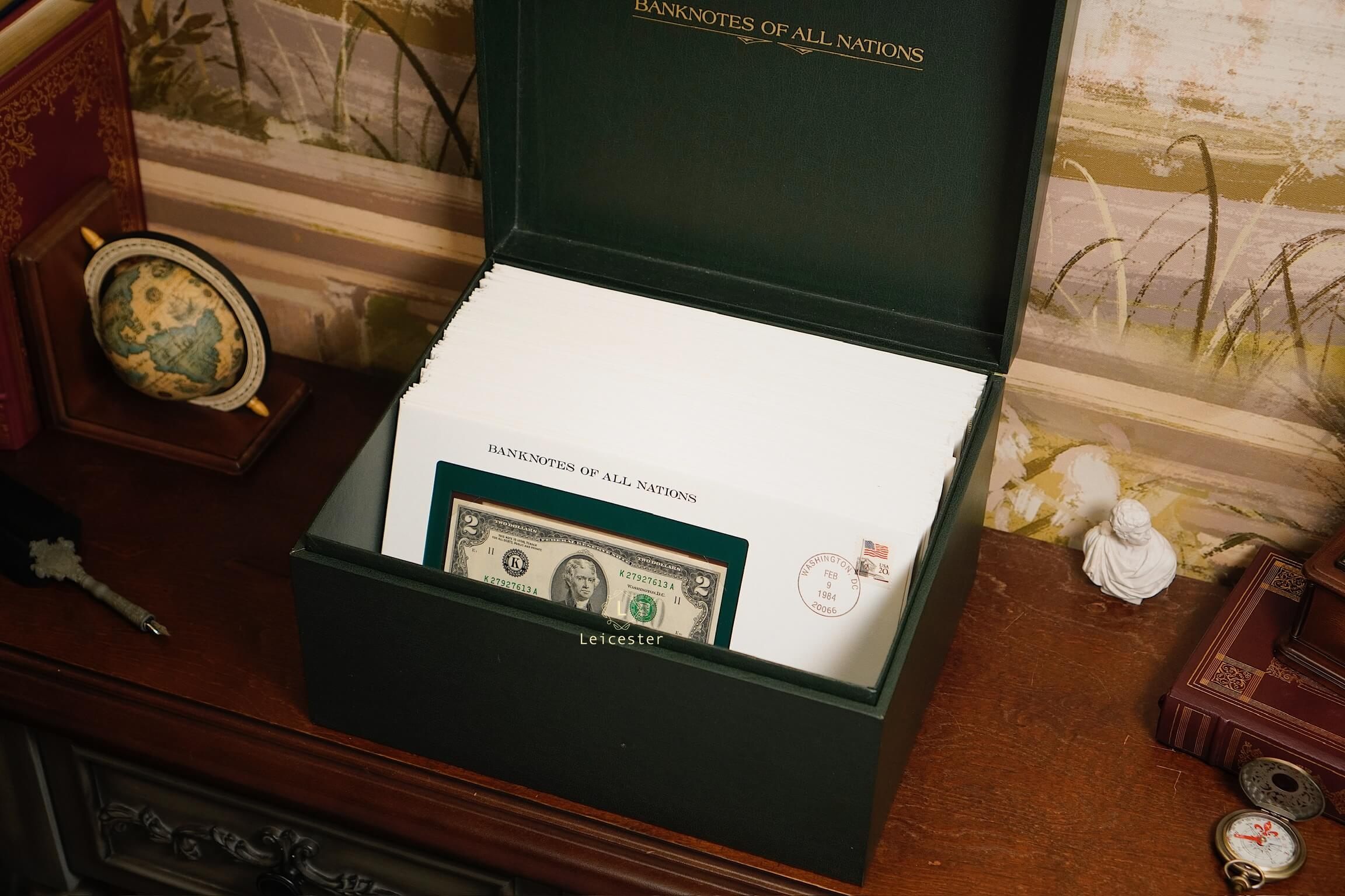 Banknotes of All Nations là bộ sưu tập gồm 114 tờ tiền giấy và tem đại diện cho 114 quốc gia, phát hành giới hạn bởi Franklin Mint vào những năm 1980-1990s. Mỗi hiện vật được trình bày trang trọng trong phong bì riêng cùng dấu bưu chính xác thực mang đến trải nghiệm du hành qua những dấu mốc văn hoá, lịch sử và chính trị toàn cầu.