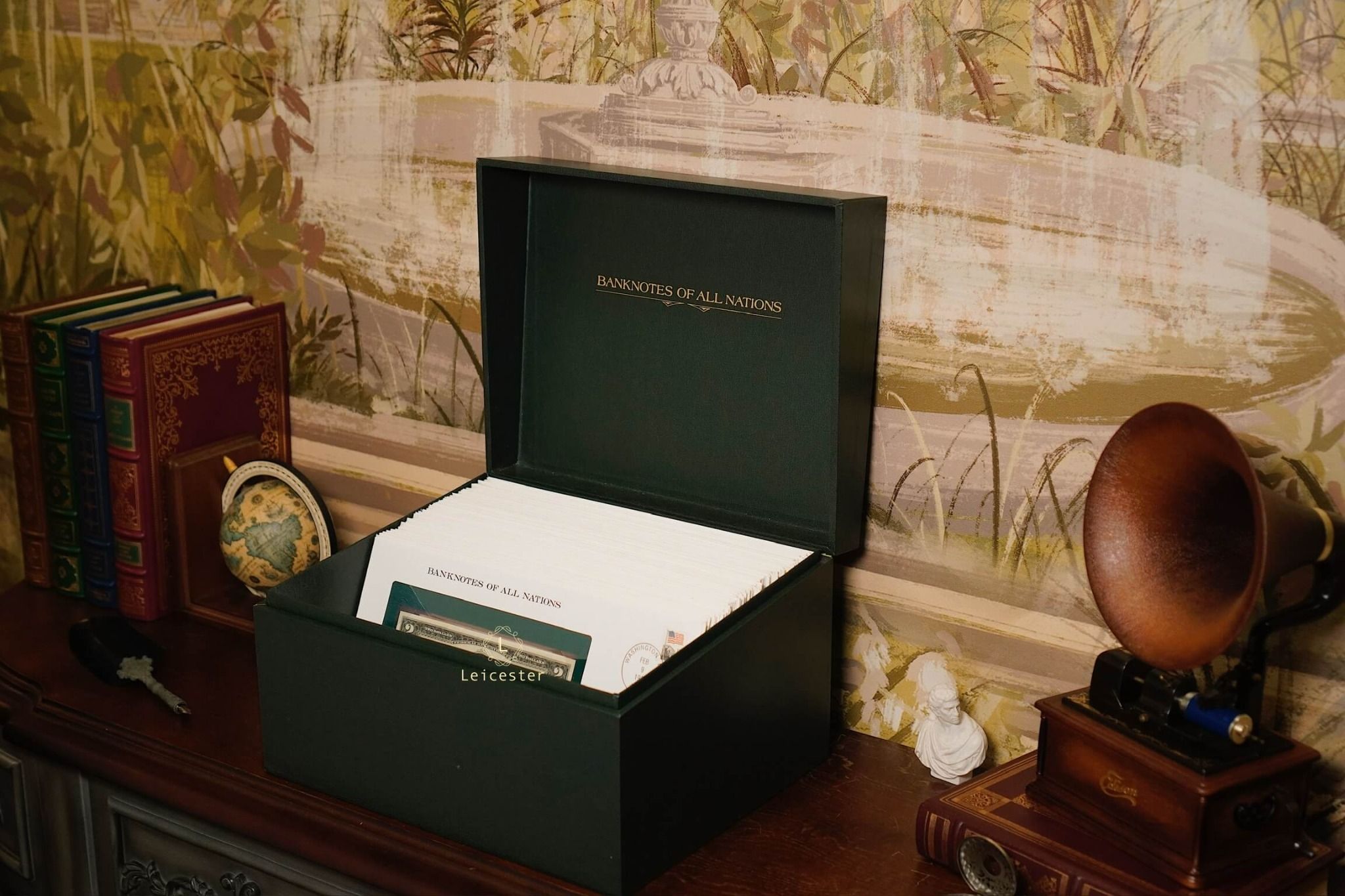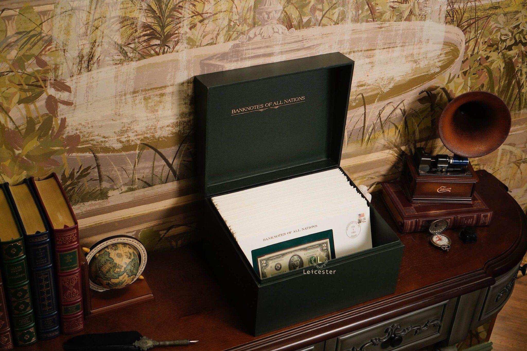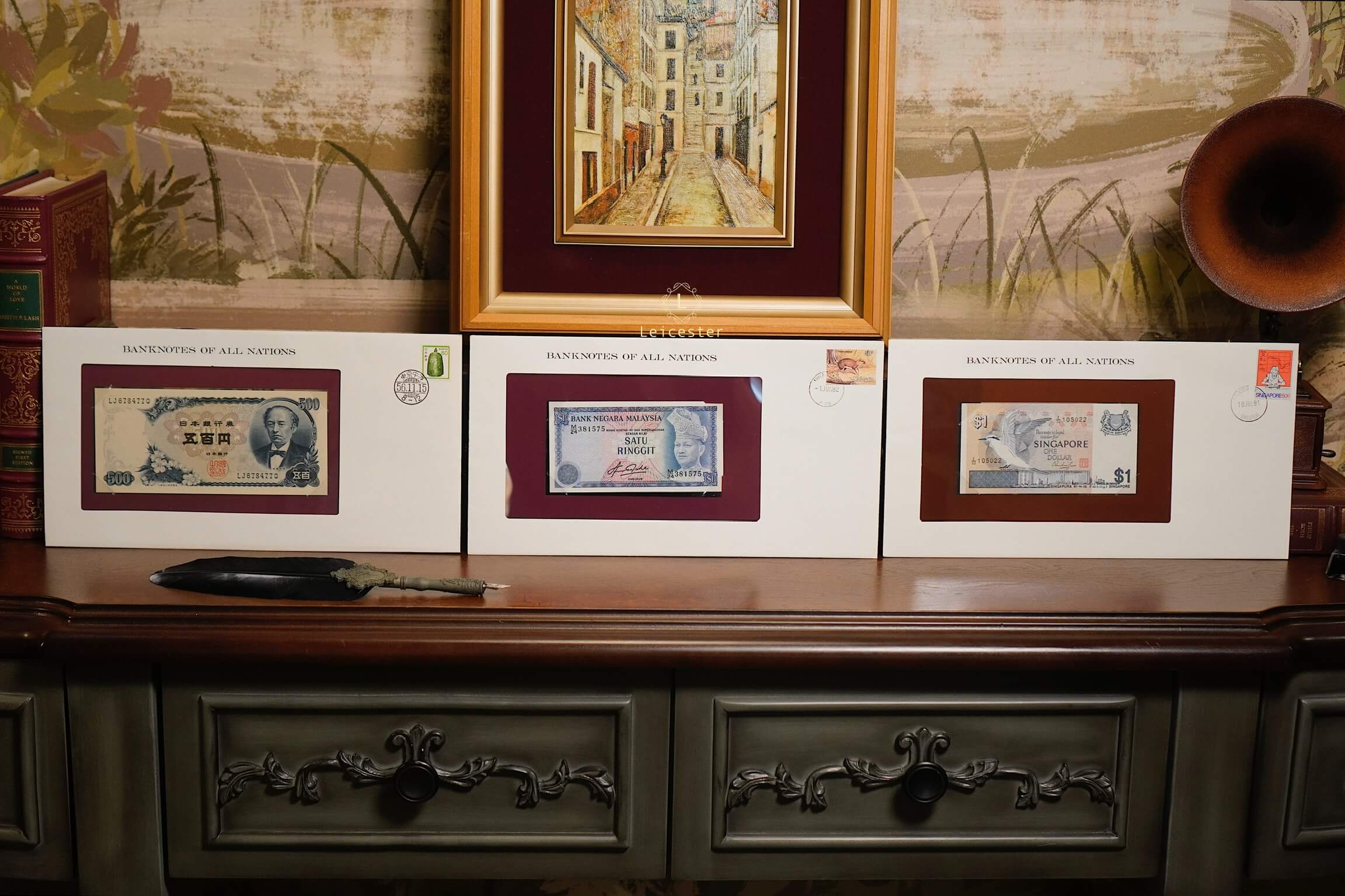 Banknotes of All Nations là bộ sưu tập gồm 114 tờ tiền giấy và tem đại diện cho 114 quốc gia, phát hành giới hạn bởi Franklin Mint vào những năm 1980-1990s. Mỗi hiện vật được trình bày trang trọng trong phong bì riêng cùng dấu bưu chính xác thực mang đến trải nghiệm du hành qua những dấu mốc văn hoá, lịch sử và chính trị toàn cầu.