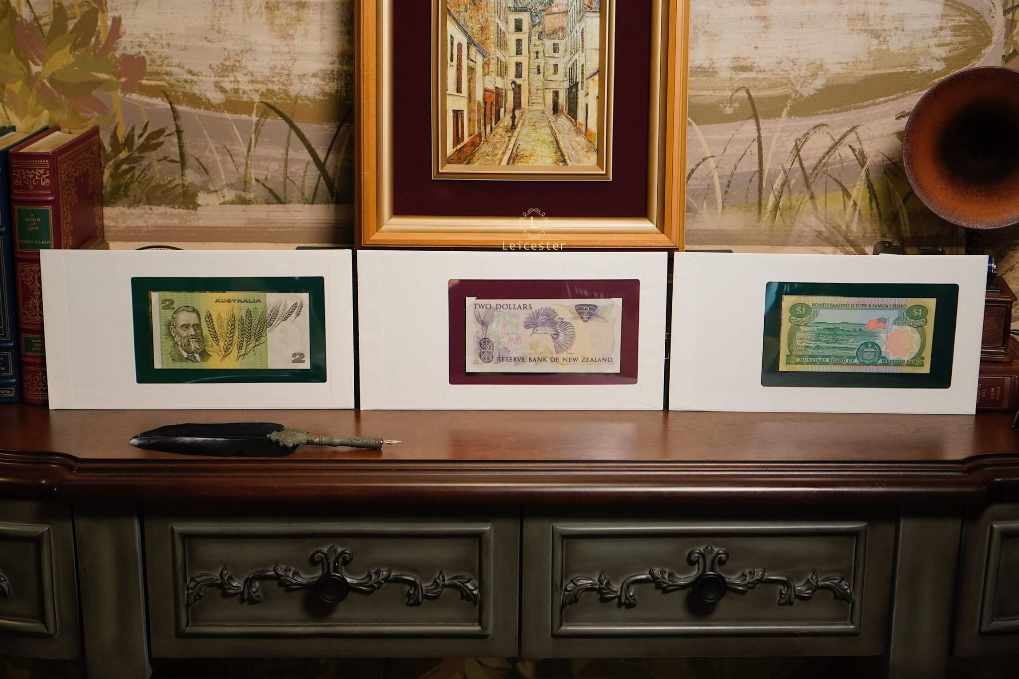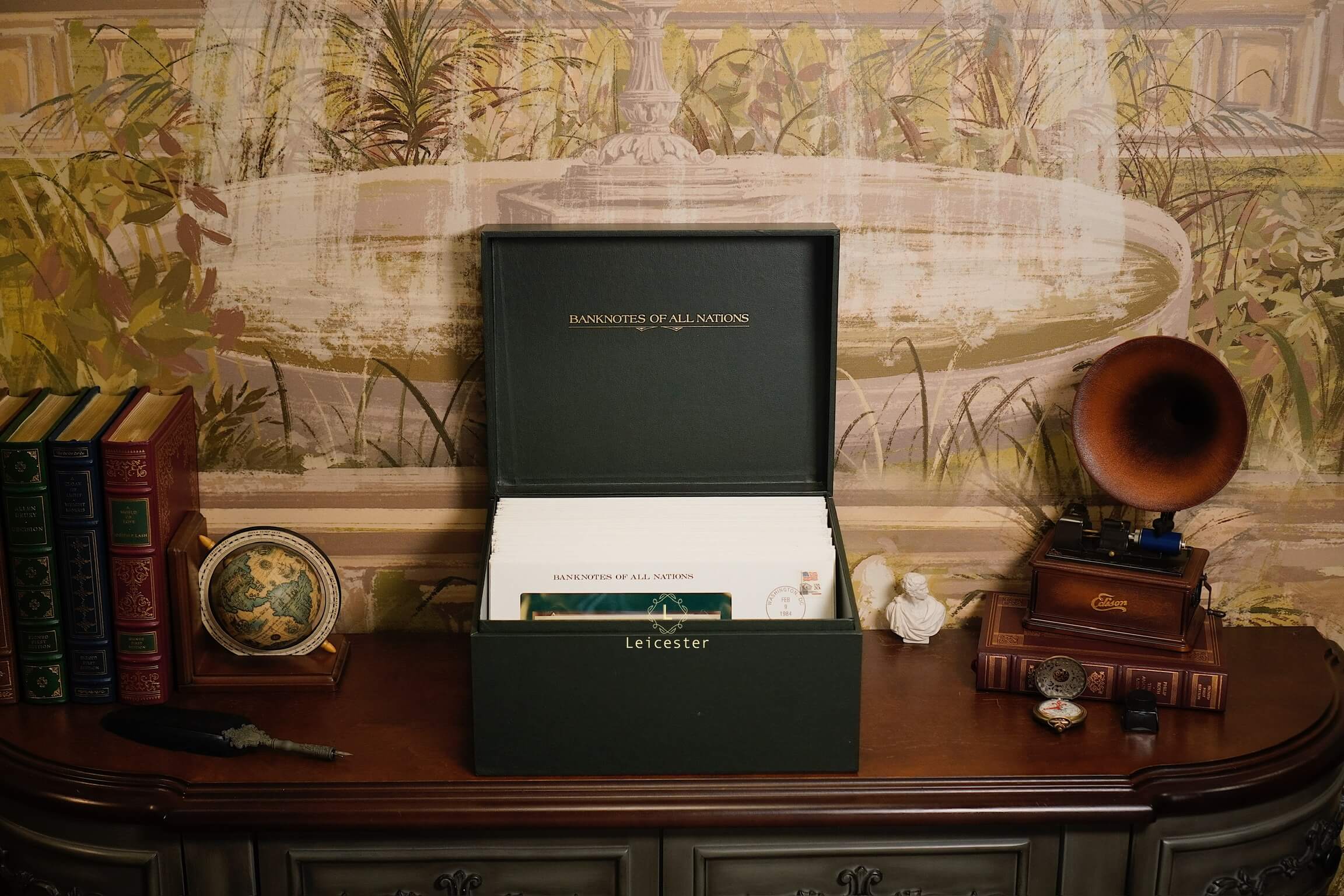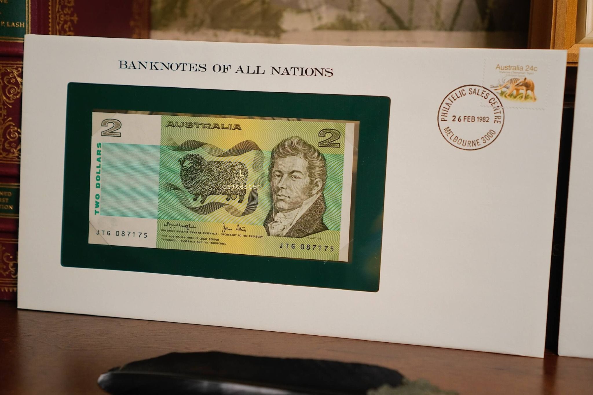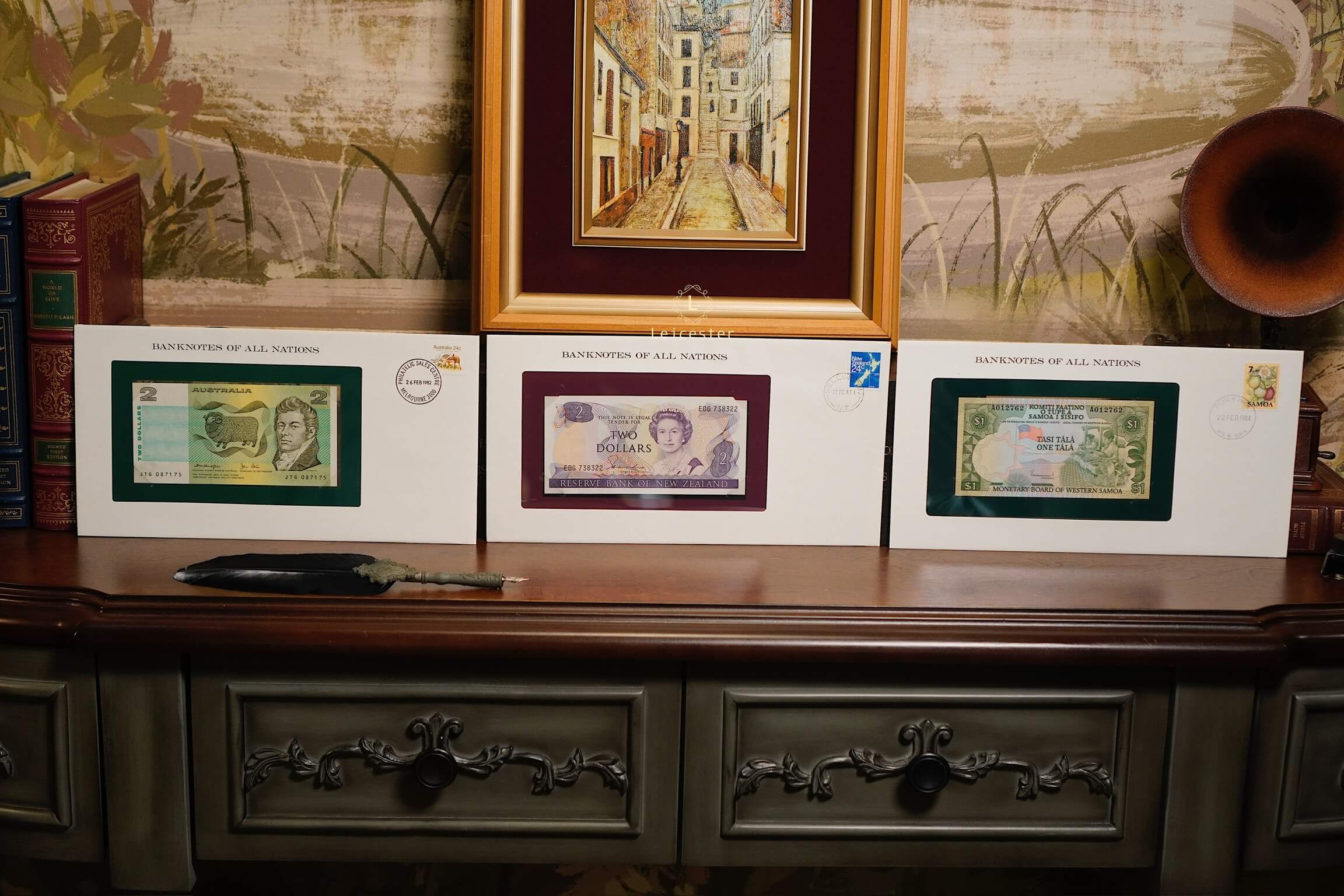 Banknotes of All Nations là bộ sưu tập gồm 114 tờ tiền giấy và tem đại diện cho 114 quốc gia, phát hành giới hạn bởi Franklin Mint vào những năm 1980-1990s. Mỗi hiện vật được trình bày trang trọng trong phong bì riêng cùng dấu bưu chính xác thực mang đến trải nghiệm du hành qua những dấu mốc văn hoá, lịch sử và chính trị toàn cầu.