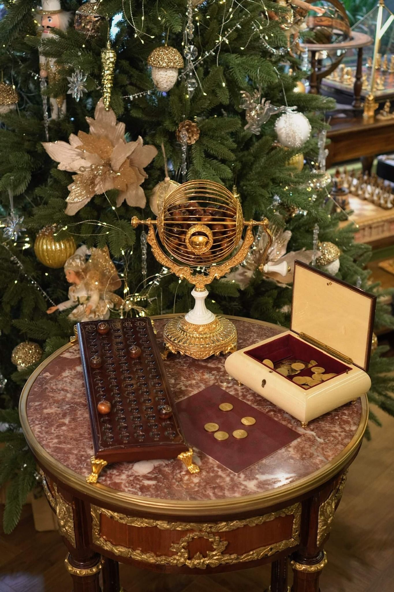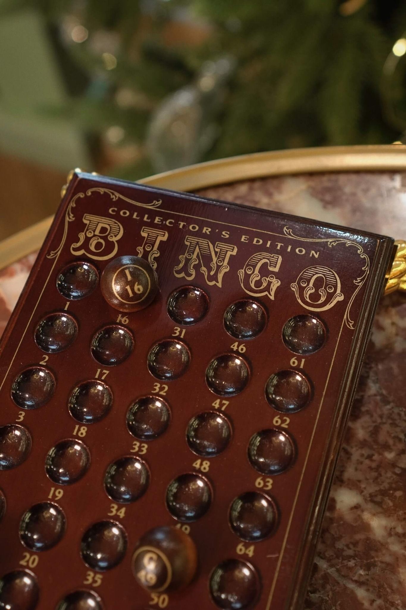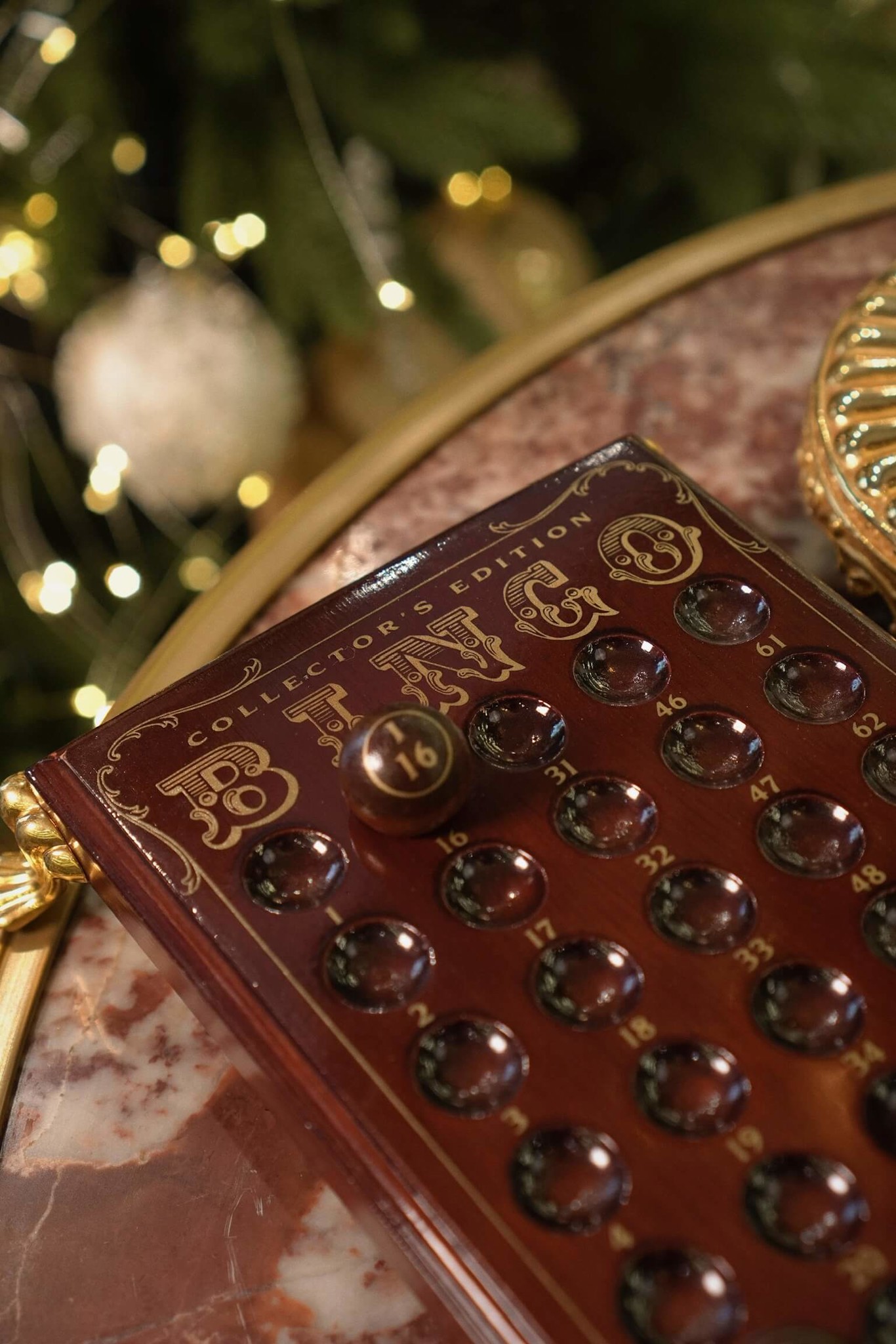 Công ty Milton Bradley Điều này là để chứng nhận rằng BINGO Phiên bản Collector's Edition gồm một chiếc lồng quay bằng đồng được tạo điểm nhấn sang trọng với đế và tay quay bằng sứ cao cấp và mạ vàng 24 karat, 75 quả bóng BINGO và một bảng làm bằng gỗ được đánh bóng kỹ lưỡng.