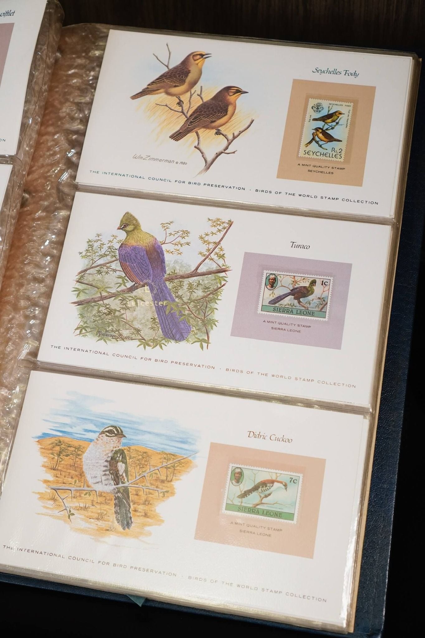 Birds of The World Stamp Collection là bộ sưu tập tem do Hội Đồng Bảo tồn Chim Quốc Tế phát hành với số lượng giới hạn. Mỗi con tem minh hoạ một loài chim hoang dã và được phát hành chính thức bởi các quốc gia trên khắp thế giới. Từng con tem được bảo quản nguyên vẹn trên tấm thiệp kỷ niệm, ghi rõ tên loài chim, quốc gia phát hành và kèm theo các tác phẩm nghệ thuật được sáng tác riêng cho bộ sưu tập này.