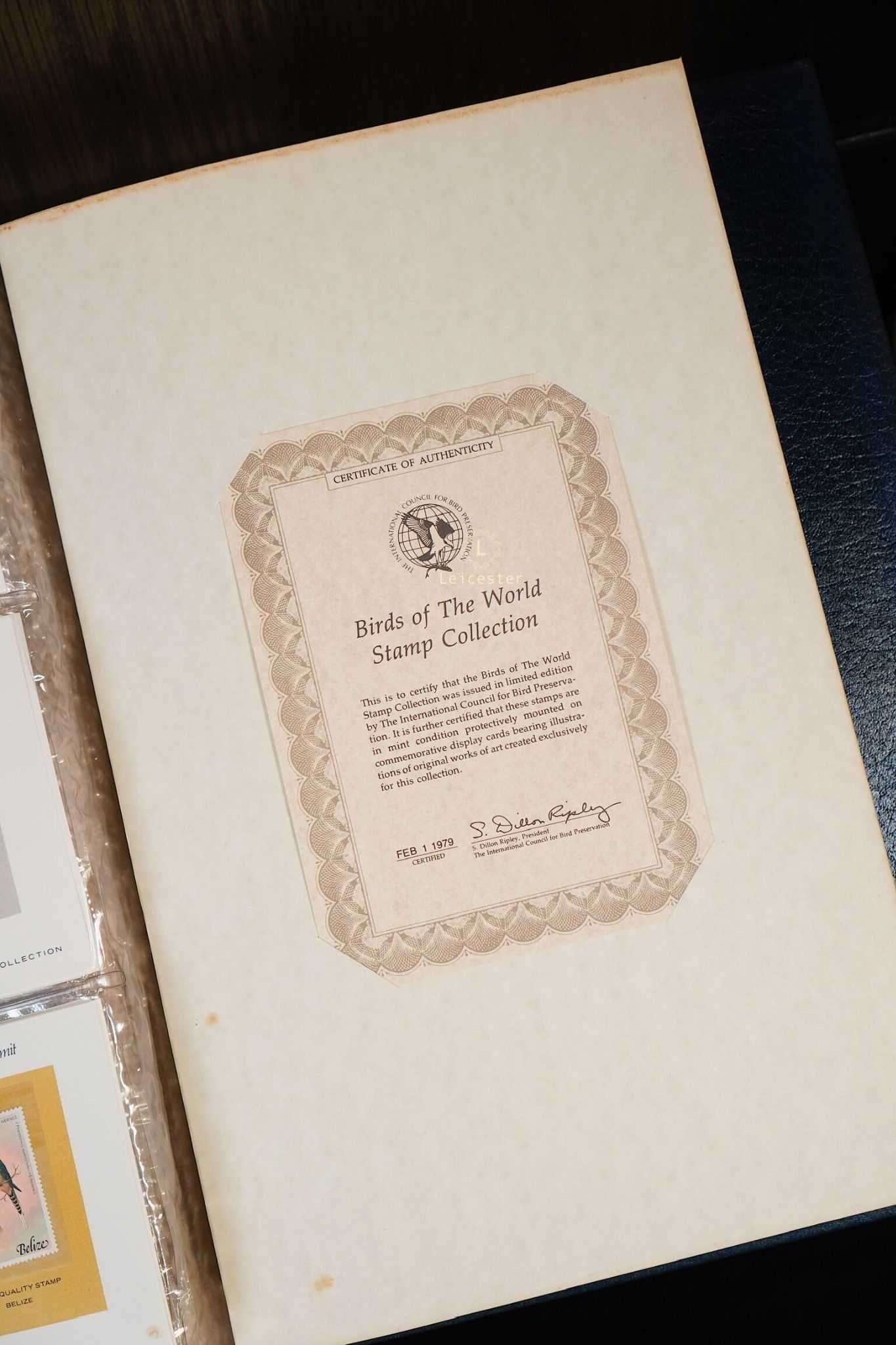 Vượt lên trên giá trị của một bộ tem thông thường, Birds of The World Stamp Collection là biểu tượng của sự giao thoa giữa nghệ thuật sưu tầm và ý thức bảo tồn thiên nhiên, là lời nhắc nhở tinh tế về vẻ đẹp mong manh của thiên nhiên. Bộ sưu tập được giữ nguyên bản, sắc nét và đầy cảm xúc như những dấu ấn vượt thời gian. Xứng đáng trở thành viên ngọc quý trong bất kỳ bộ sưu tập tem cao cấp nào.
