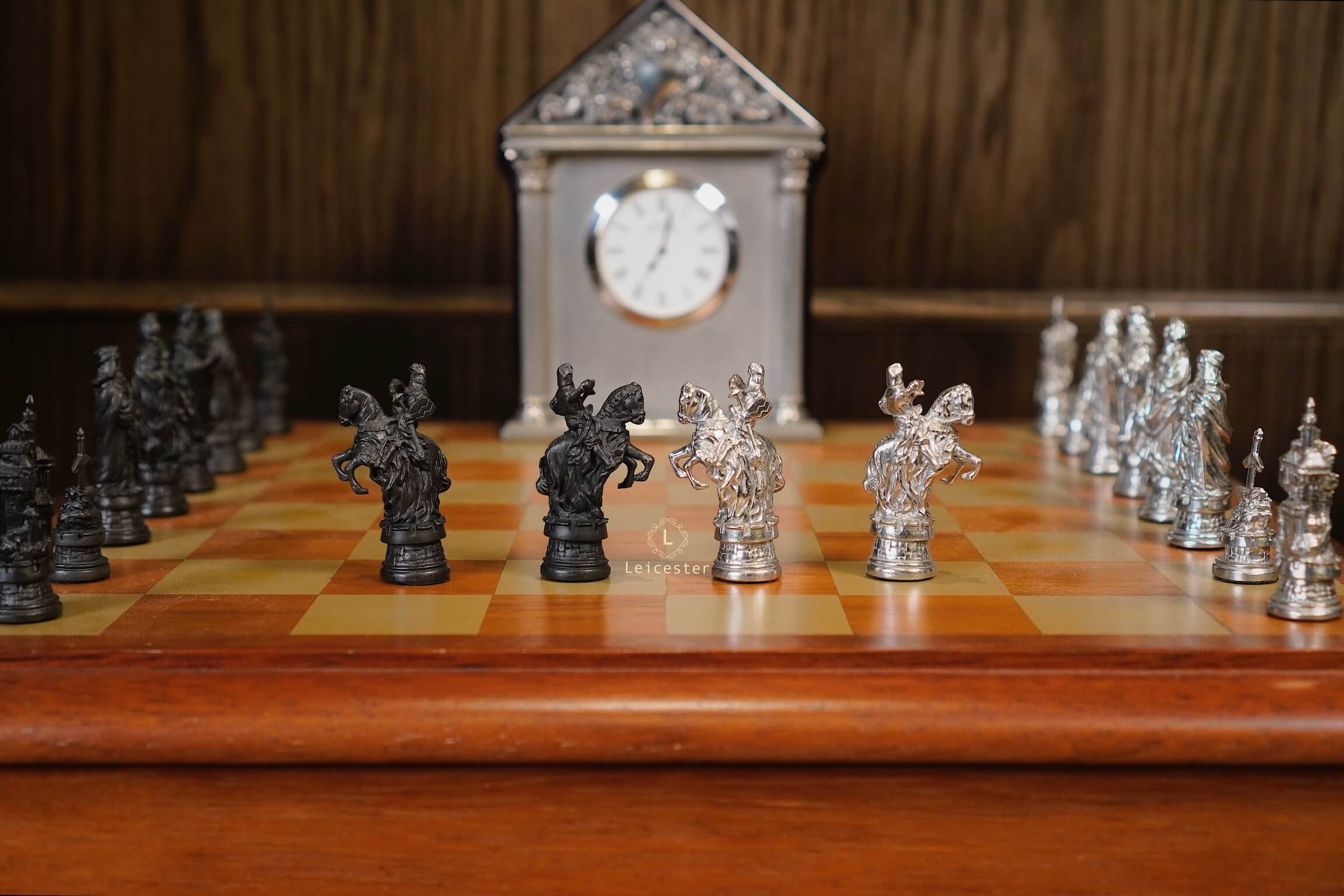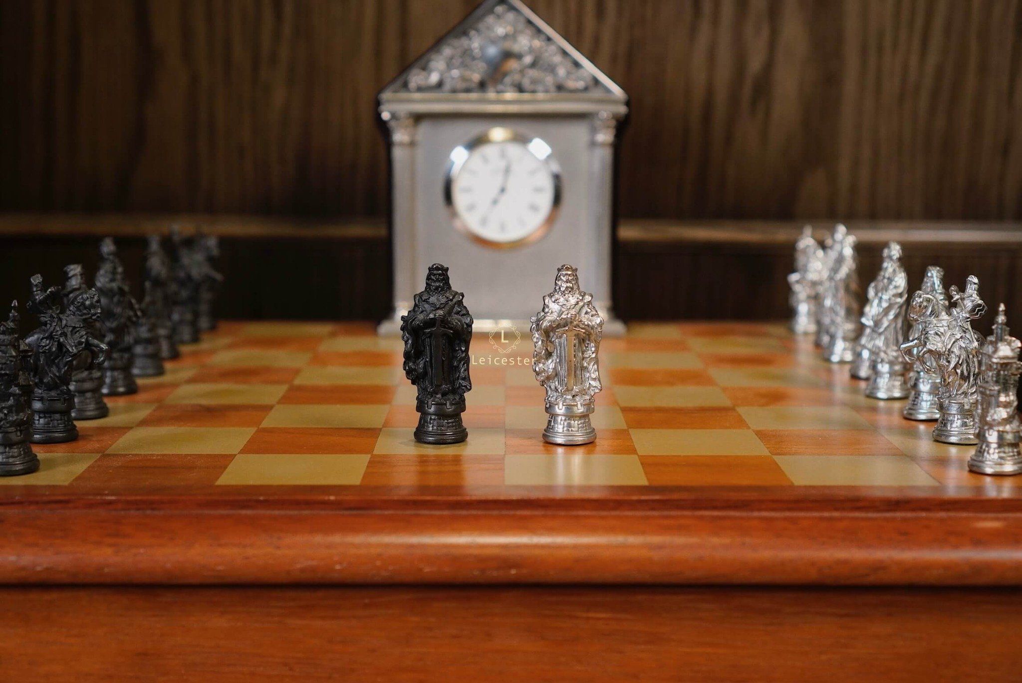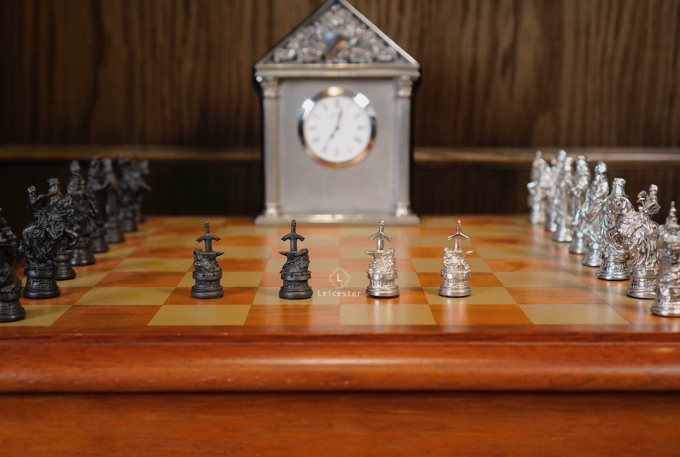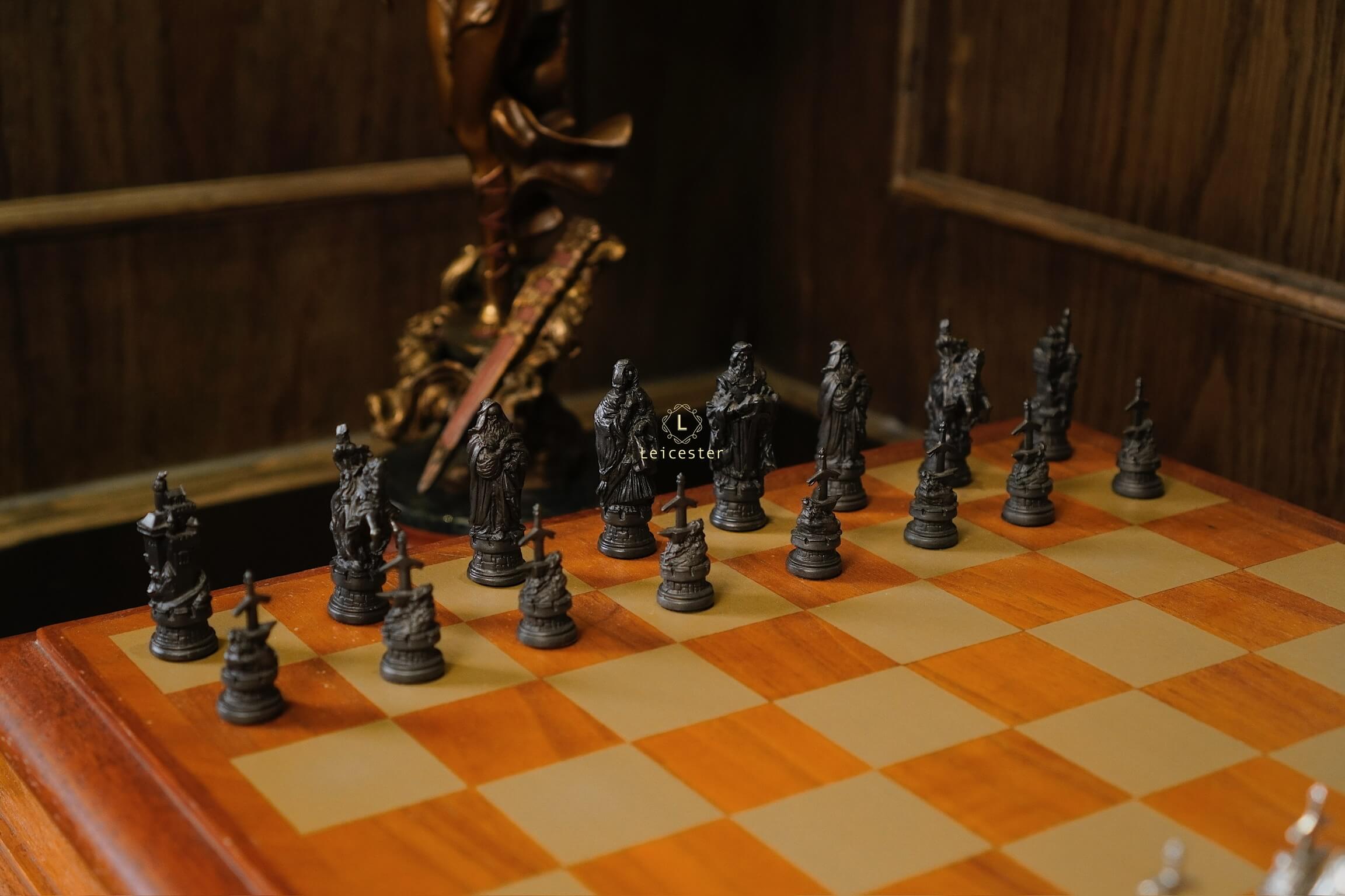 Bộ cờ vua Camelot lấy ý tưởng từ truyền thuyết vua Arthur trở thành đức vua vùng đất Camelot. Bàn cờ được thiết kế có một không hai với sự kết hợp của gỗ và pewter. Những quân cờ được làm tỉ mỉ từng chi tiết, một bên quân cờ được đánh bóng sáng, một bên để màu tối.