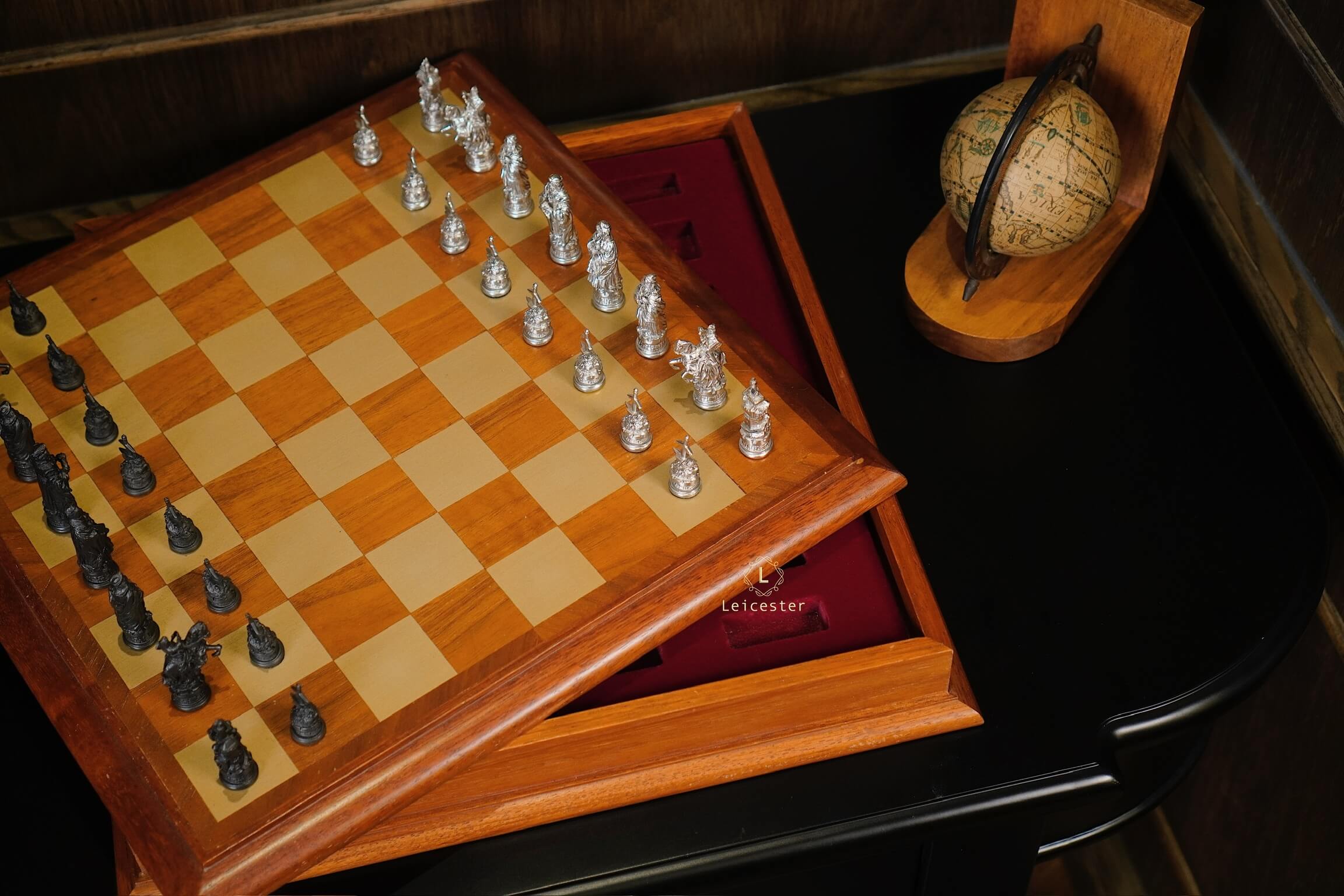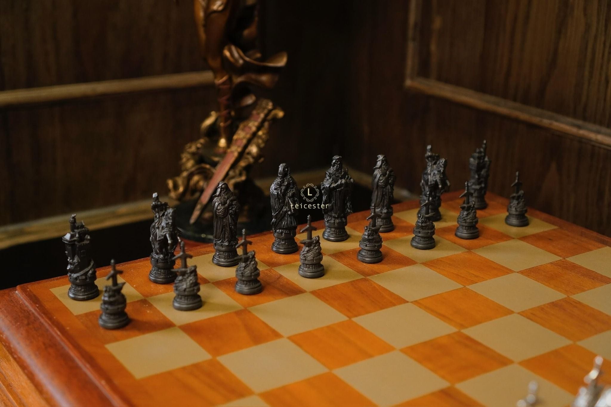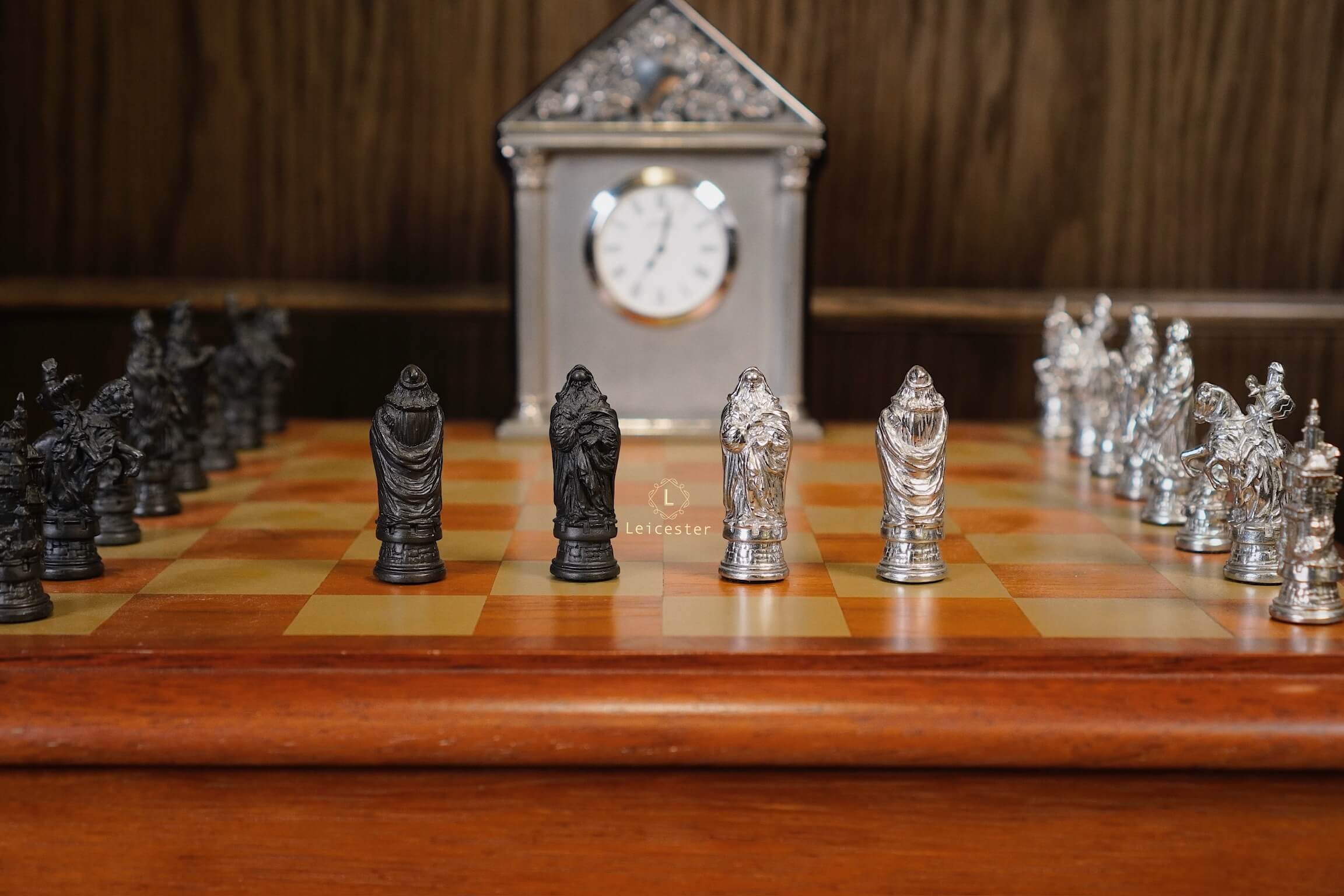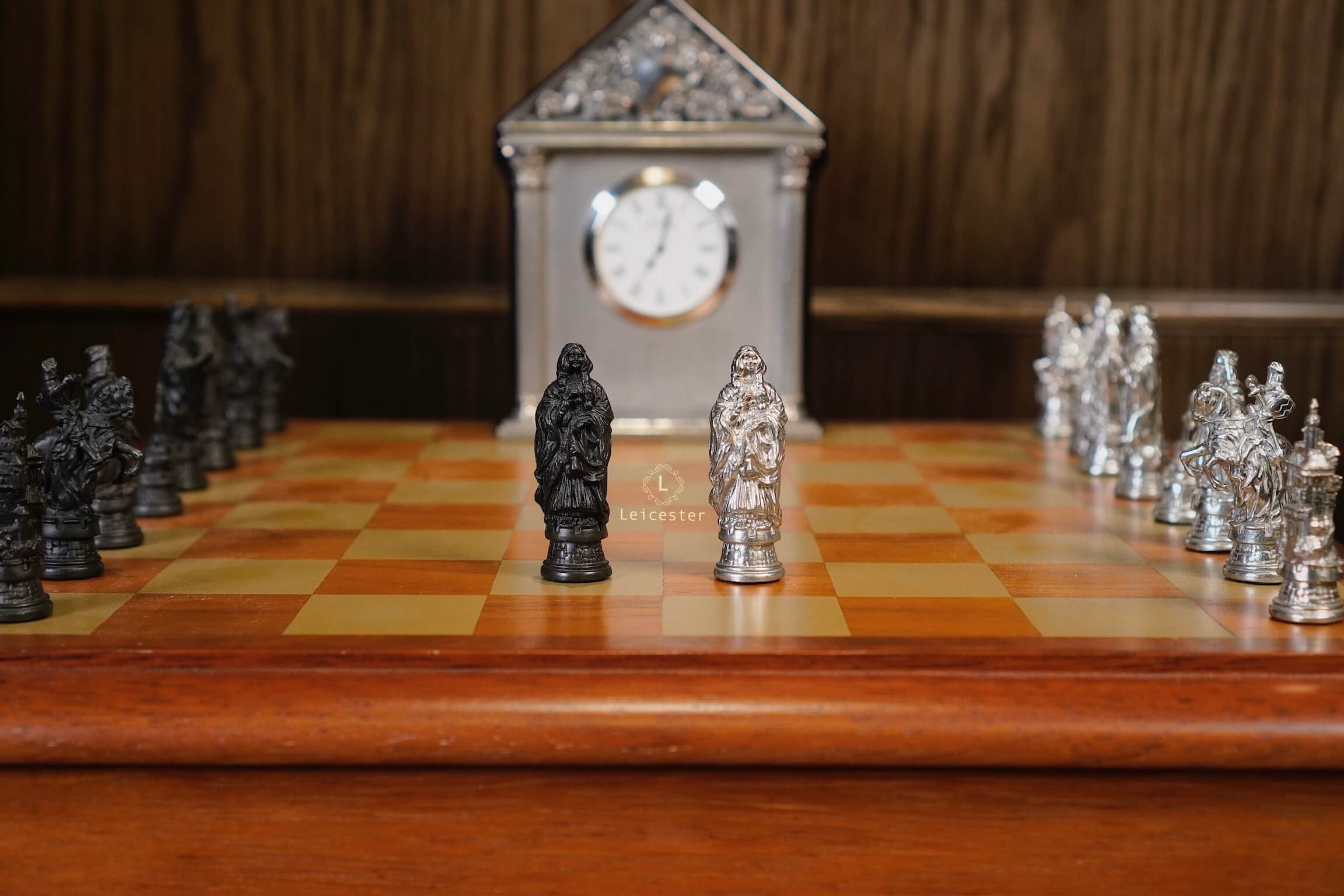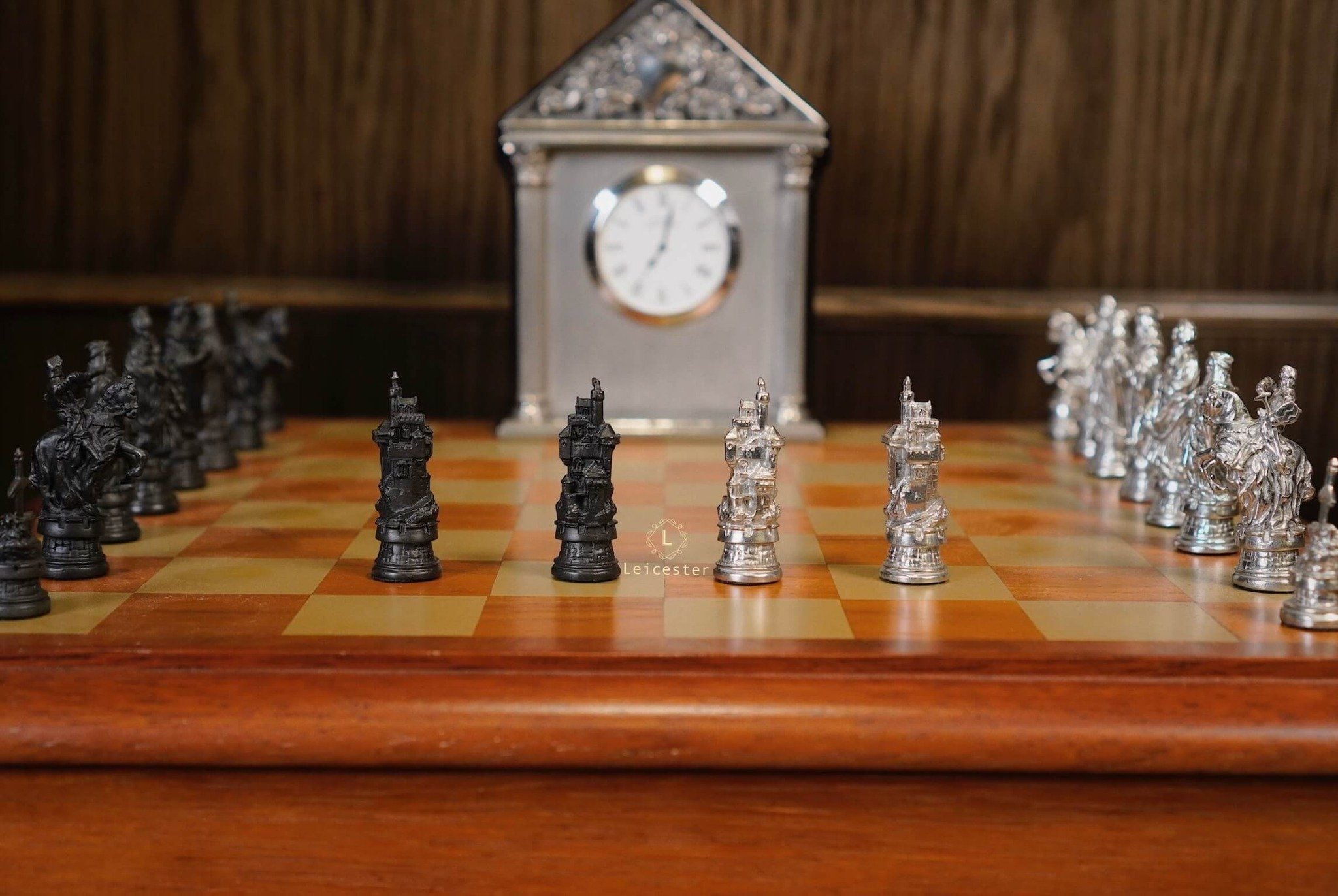 Bộ cờ vua Camelot lấy ý tưởng từ truyền thuyết vua Arthur trở thành đức vua vùng đất Camelot. Bàn cờ được thiết kế có một không hai với sự kết hợp của gỗ và pewter. Những quân cờ được làm tỉ mỉ từng chi tiết, một bên quân cờ được đánh bóng sáng, một bên để màu tối.