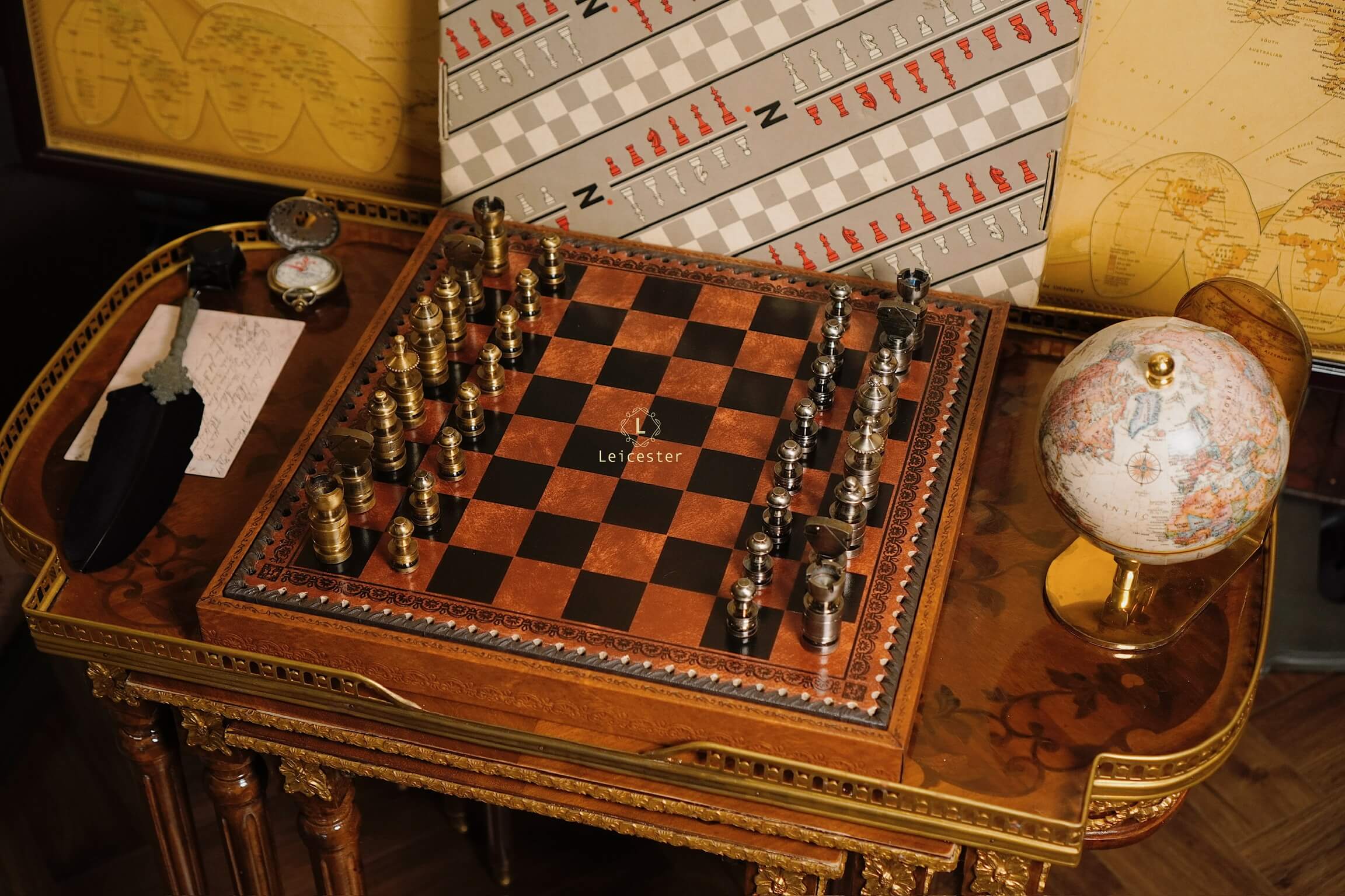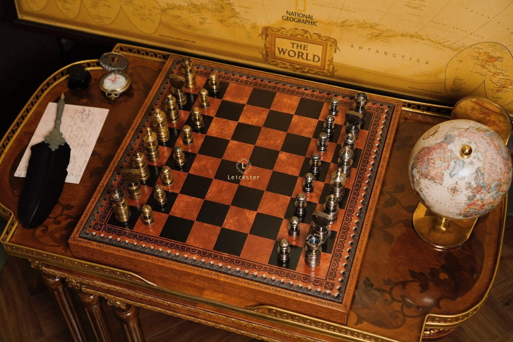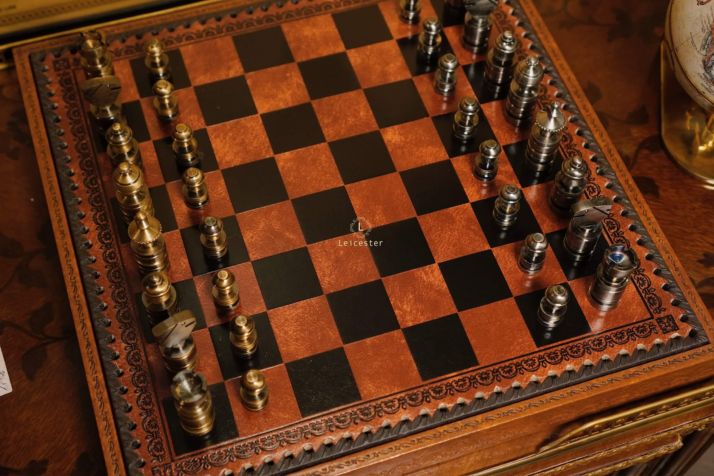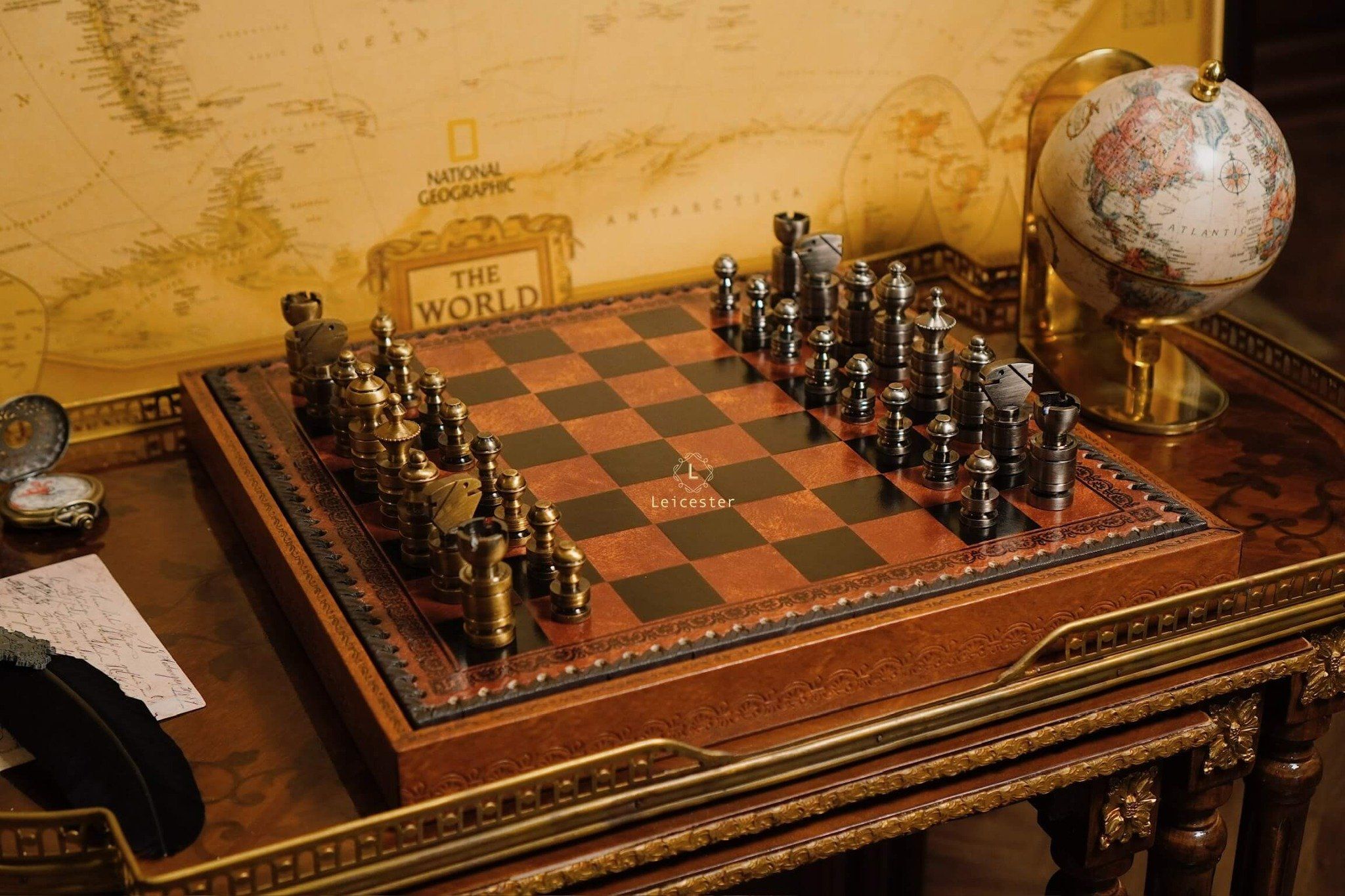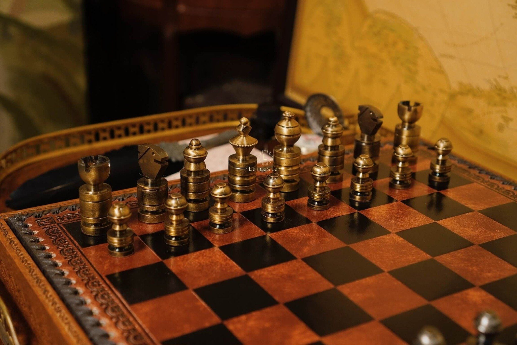 Bàn cờ: gỗ, bọc da