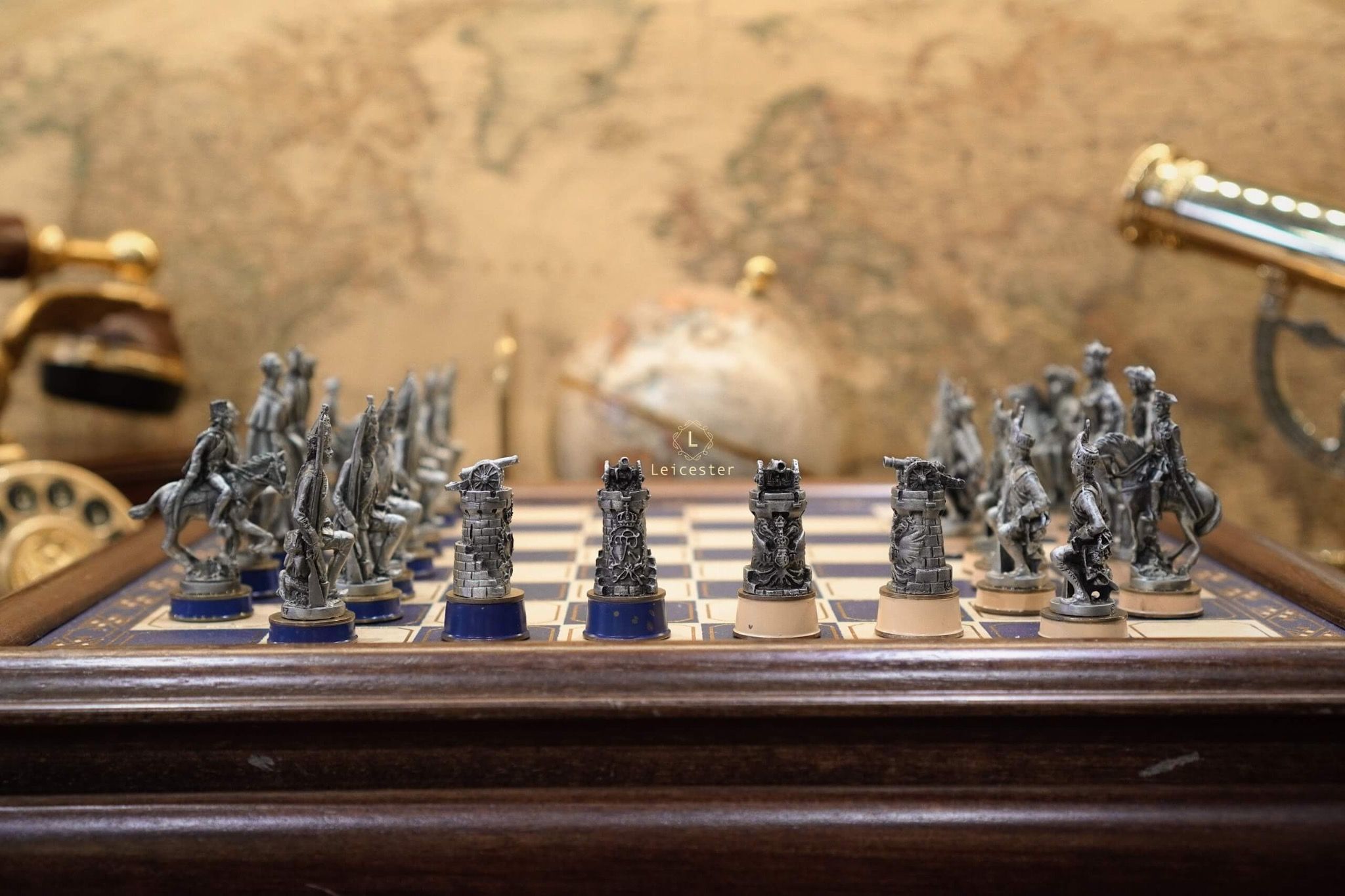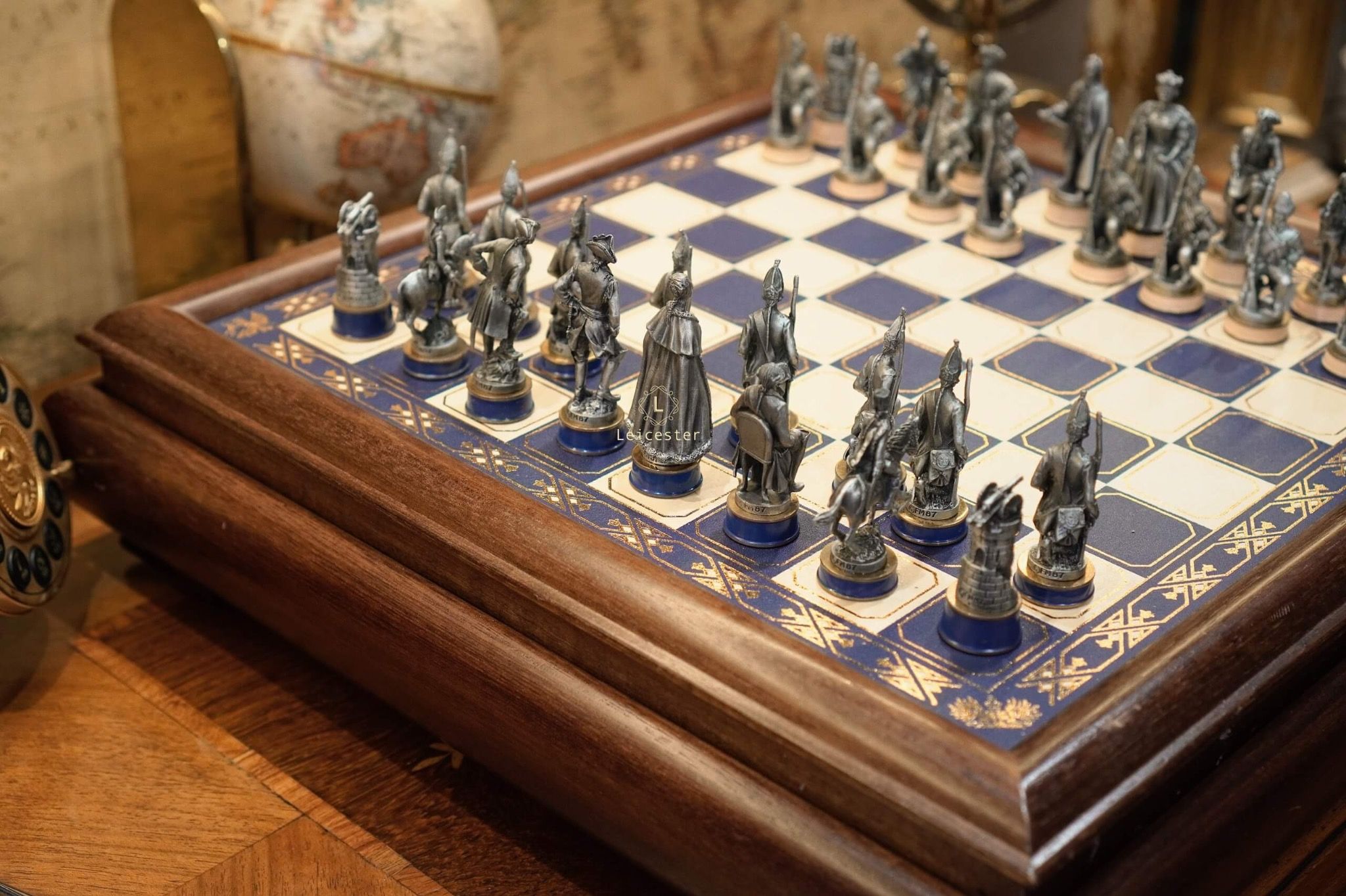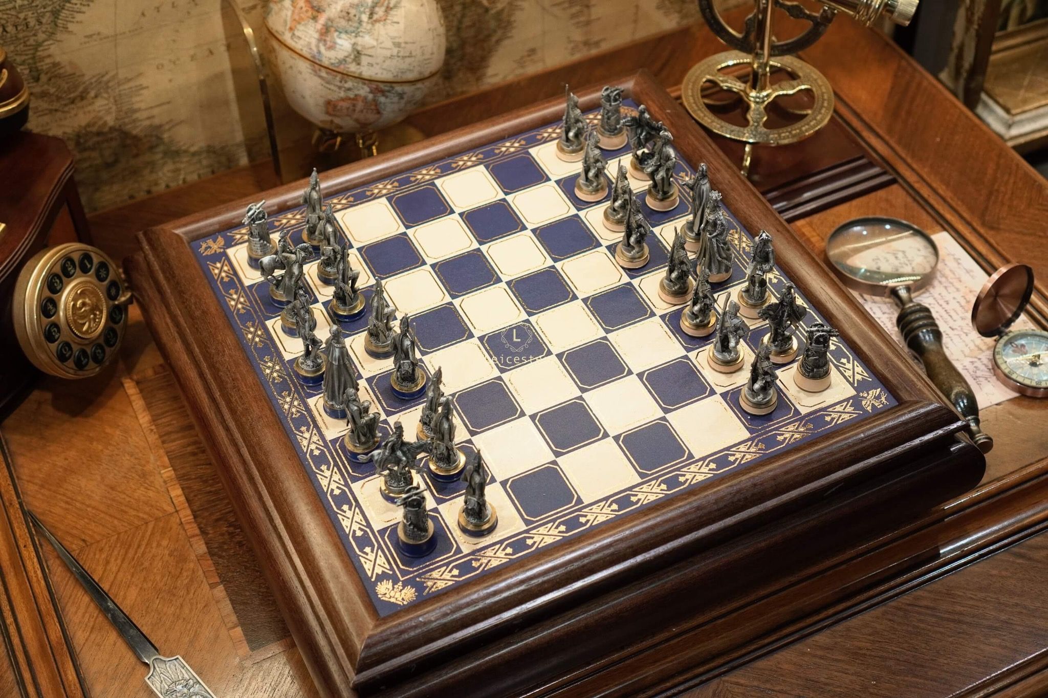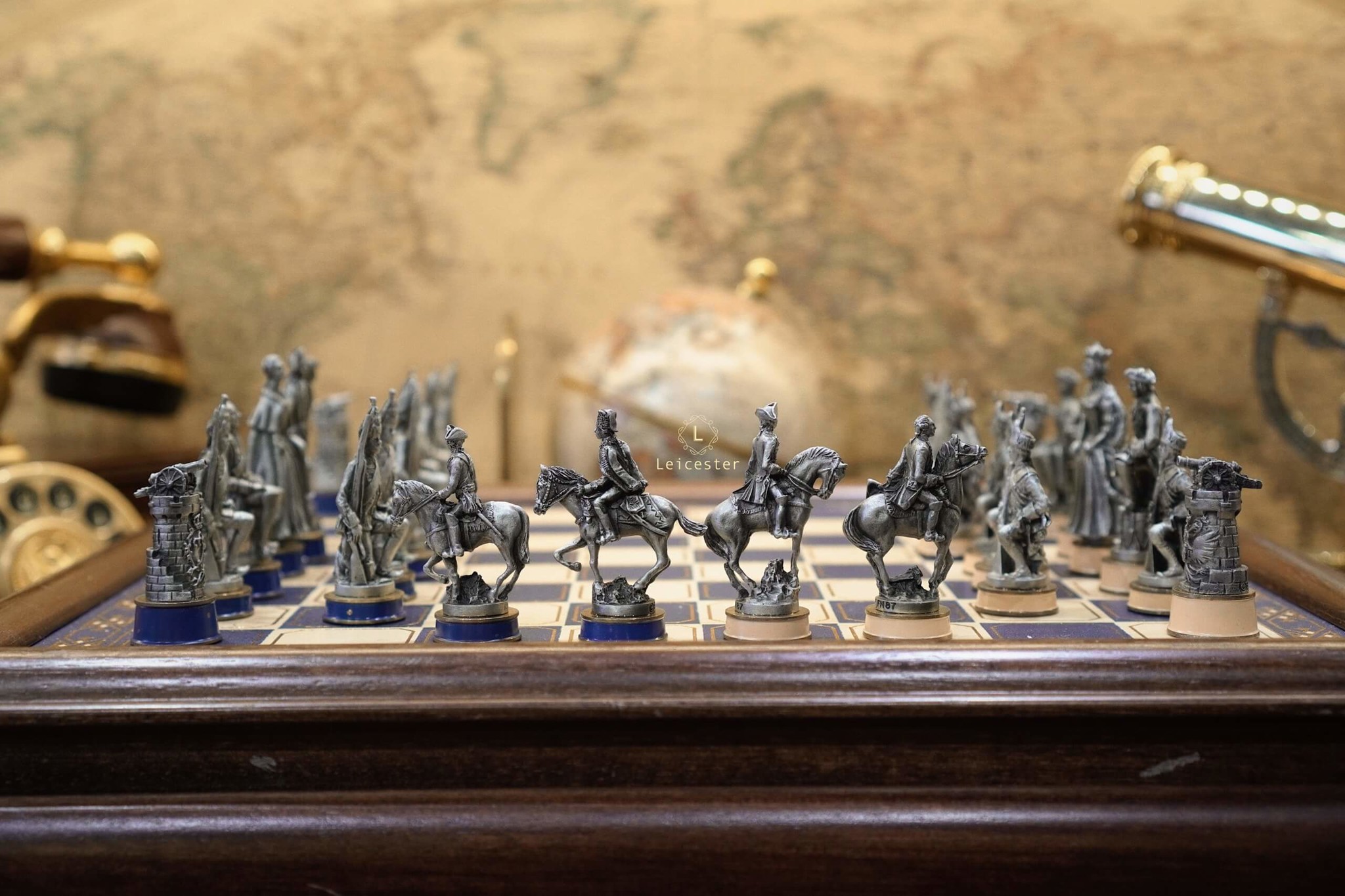 Quân cờ được chạm khắc tinh xảo bằng thiếc mạ vàng
