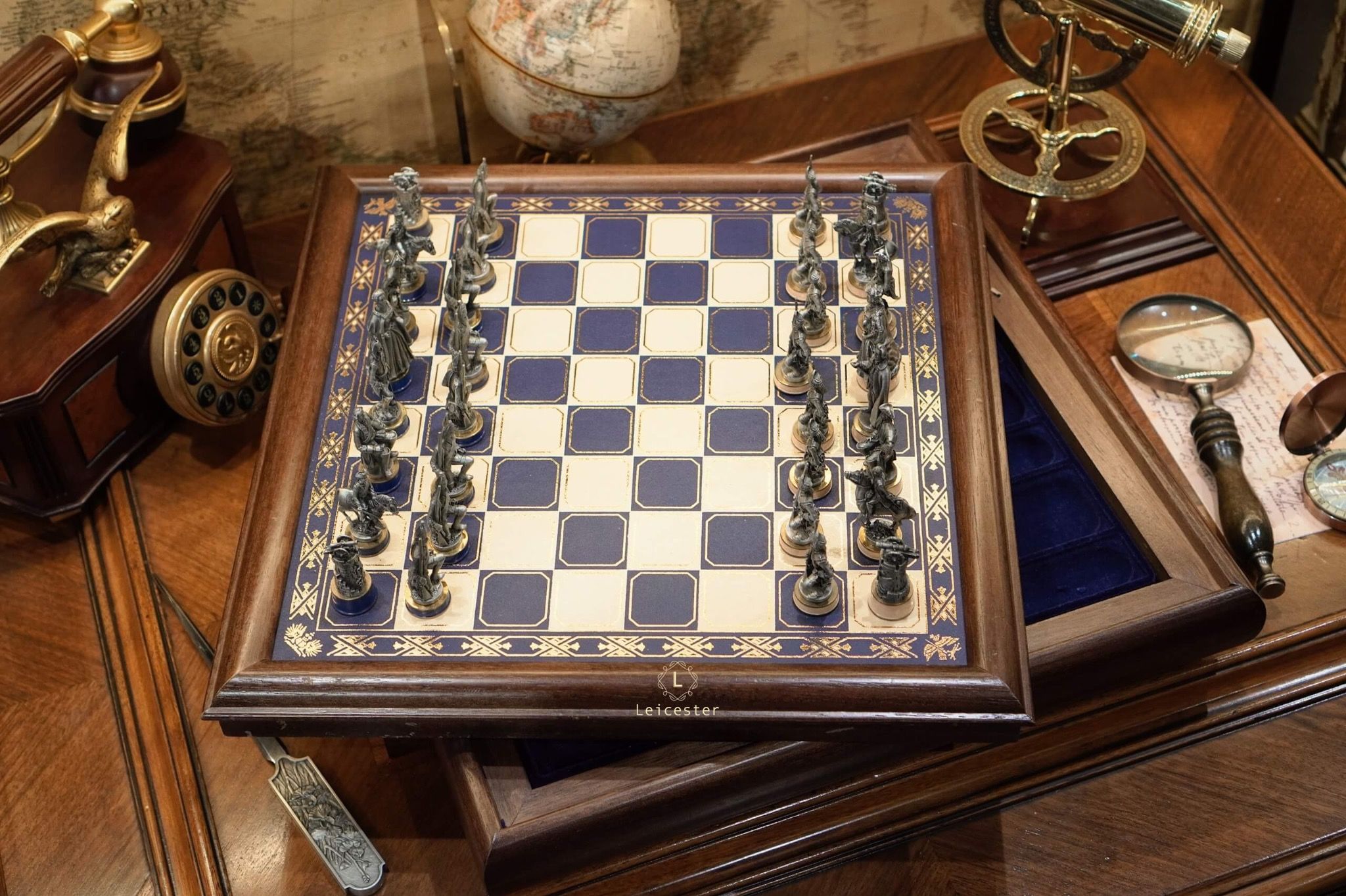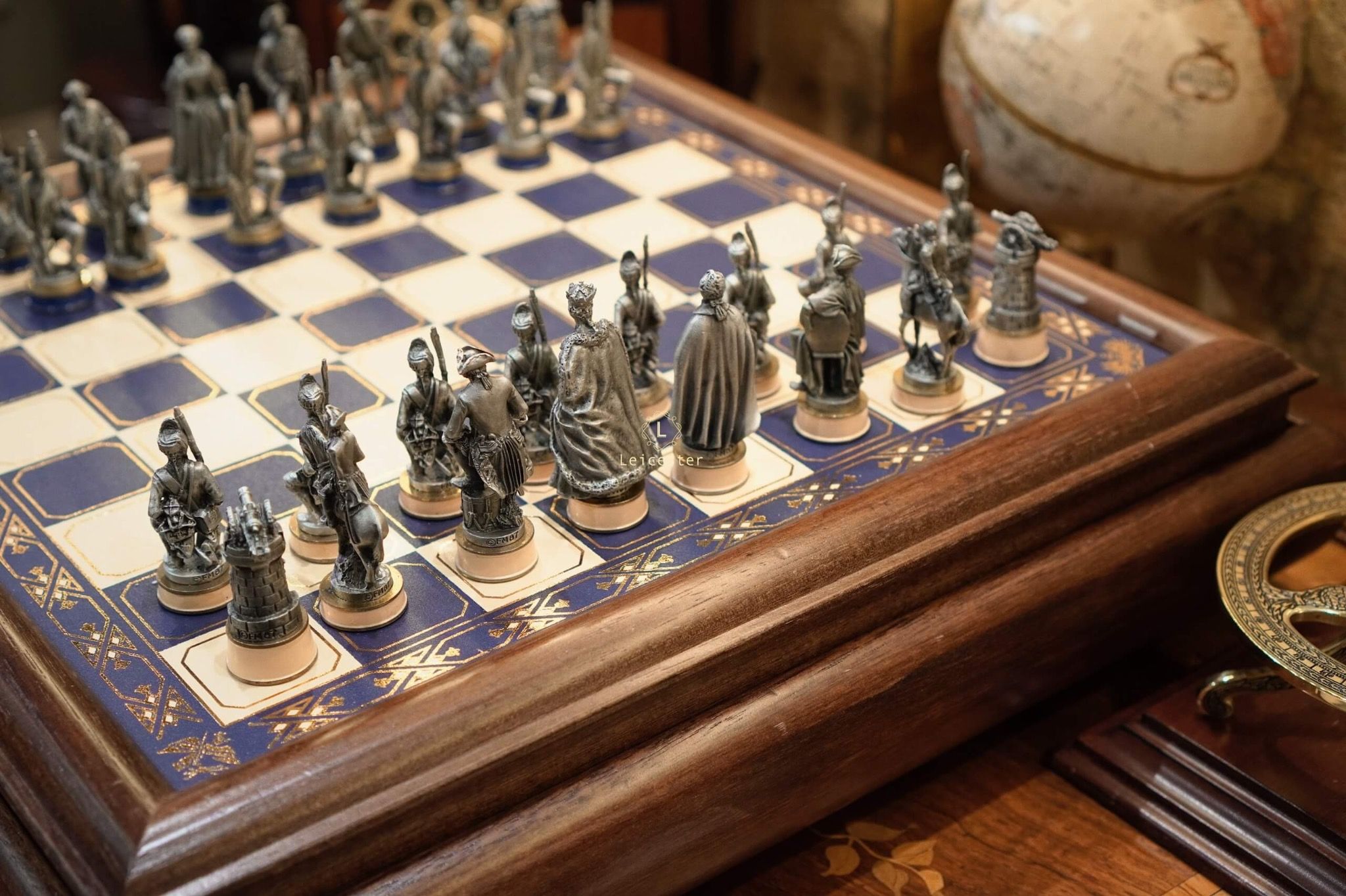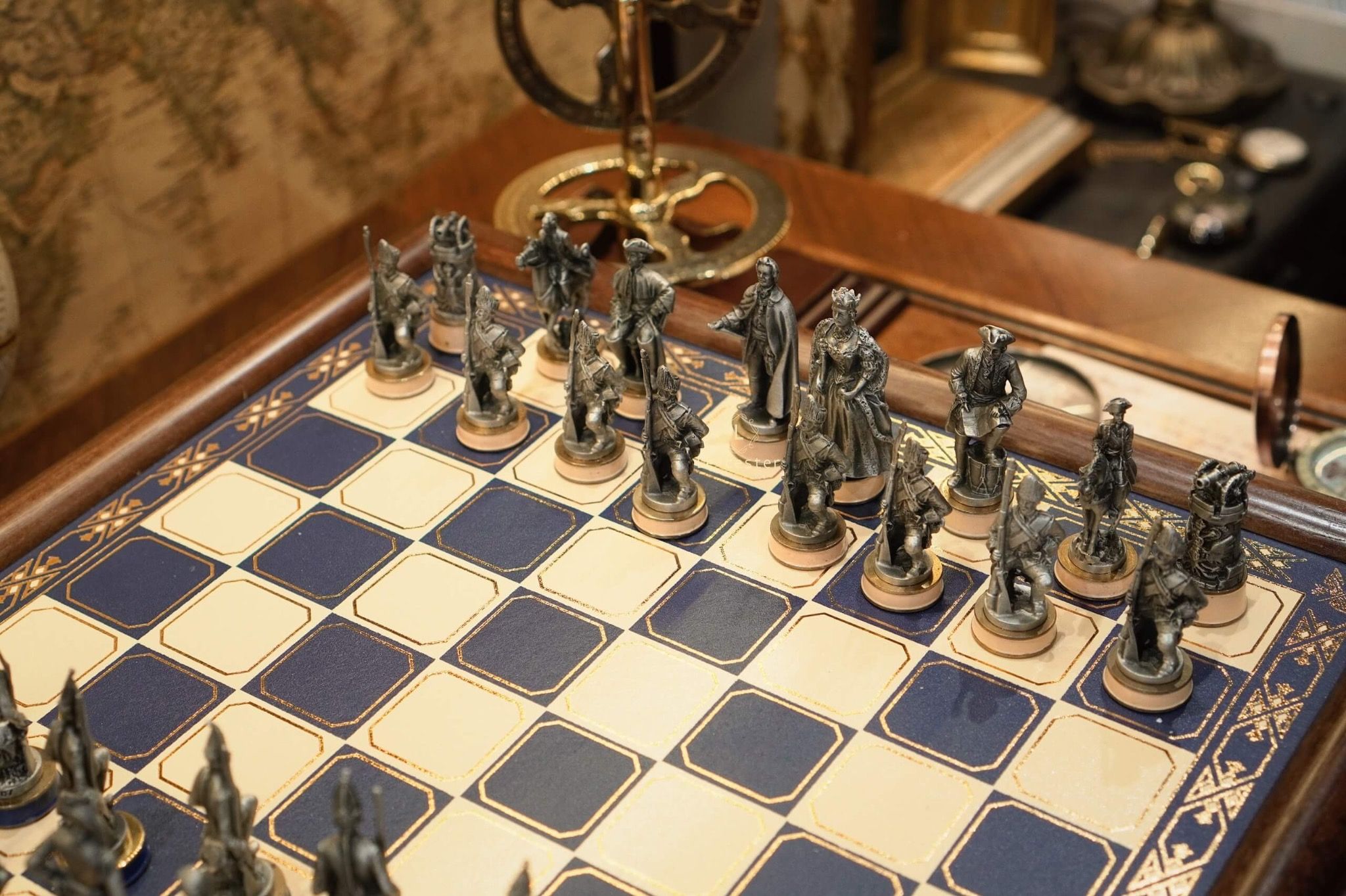 Quân cờ được chạm khắc tinh xảo bằng thiếc mạ vàng