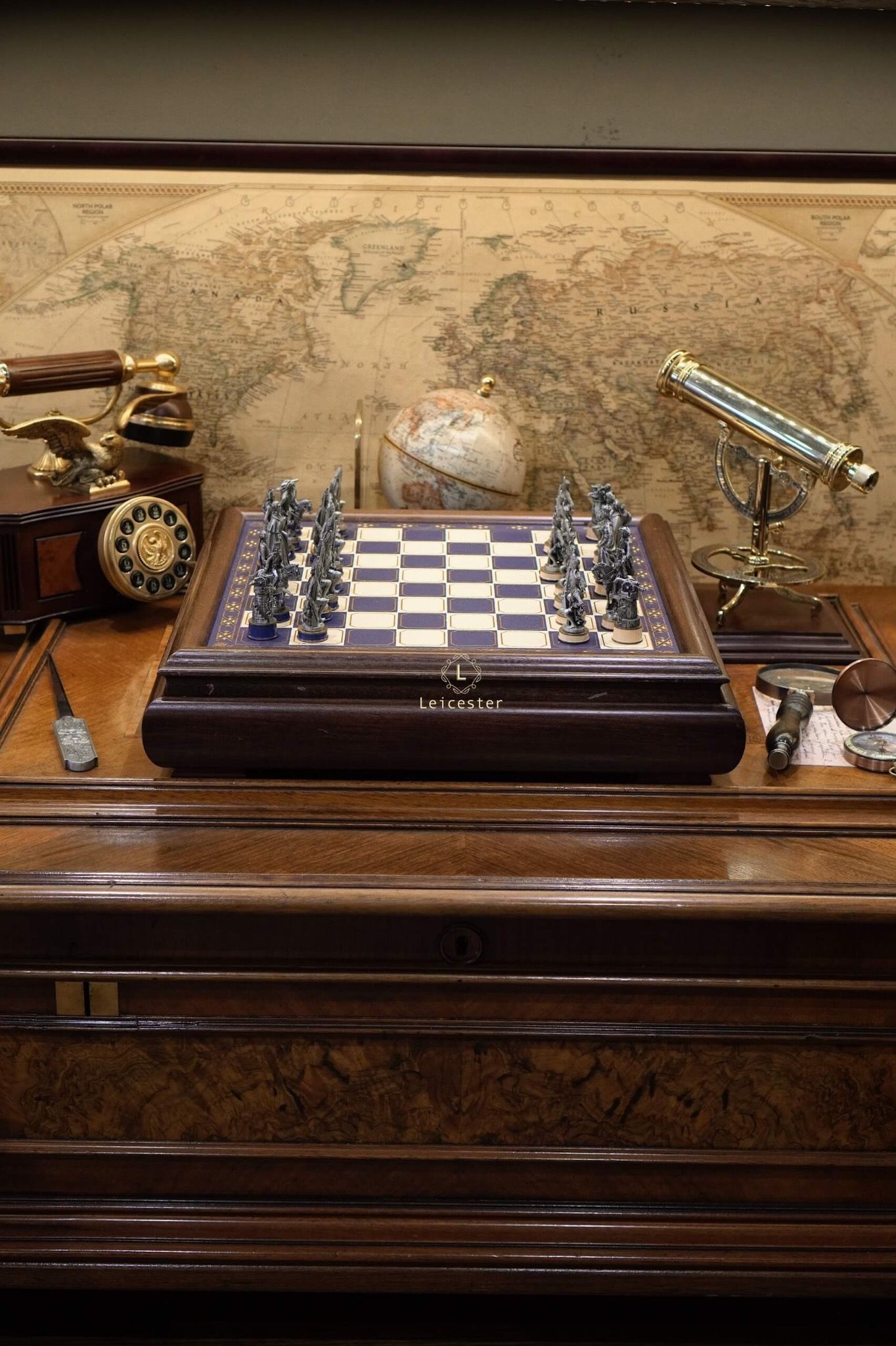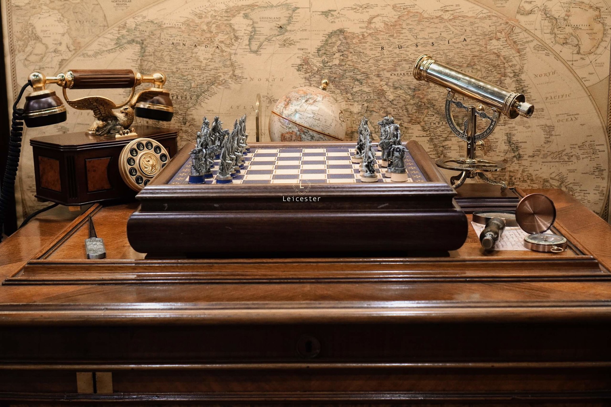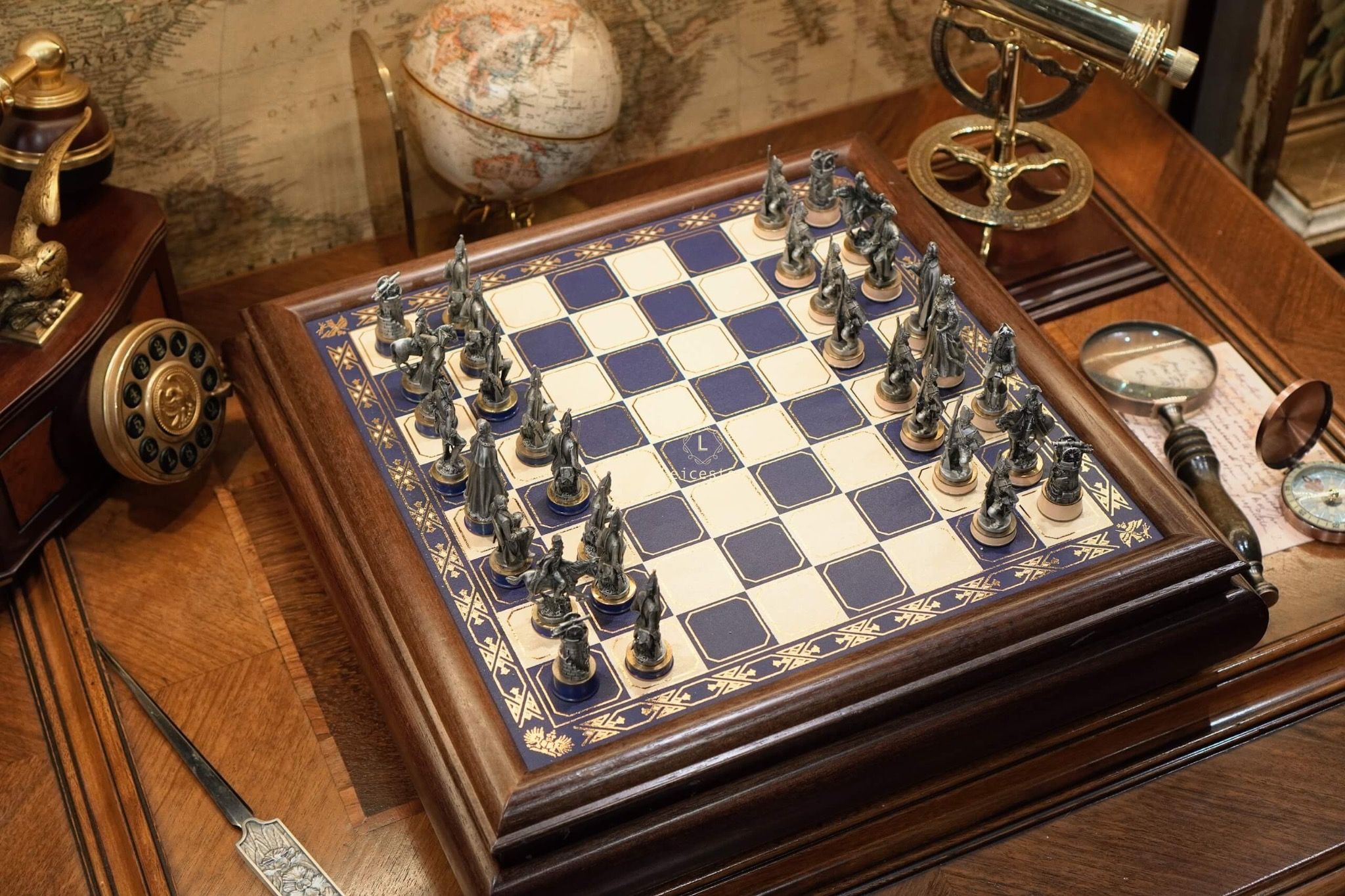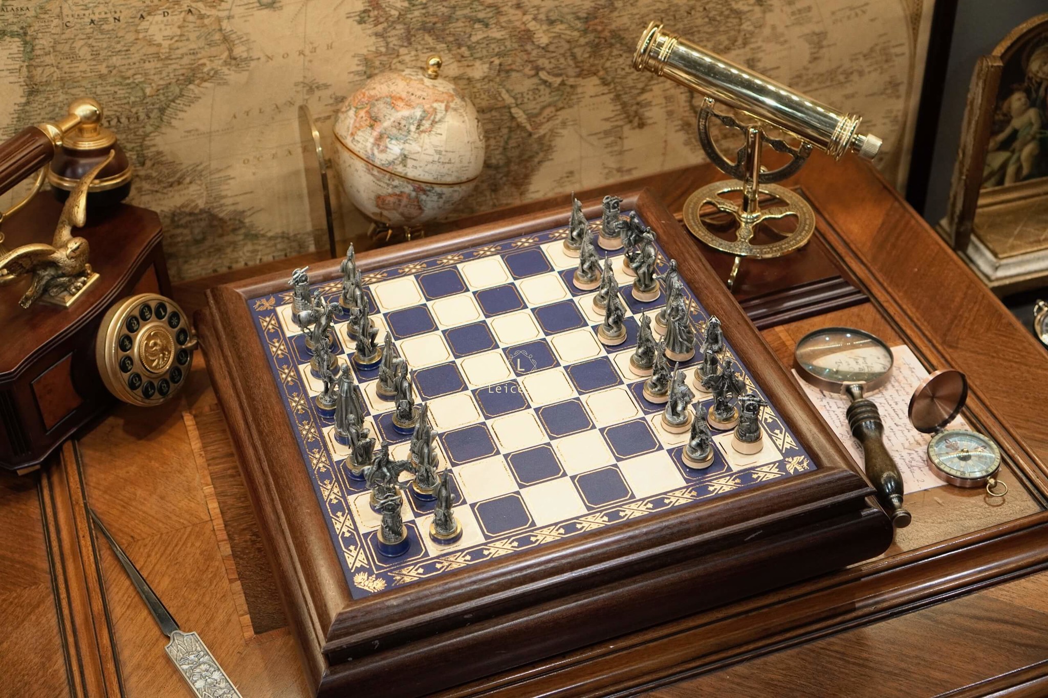 Quân cờ được chạm khắc tinh xảo bằng thiếc mạ vàng