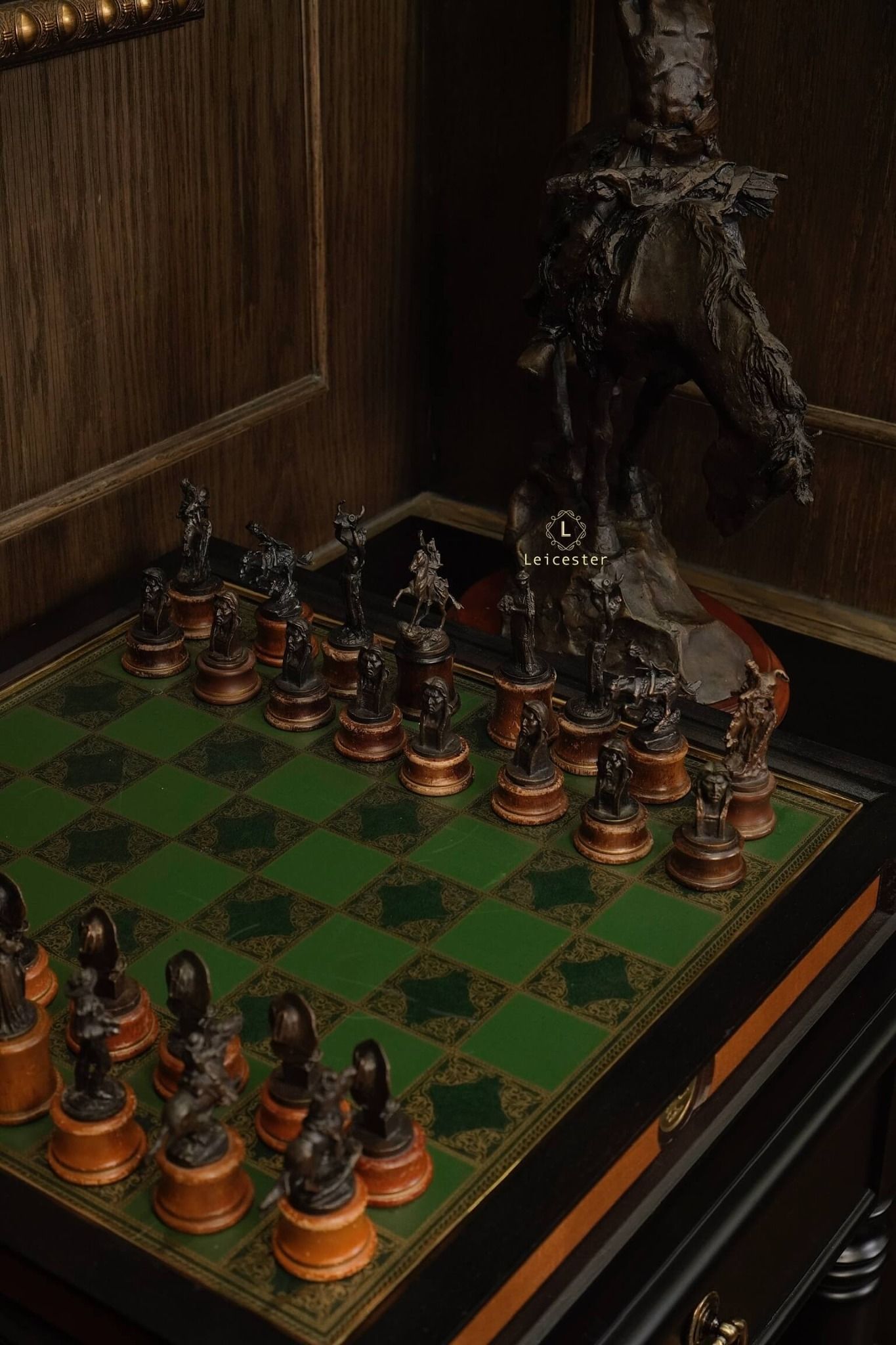 Đây là bộ cờ vua được Franklin Mint chế tác phát hành vào năm 1991, dựa trên tác phẩm nghệ thuật Viễn Tây nước Mỹ của hoạ sĩ Frederic Remington, được chính thức uỷ quyền lần đầu tiên bởi Bảo tàng Nghệ thuật Frederic Remington.