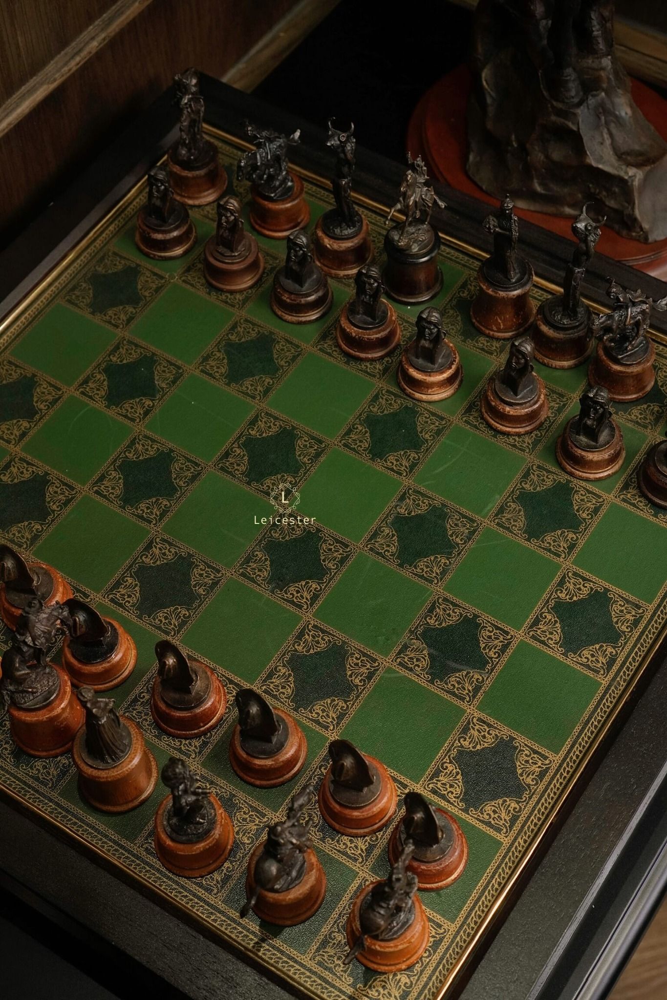 - Bàn cờ: Gỗ, mặt bàn da, chi tiết dát vàng