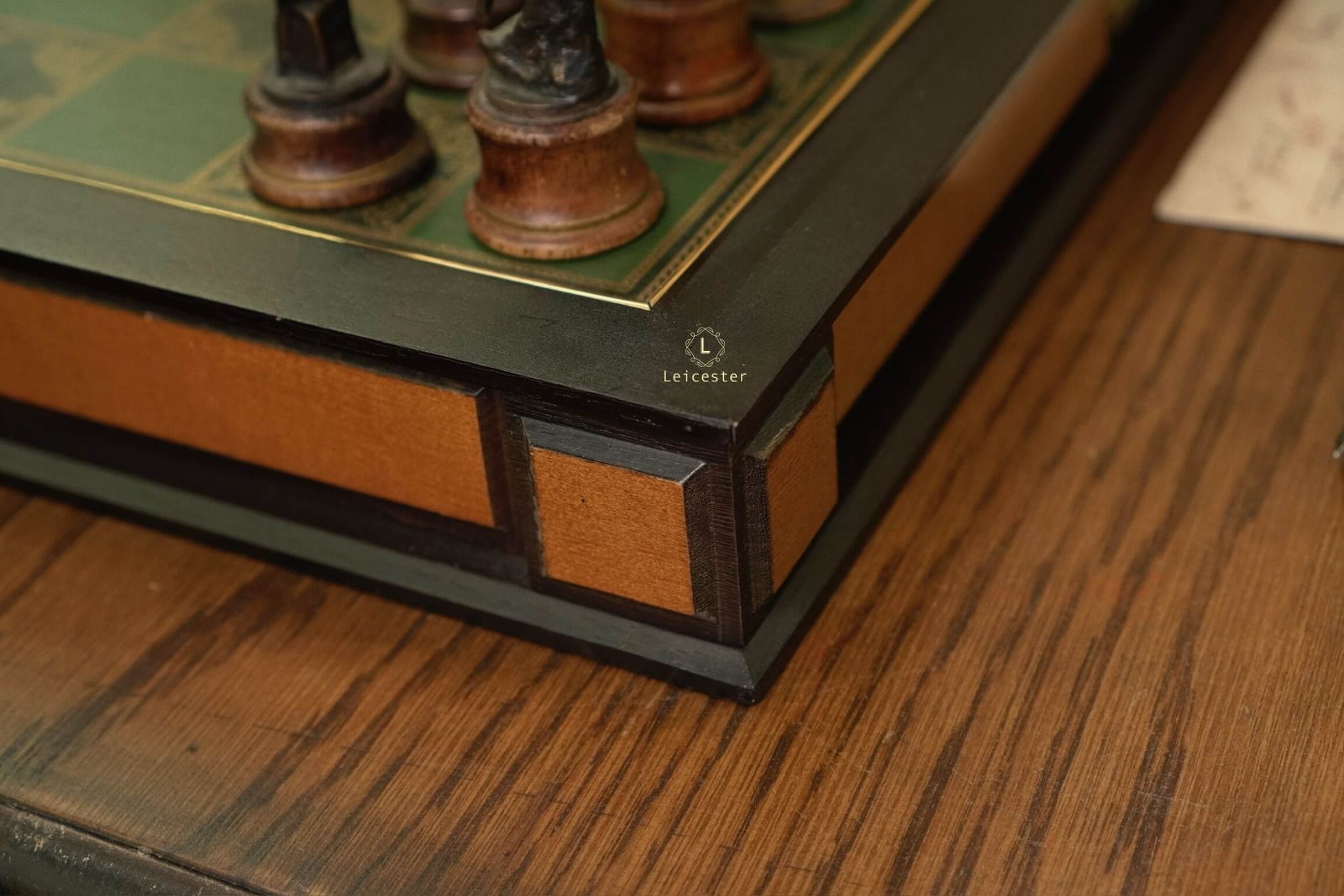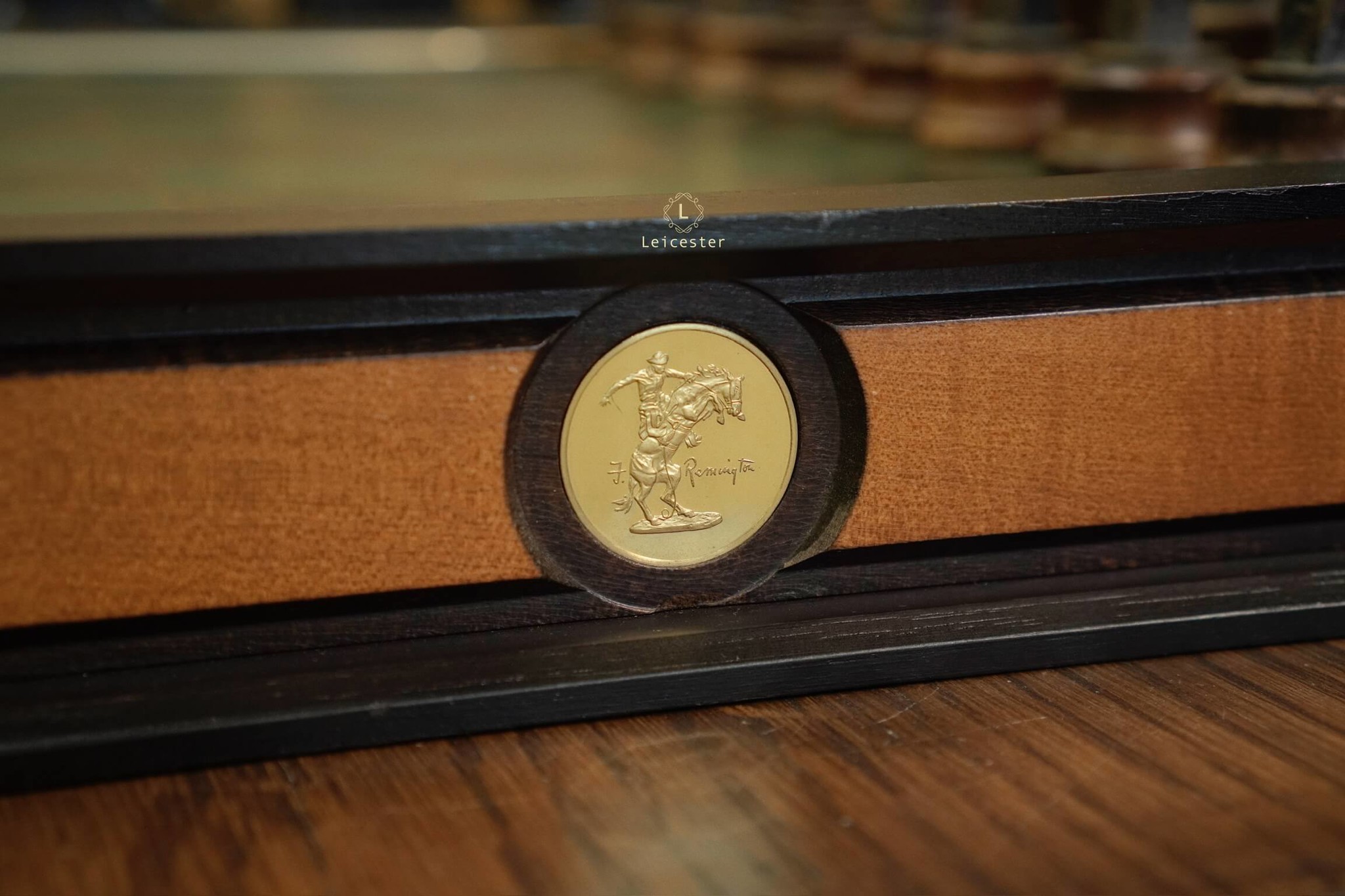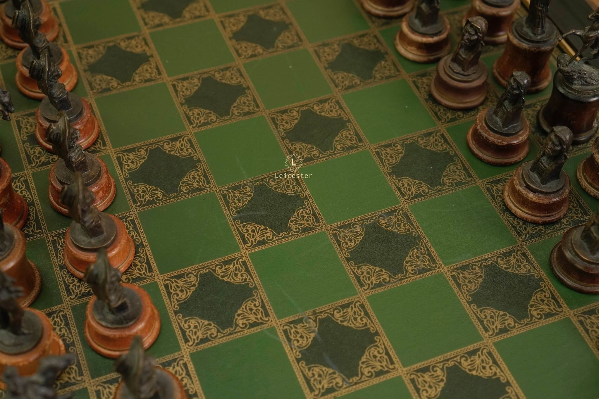 Bàn cờ: gỗ, mặt bàn da, chi tiết dát vàng