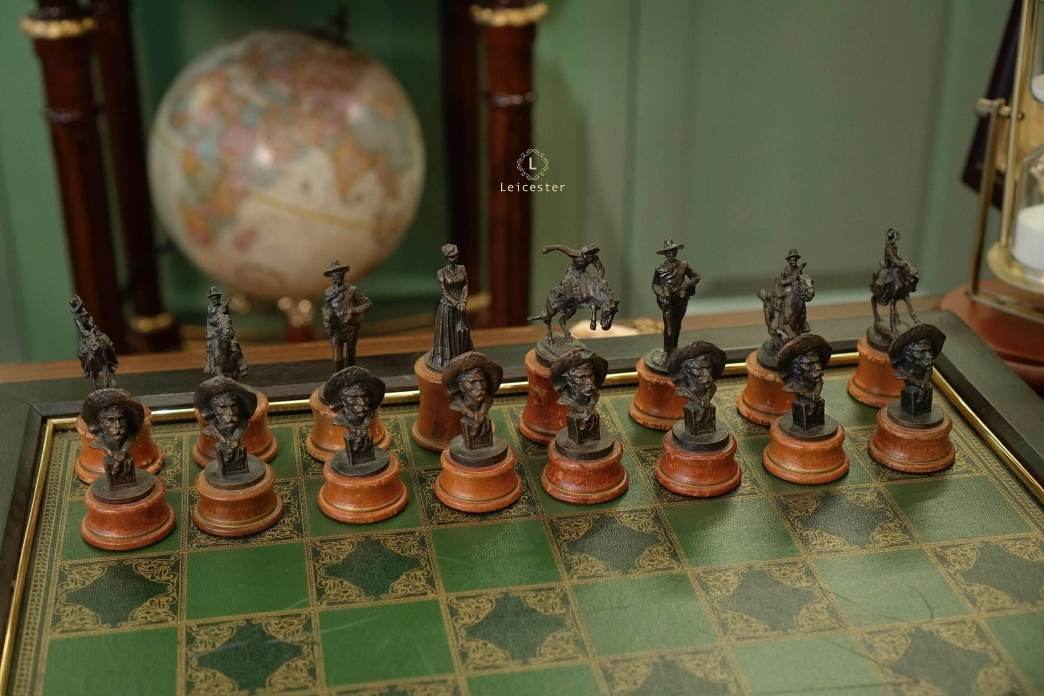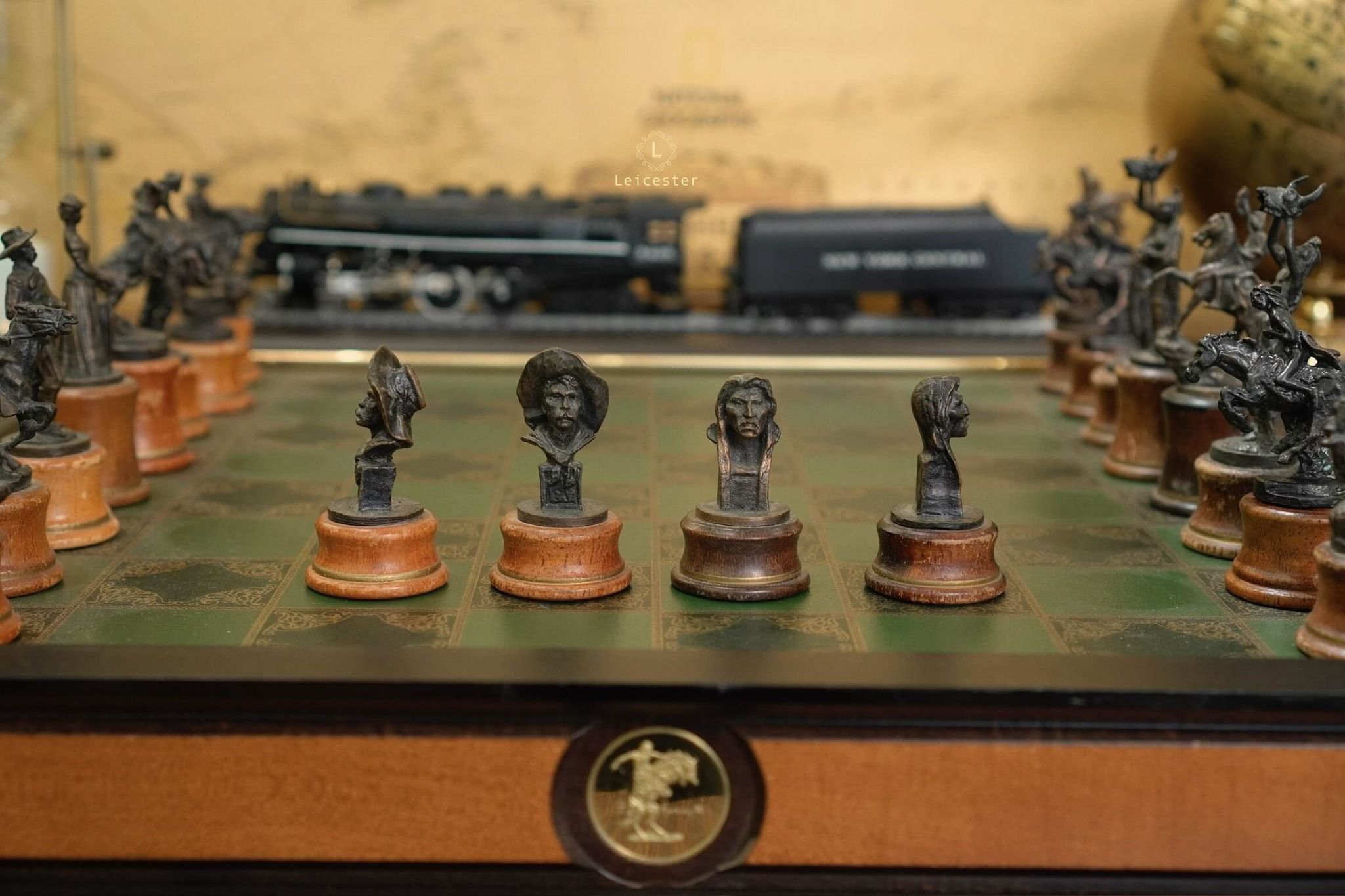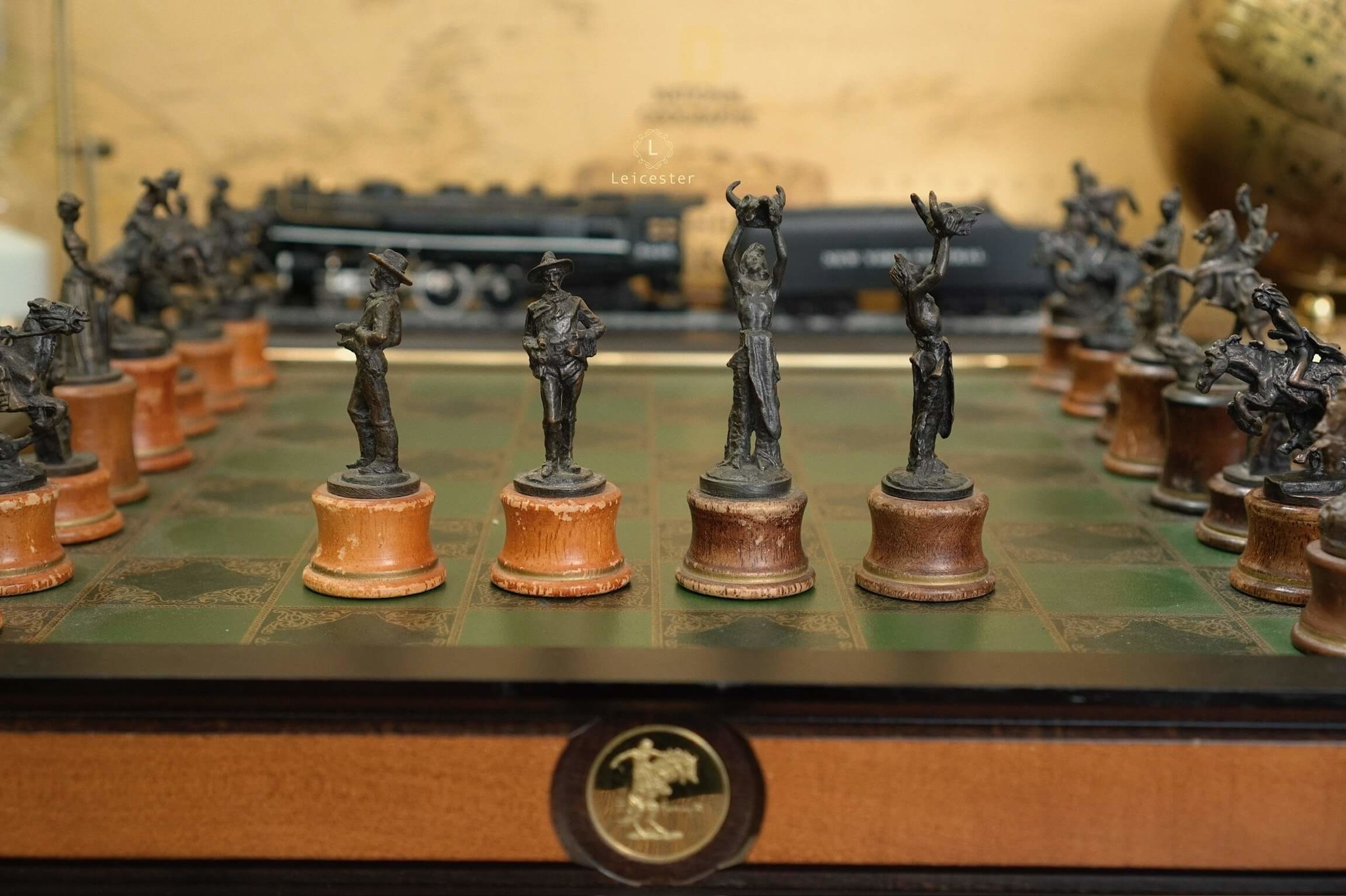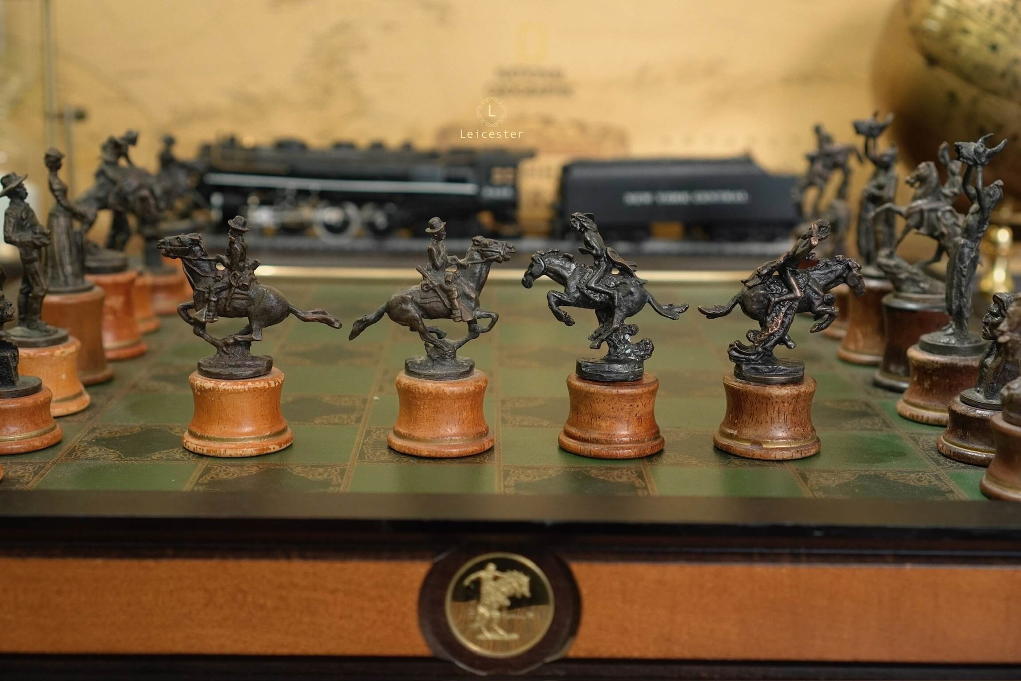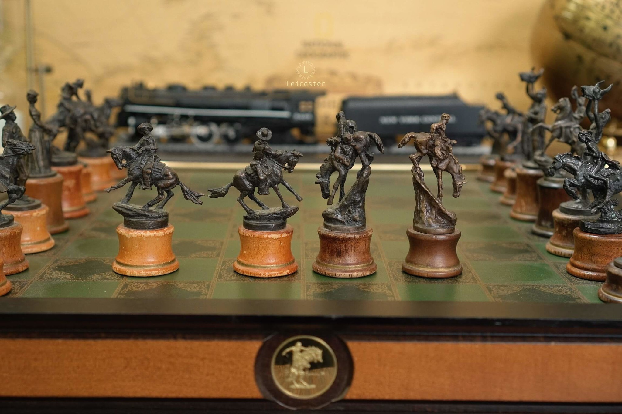 Đây là bộ cờ vua đầu tiên được ủy quyền bởi Bảo tàng Nghệ thuật Frederic Remington, Mỗi quân cờ được điêu khắc được hoàn thiện thủ công, bàn cờ được đóng khung bằng gỗ cứng tuyệt đẹp có điểm nhấn với bốn huy chương đồng thau có biểu tượng của Remington.