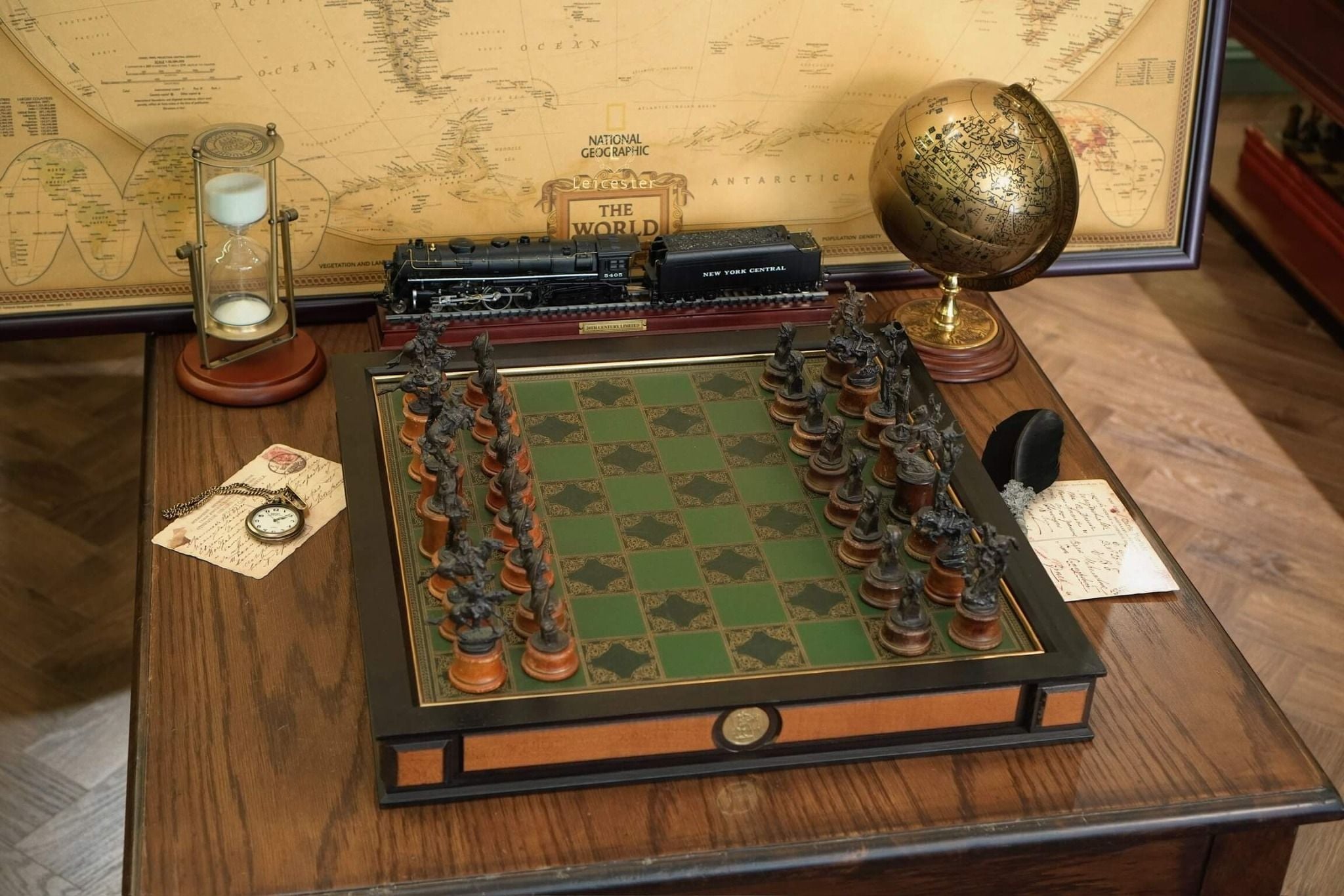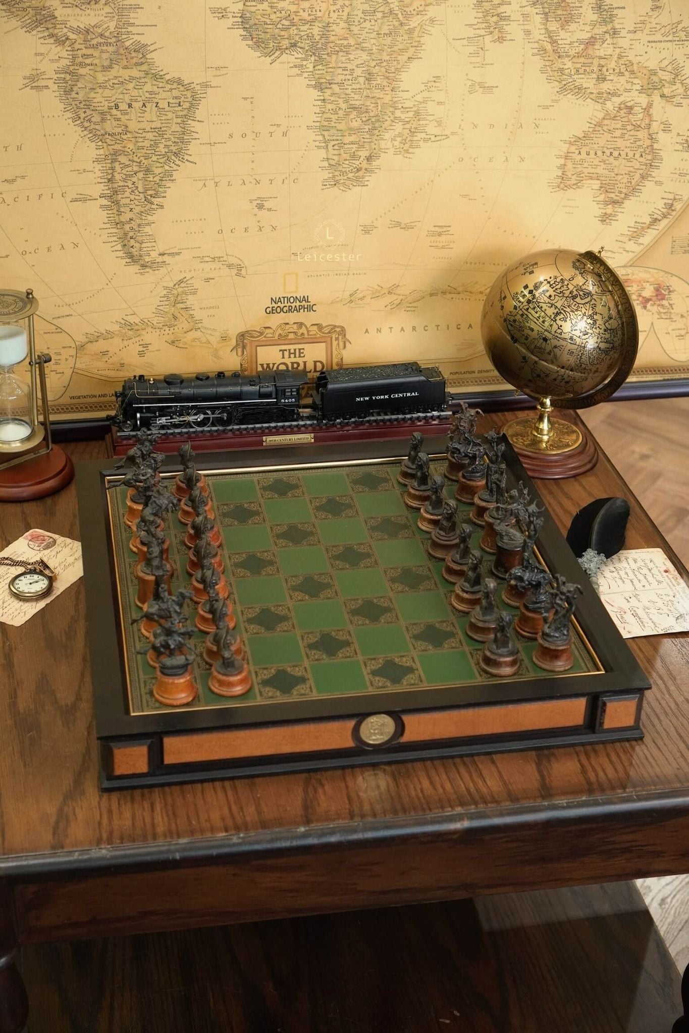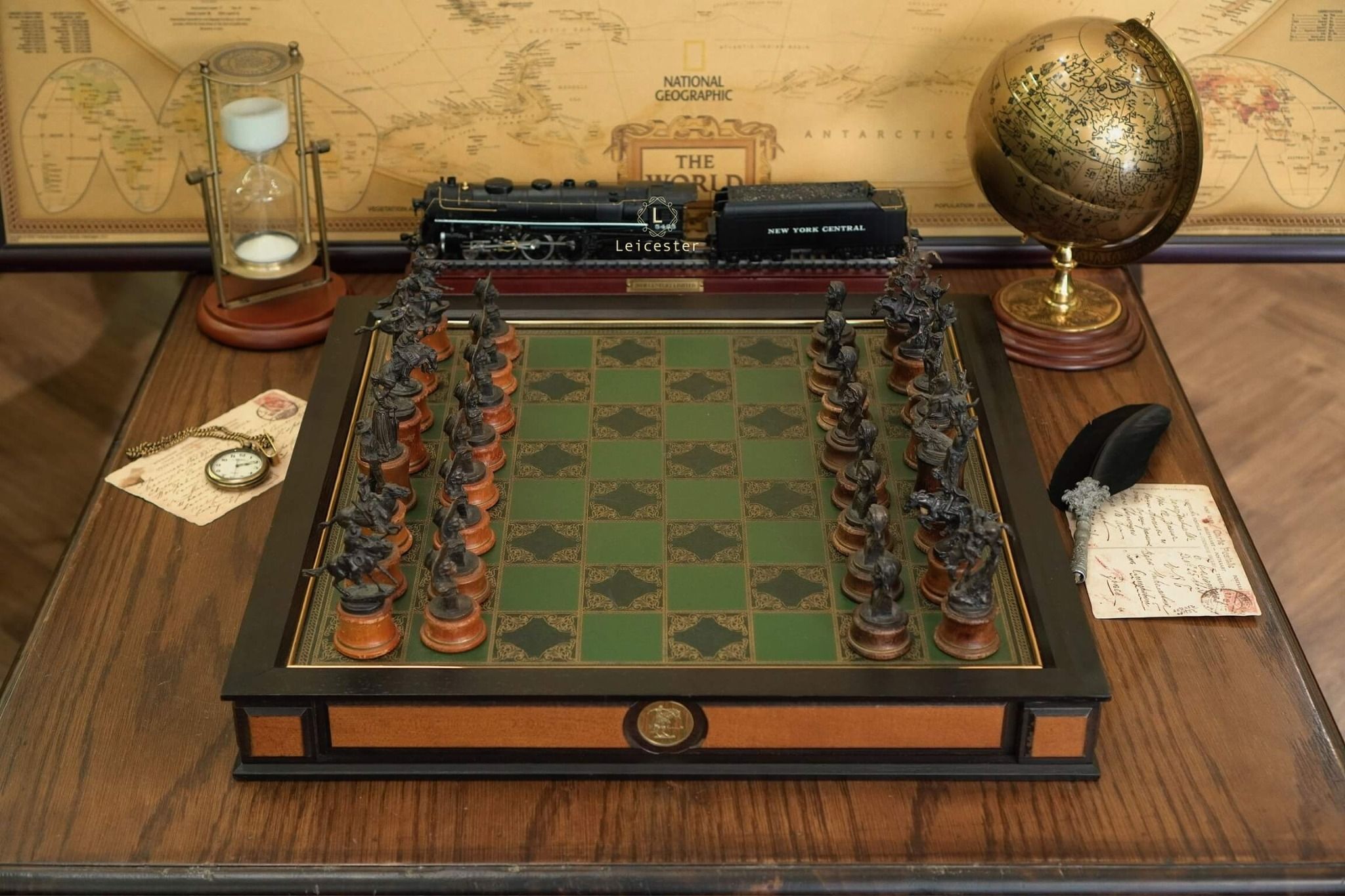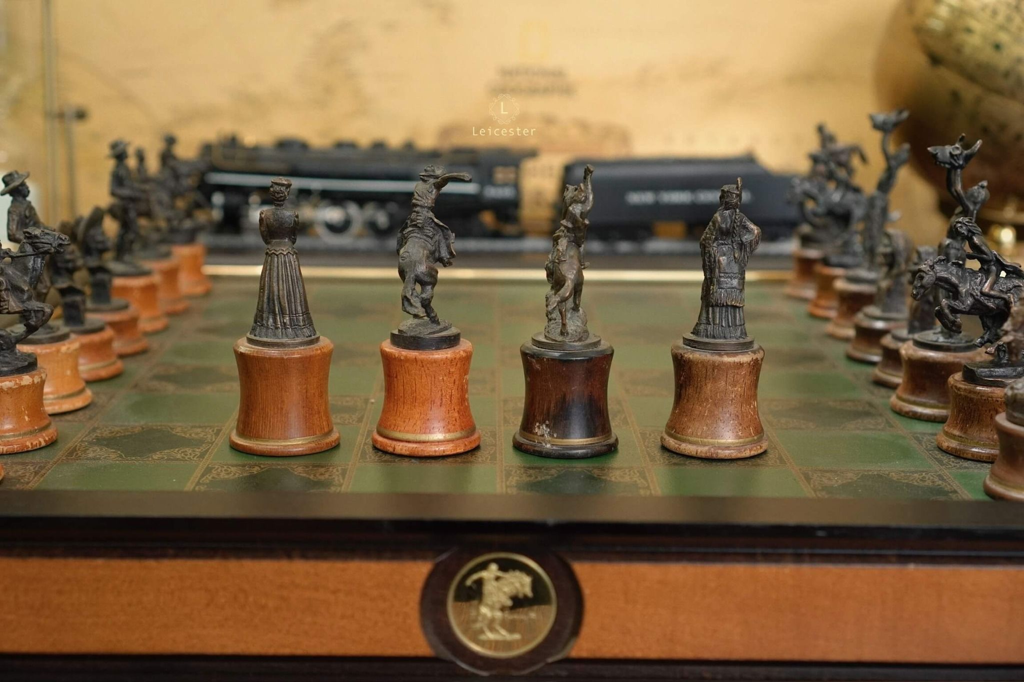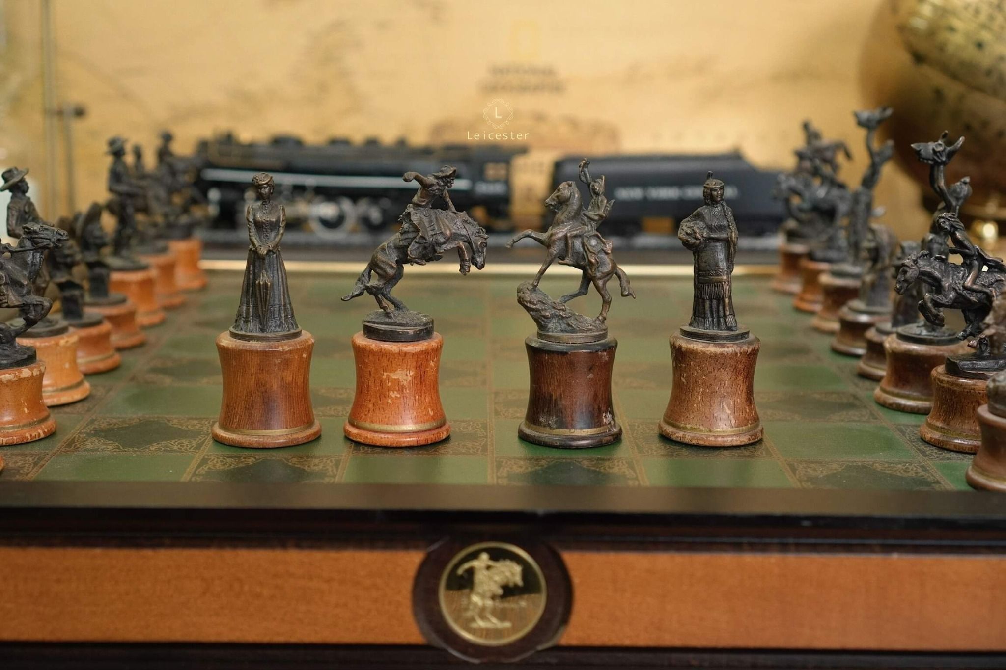 Đây là bộ cờ vua đầu tiên được ủy quyền bởi Bảo tàng Nghệ thuật Frederic Remington, Mỗi quân cờ được điêu khắc được hoàn thiện thủ công, bàn cờ được đóng khung bằng gỗ cứng tuyệt đẹp có điểm nhấn với bốn huy chương đồng thau có biểu tượng của Remington.