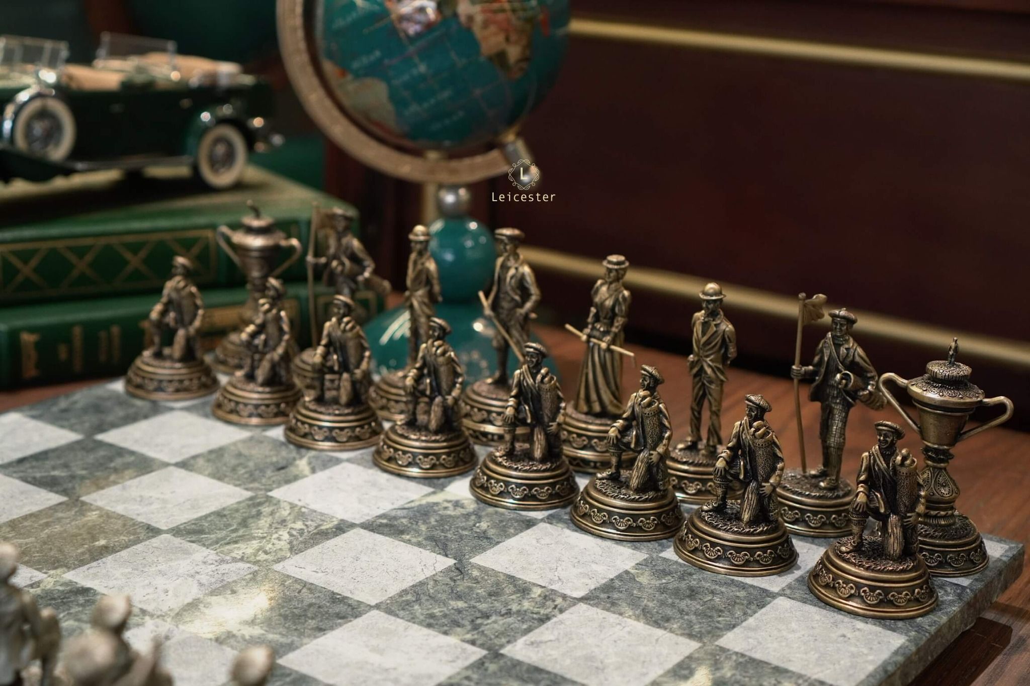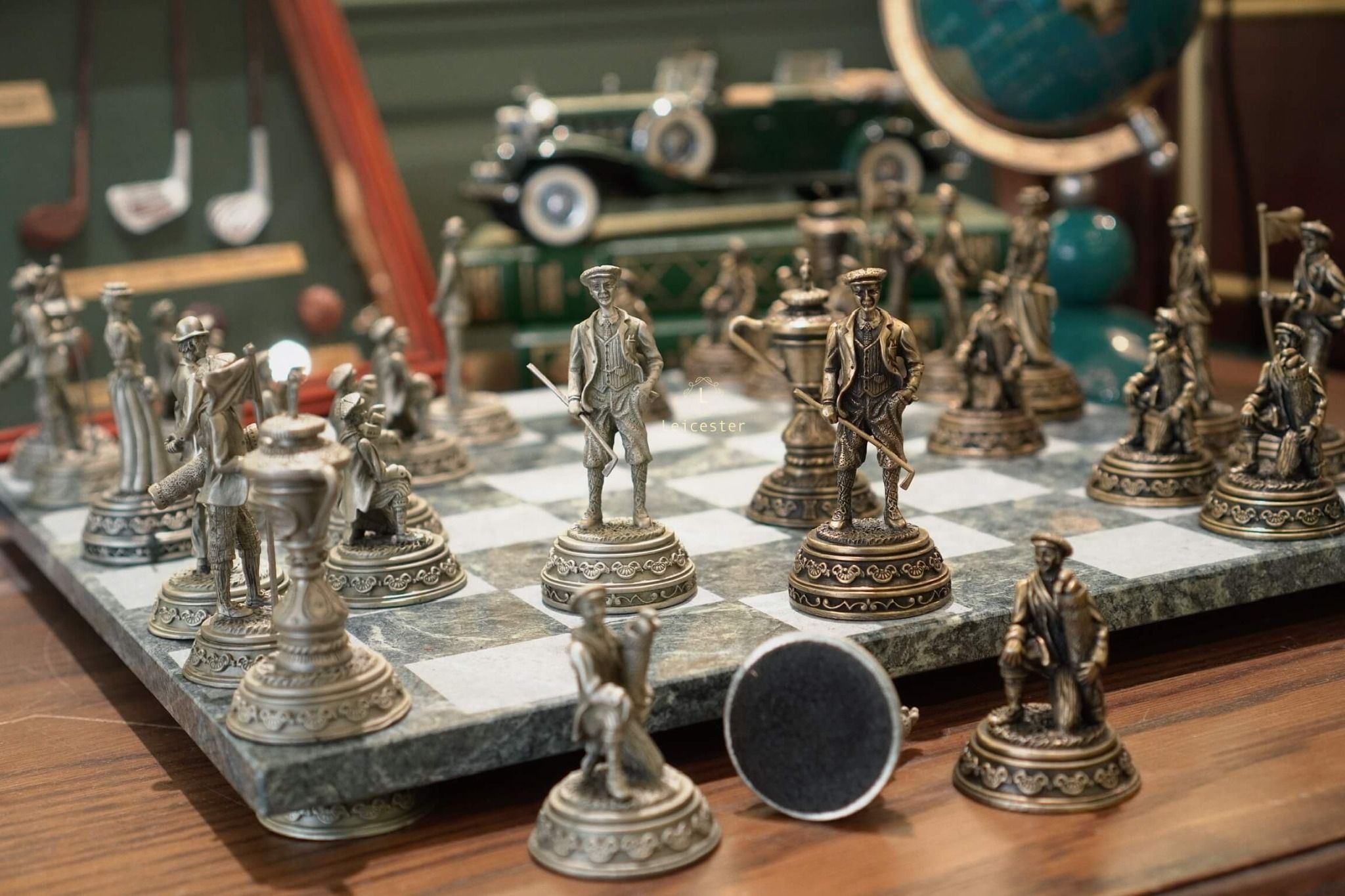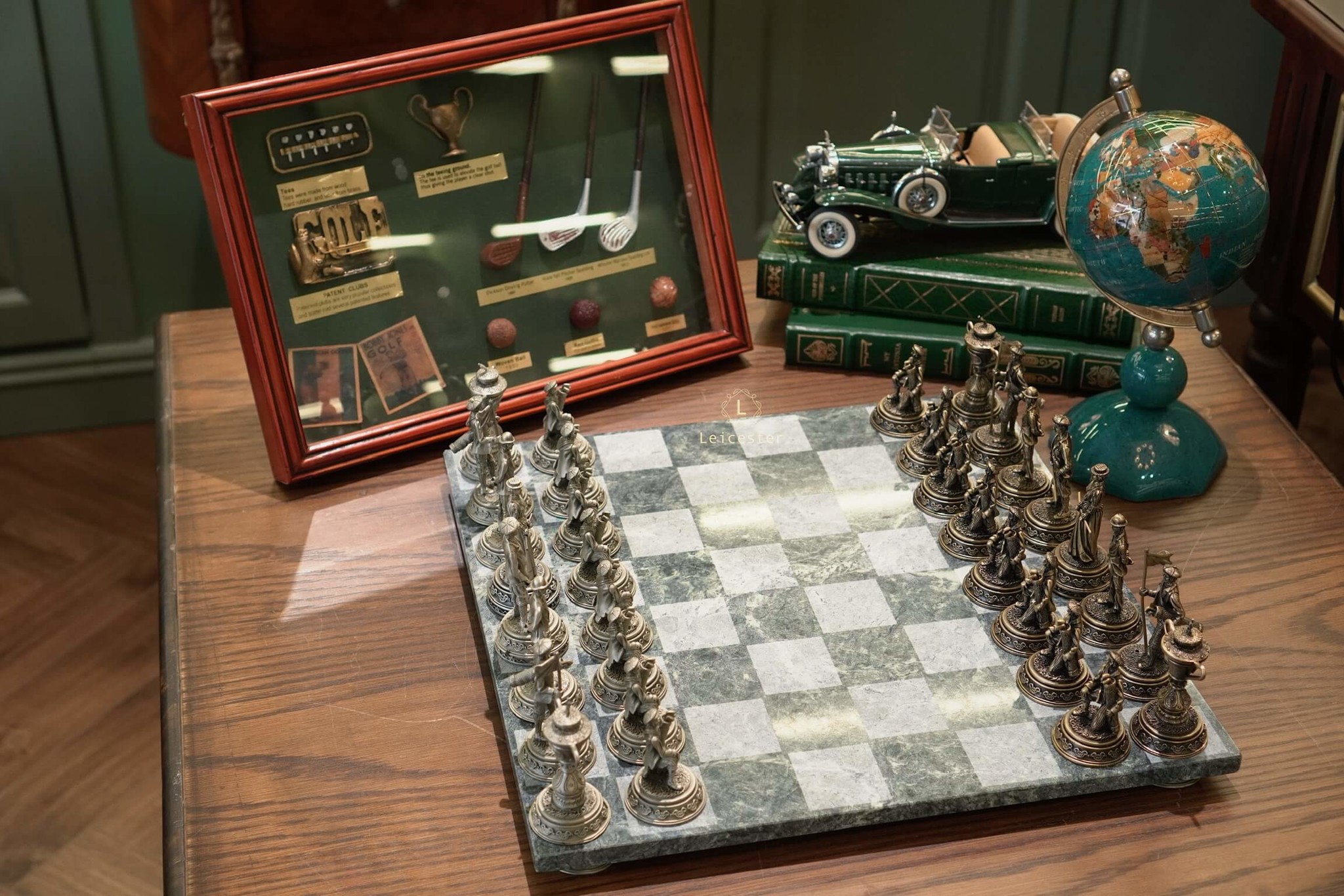 Bàn cờ: đá cẩm thạch nguyên khối.