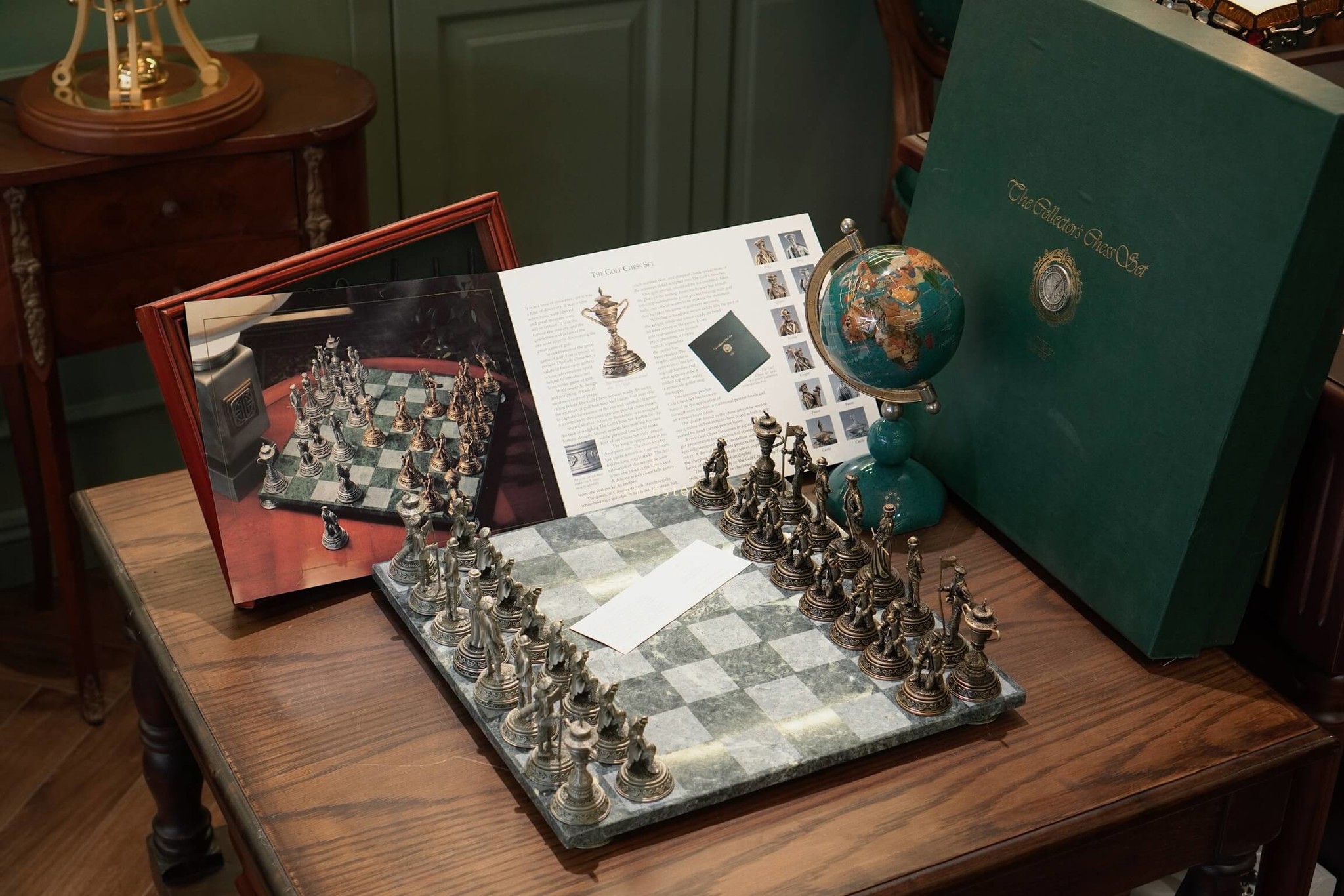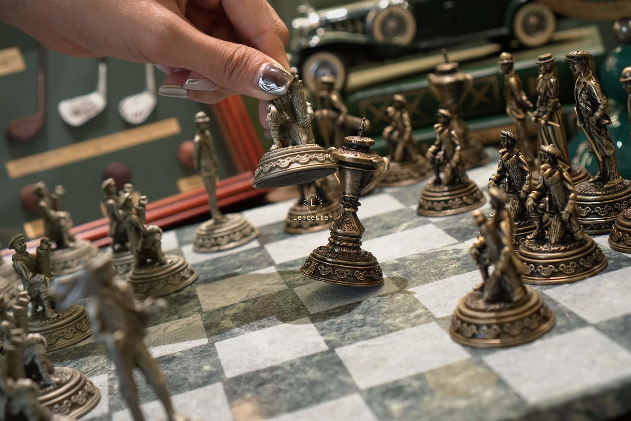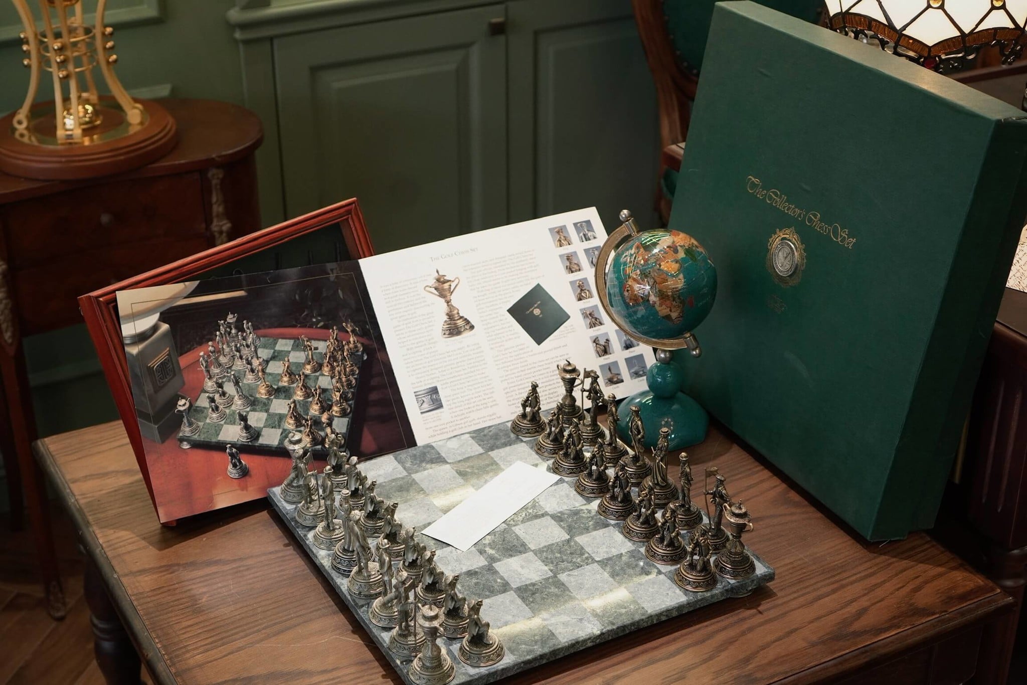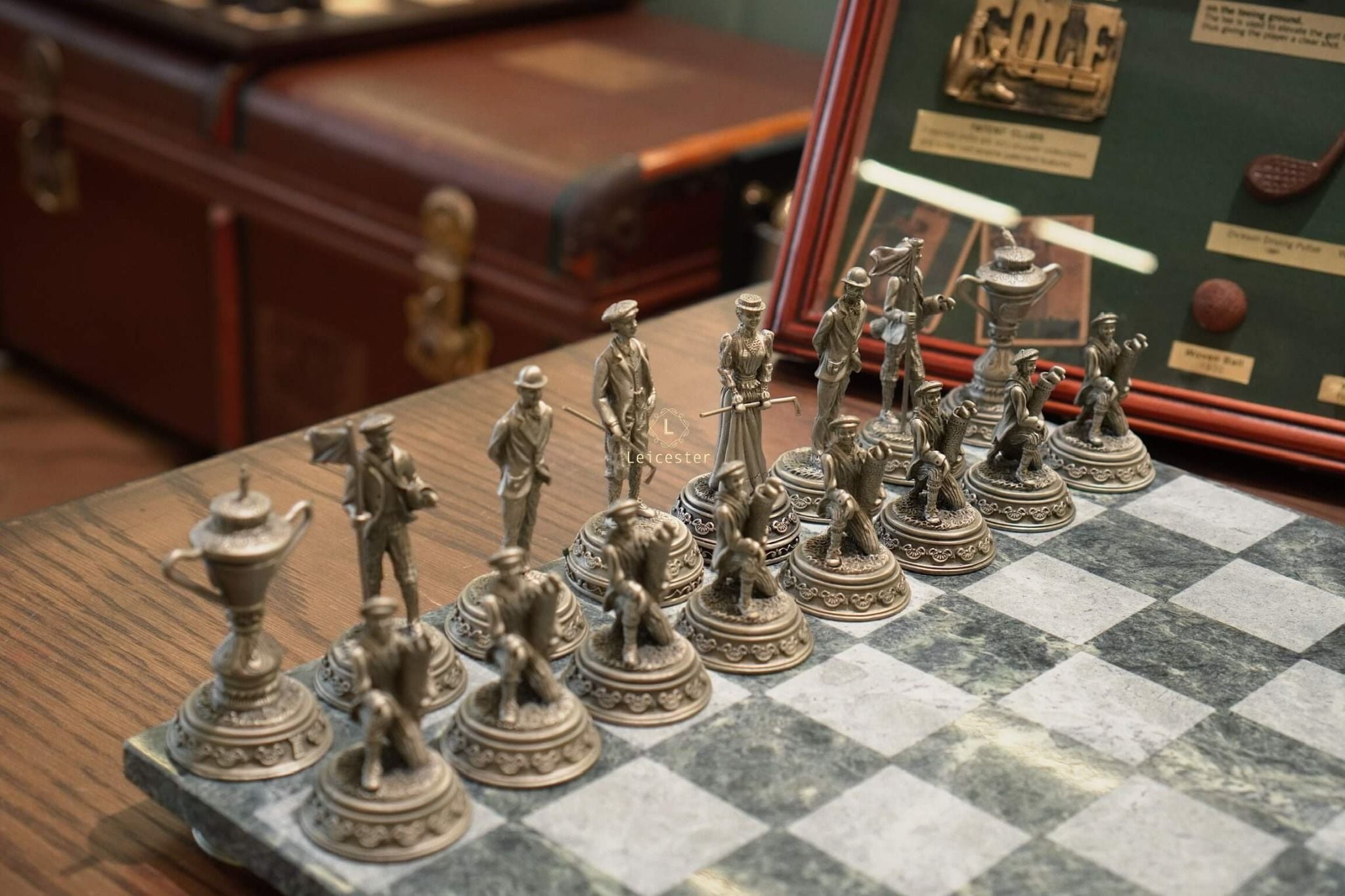Bàn cờ: đá cẩm thạch nguyên khối.