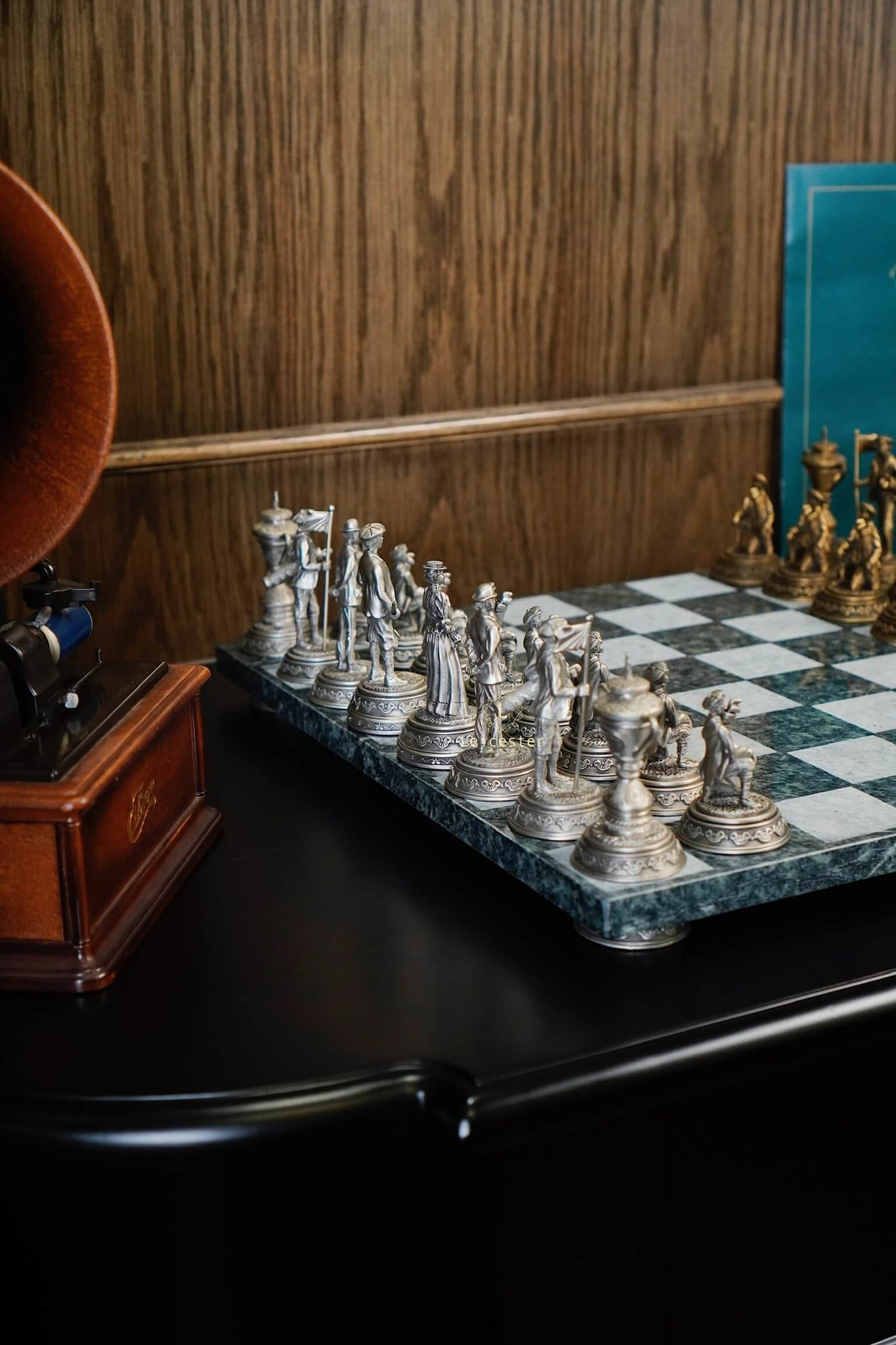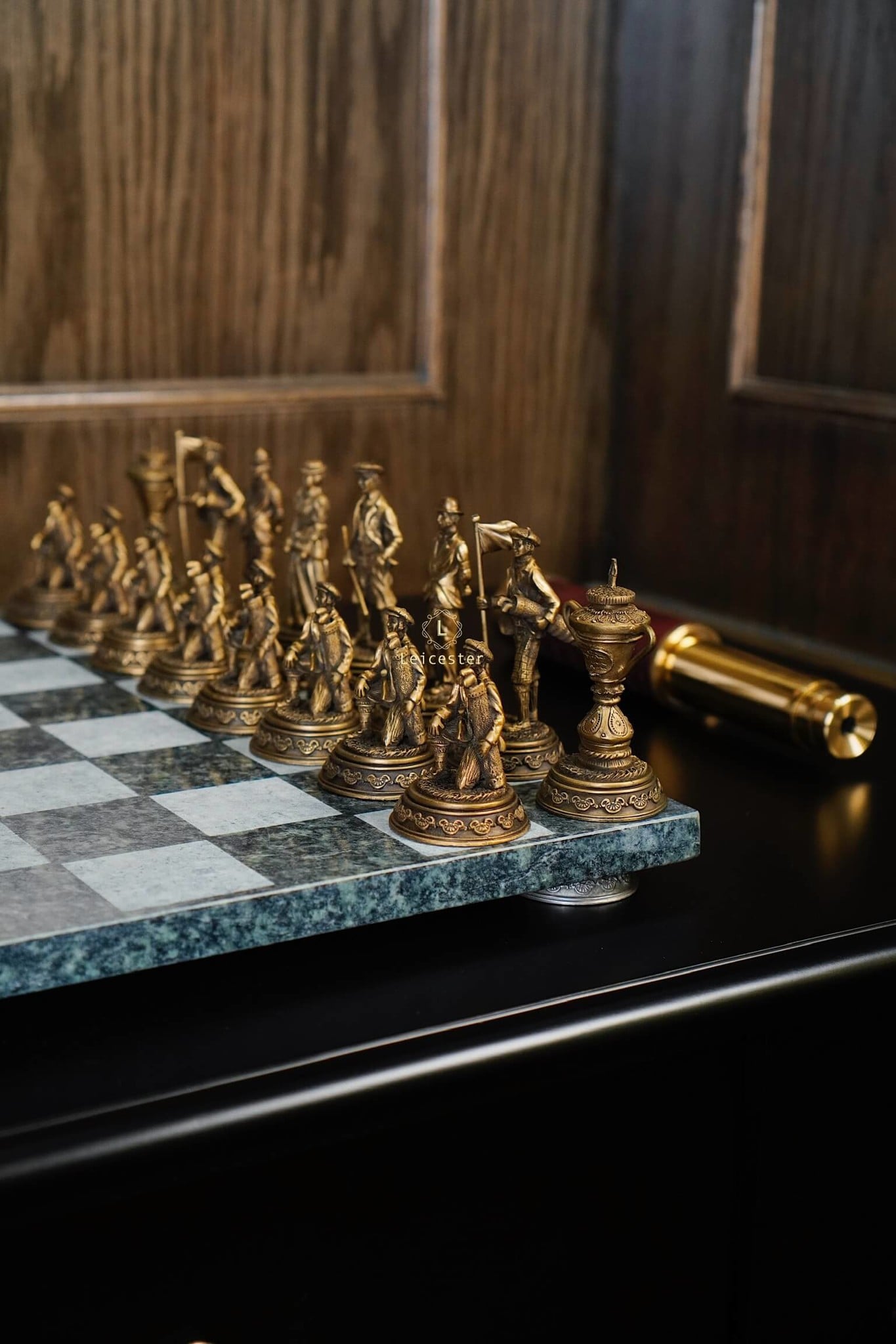 Bàn cờ: 35cm x 35cm x 2,5cm (chân đế bằng thiếc).