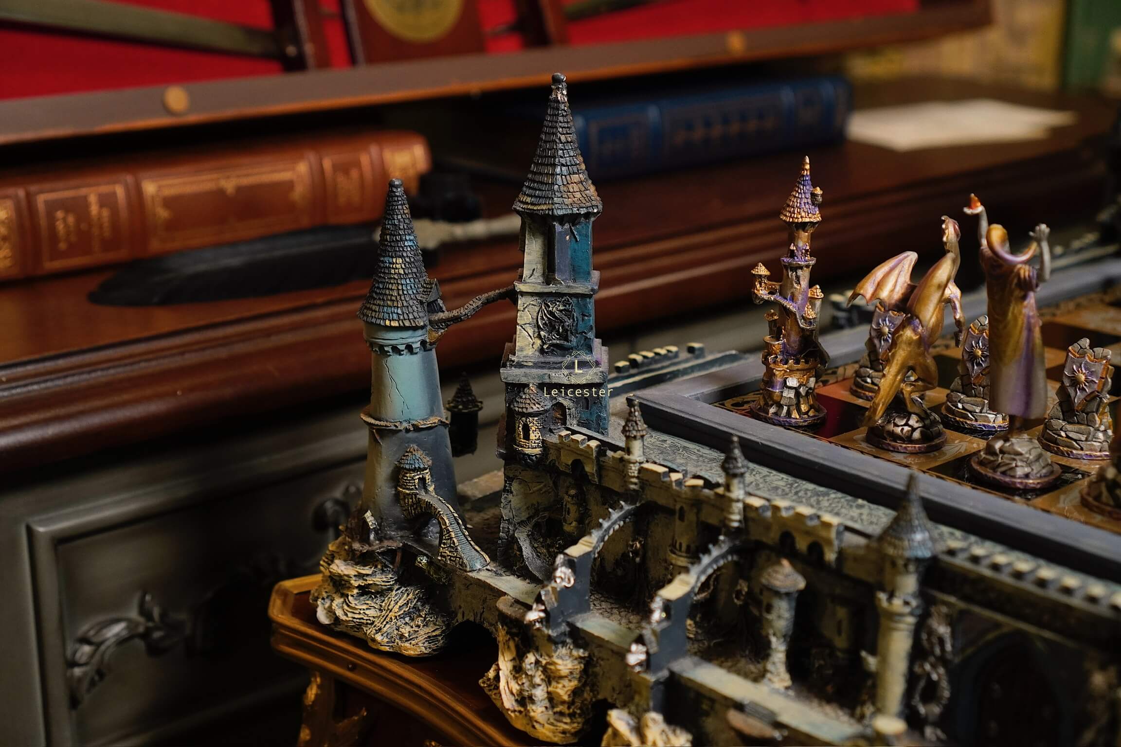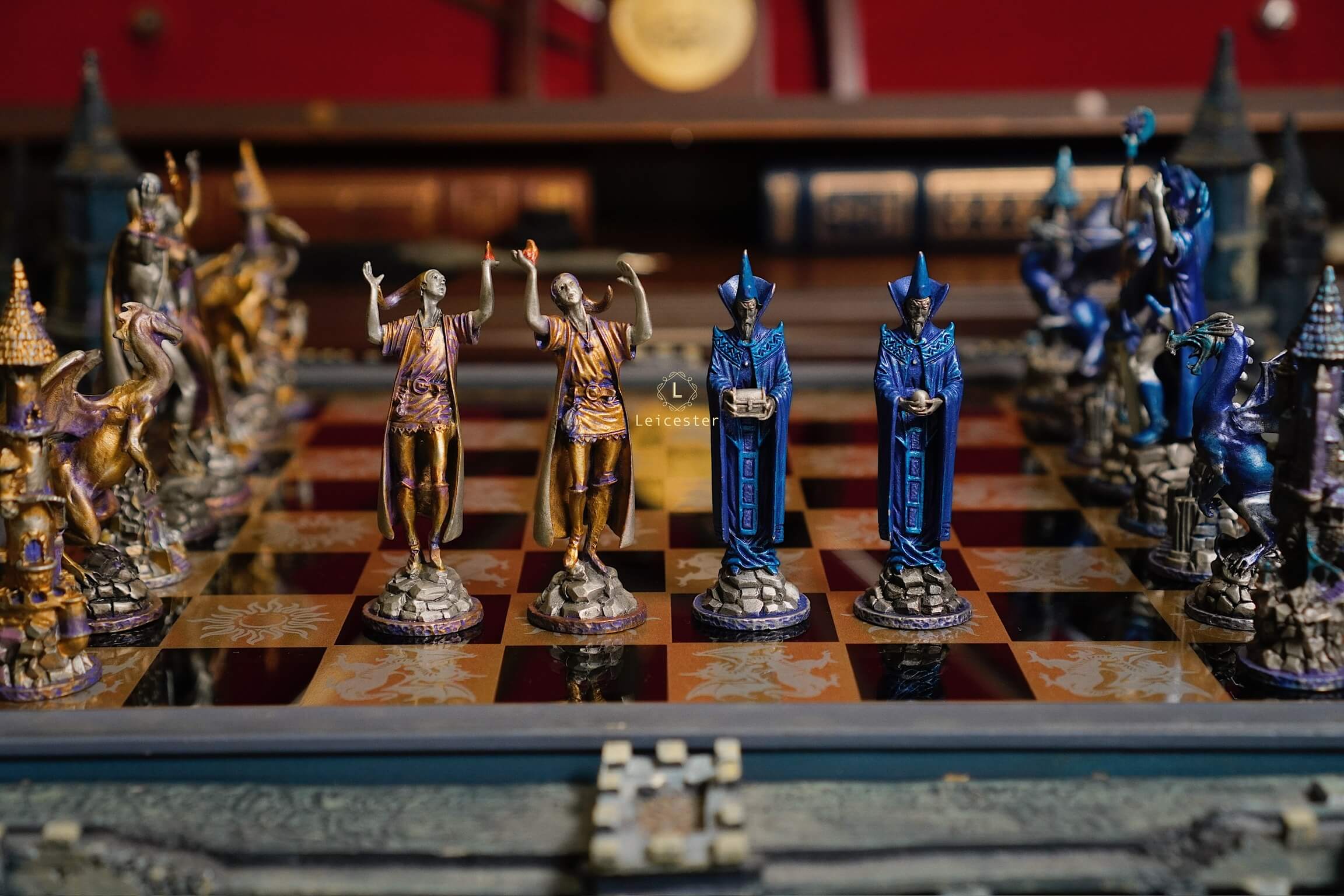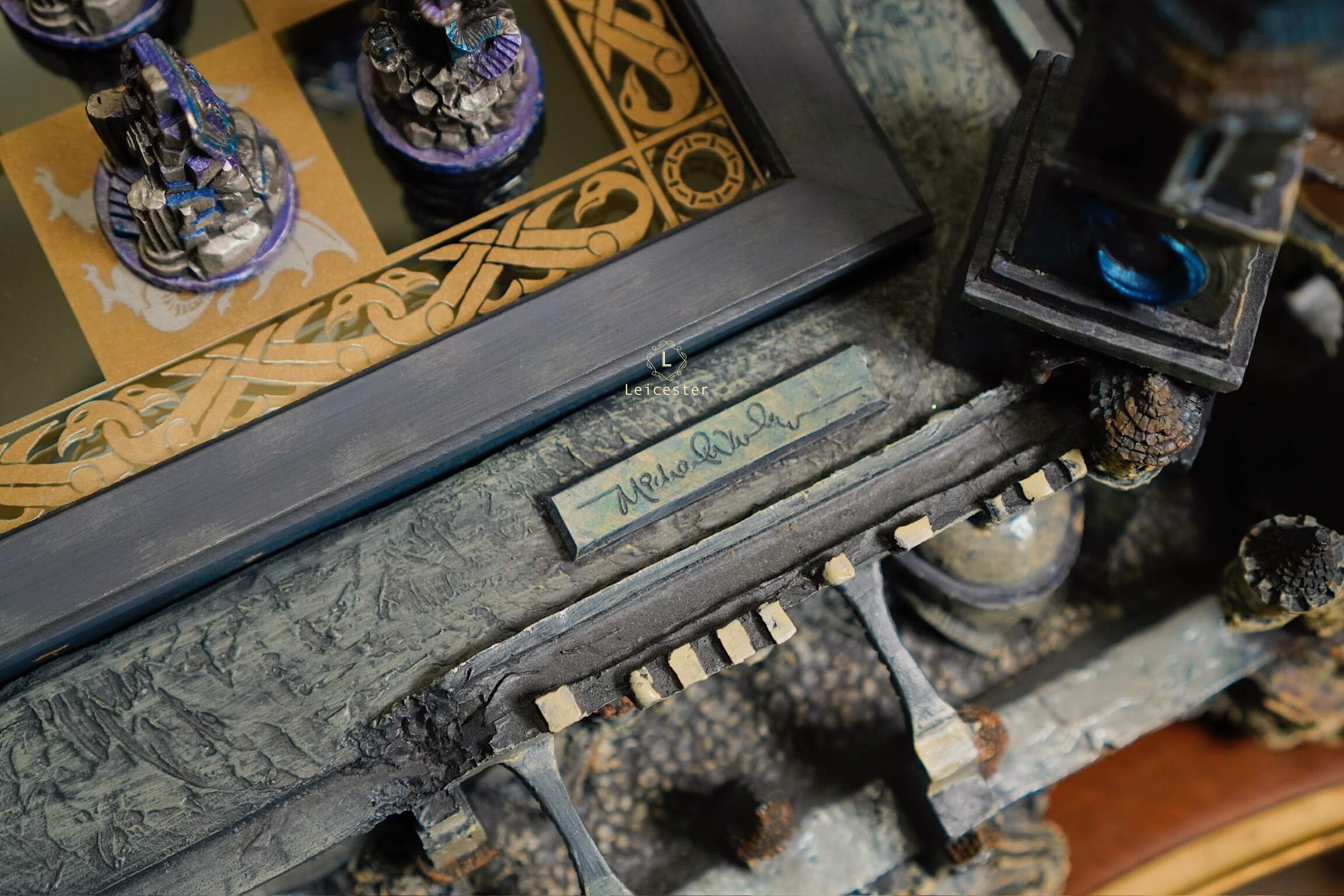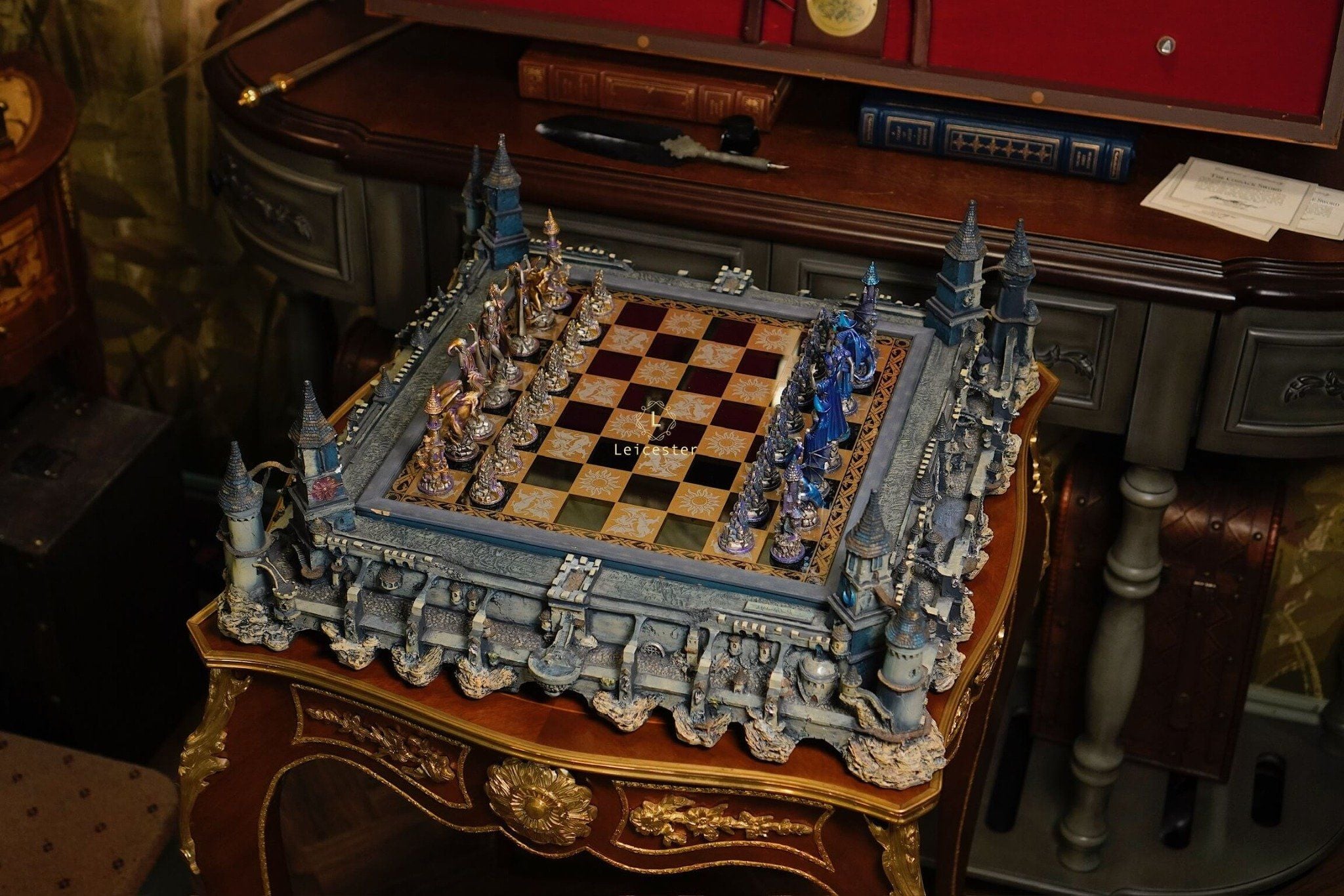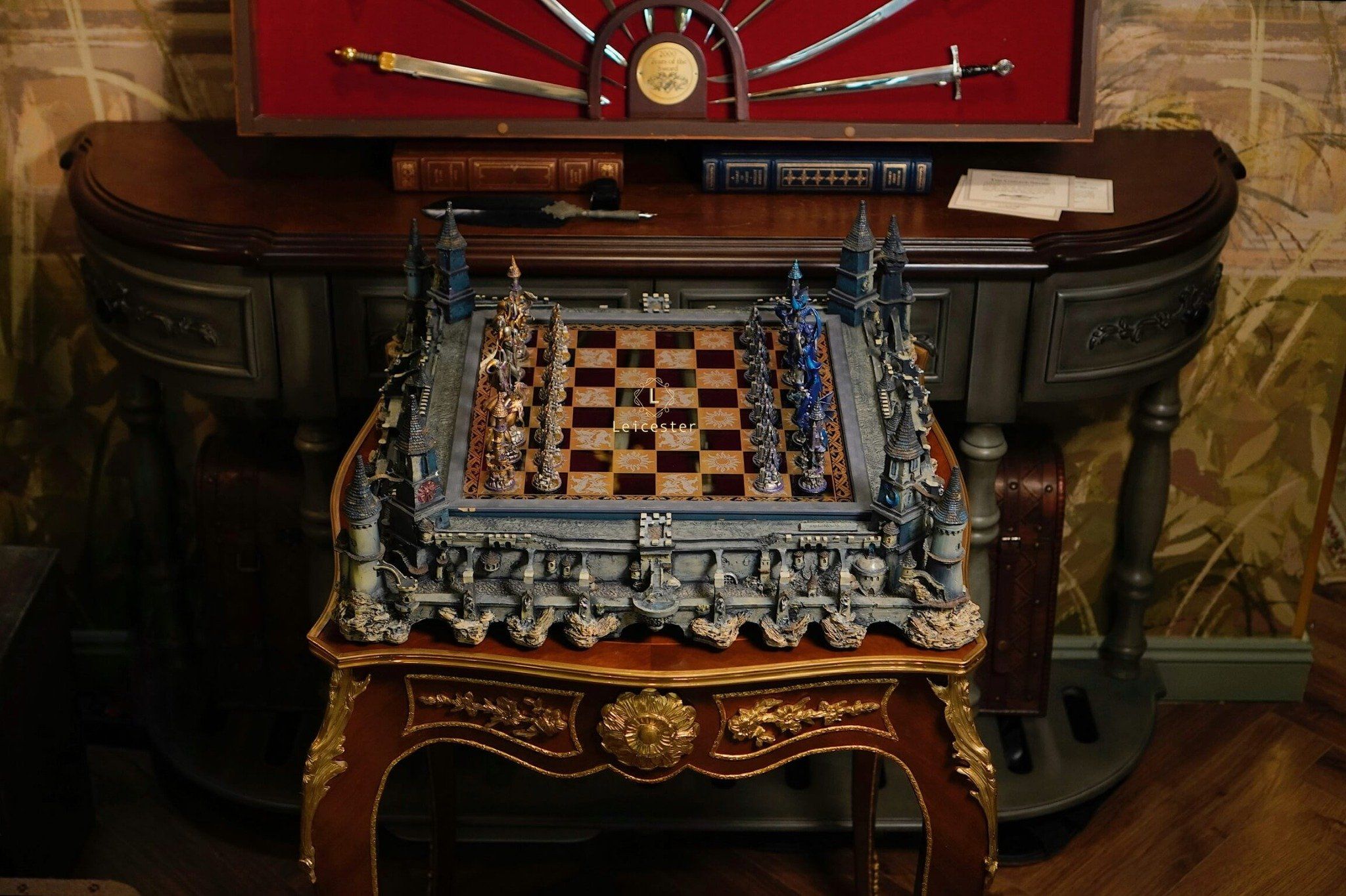 Là một kiệt tác nghệ thuật do Franklin Mint phát hành, được thiết kế bởi họa sĩ huyền thoại Michael Whelan – người nổi tiếng với phong cách fantasy đầy sức sống. Mỗi quân cờ được đúc tinh xảo từ hợp kim thiếc, phủ lớp màu ánh kim sang trọng, thể hiện hai thế lực đối nghịch là ánh sáng và bóng tối. Trên bàn cờ, những quân lính, pháp sư, hiệp sĩ và rồng huyền thoại như bước ra từ trang sử thần thoại, sẵn sàng bảo vệ pháo đài vĩ đại – nơi ánh sáng và quyền lực giao tranh trong vẻ uy nghi đầy mê hoặc.