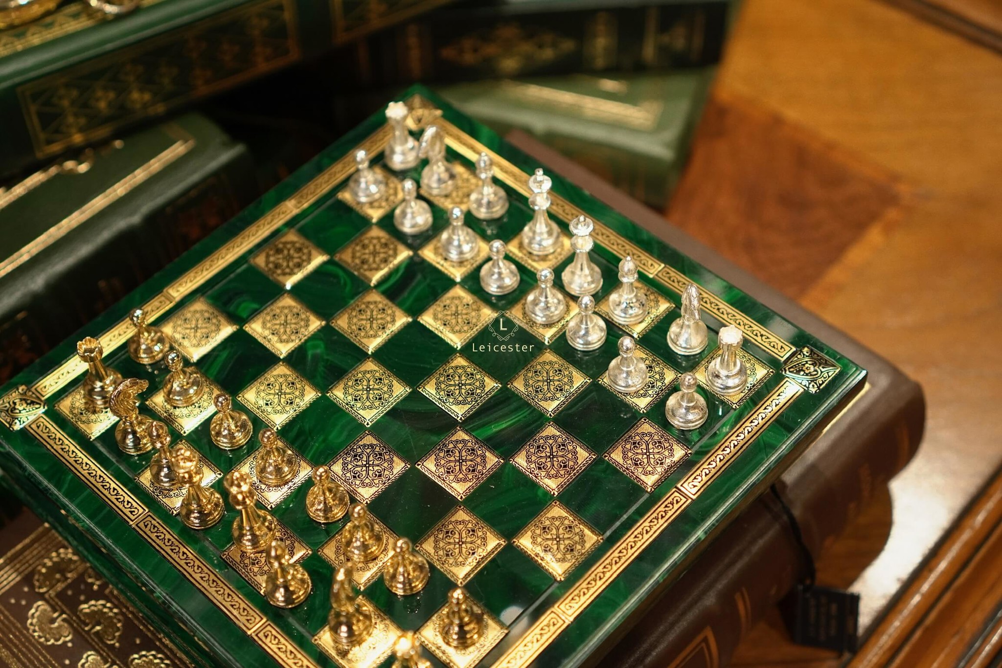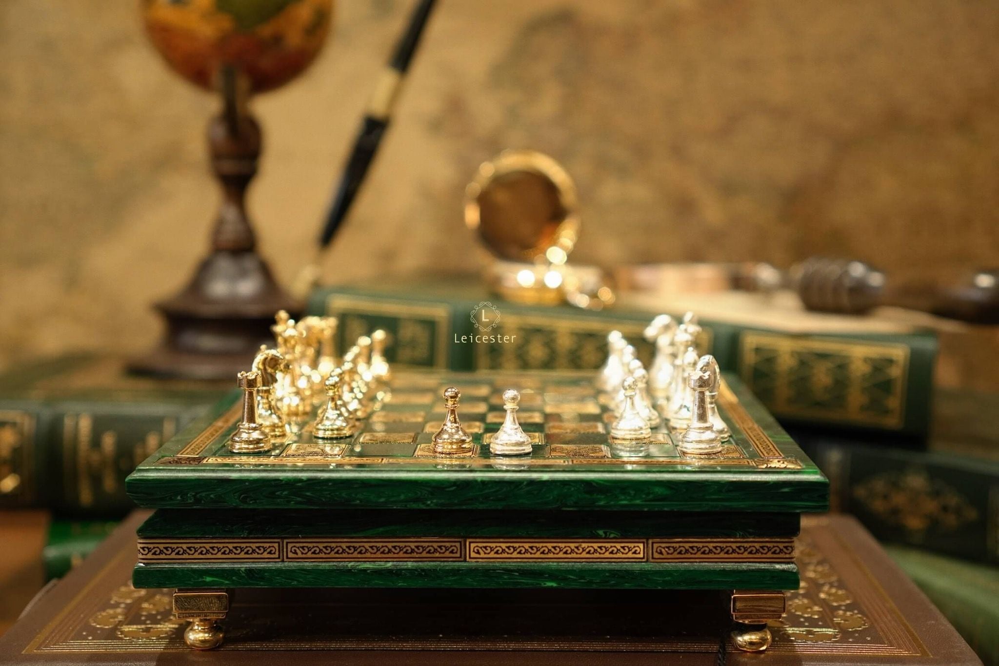 Quân cờ: kim loại mạ bạc, vàng 24k