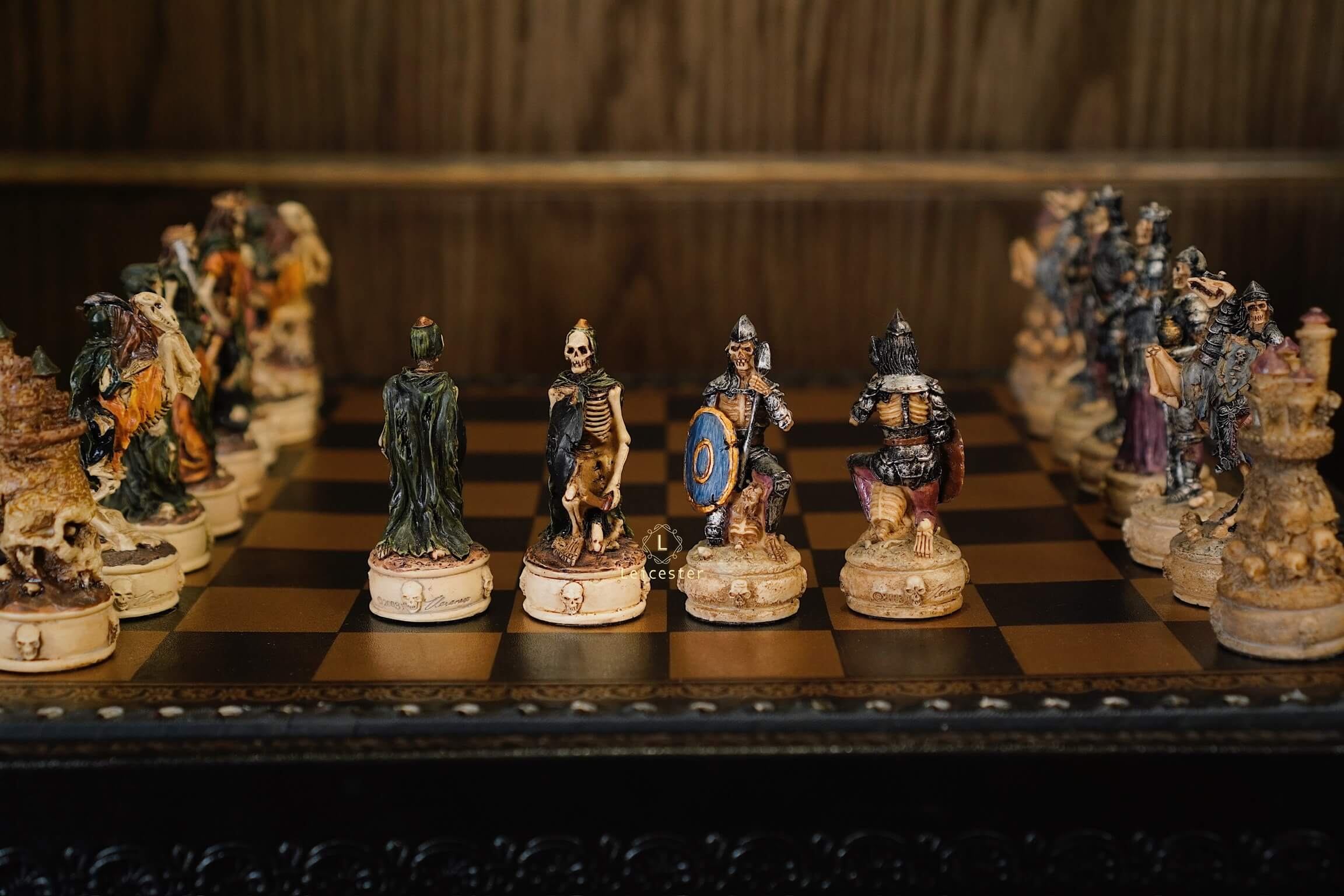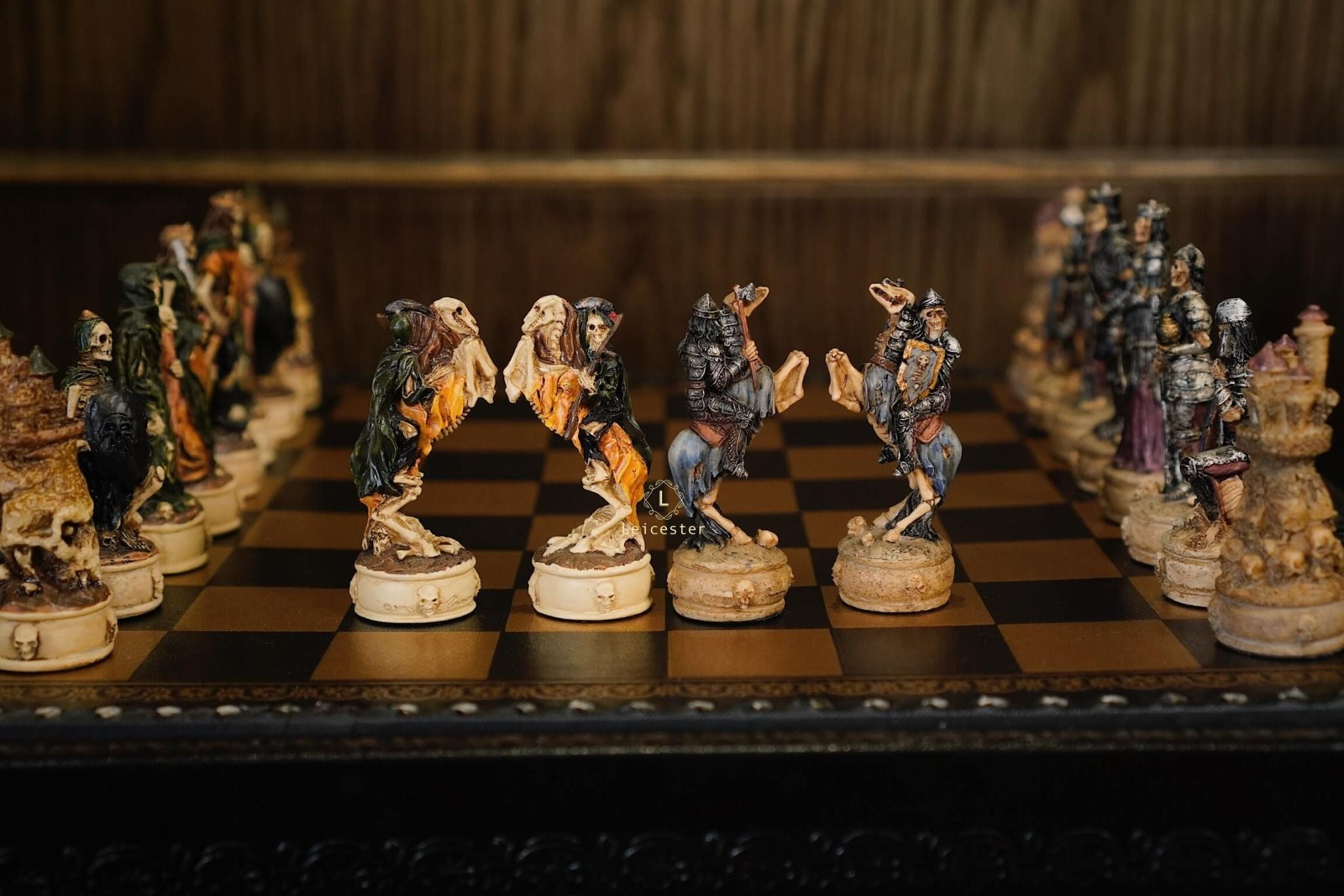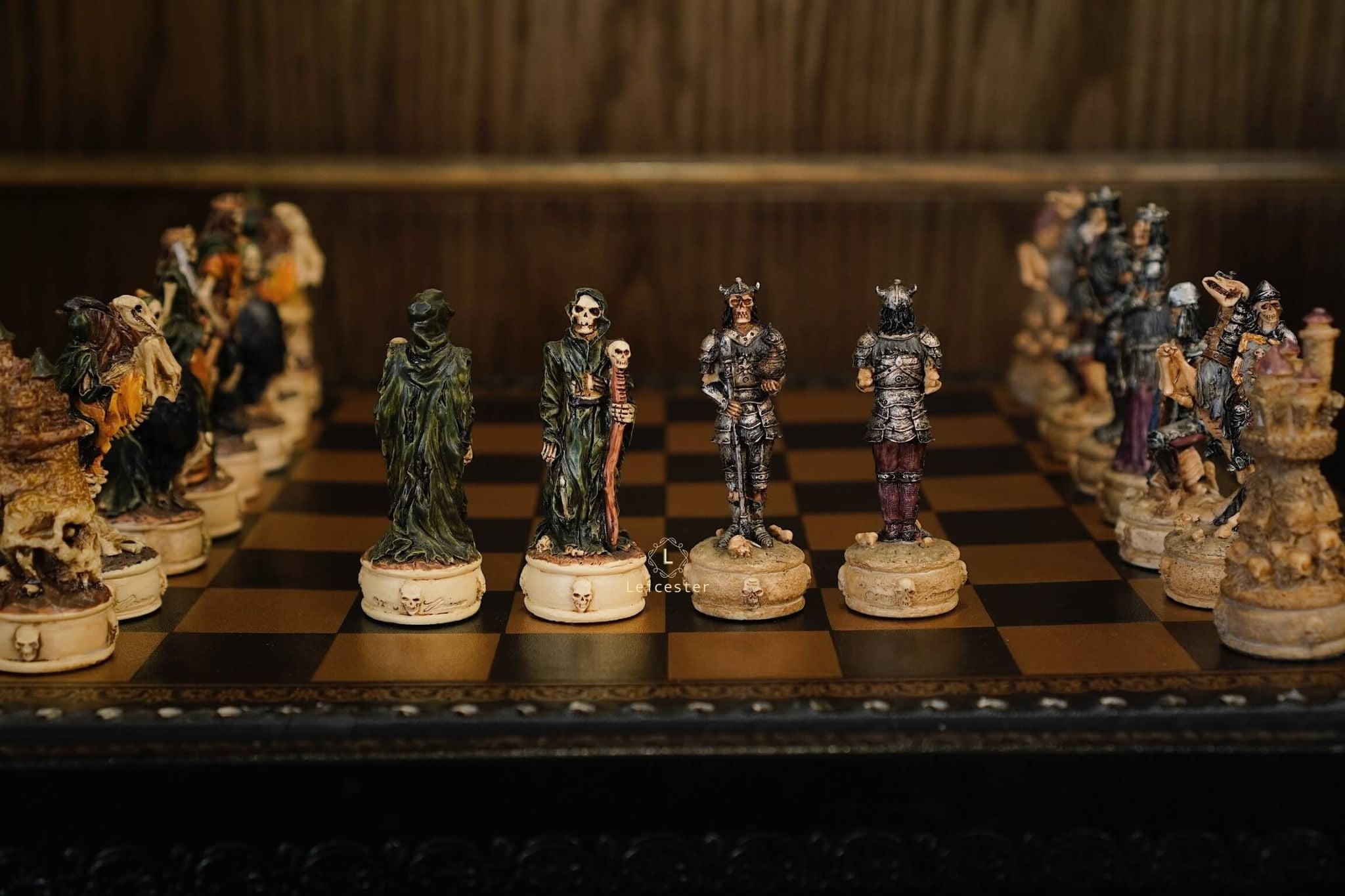 Skeleton Chess Set được sinh ra từ câu chuyện hậu tận thế với ý tưởng sáng tạo và độc đáo. Đây không chỉ là một trò chơi, mà còn là một thế giới thu nhỏ, nơi những người chơi đối đầu không chỉ bằng chiến lược mà còn bằng trí tưởng tượng. Bộ cờ như một lời mời gọi bước vào một vũ trụ đen tối, nơi những xác sống tranh giành quyền lực trong một vũ điệu ma quái mang hình hài của trận chiến cổ điển.