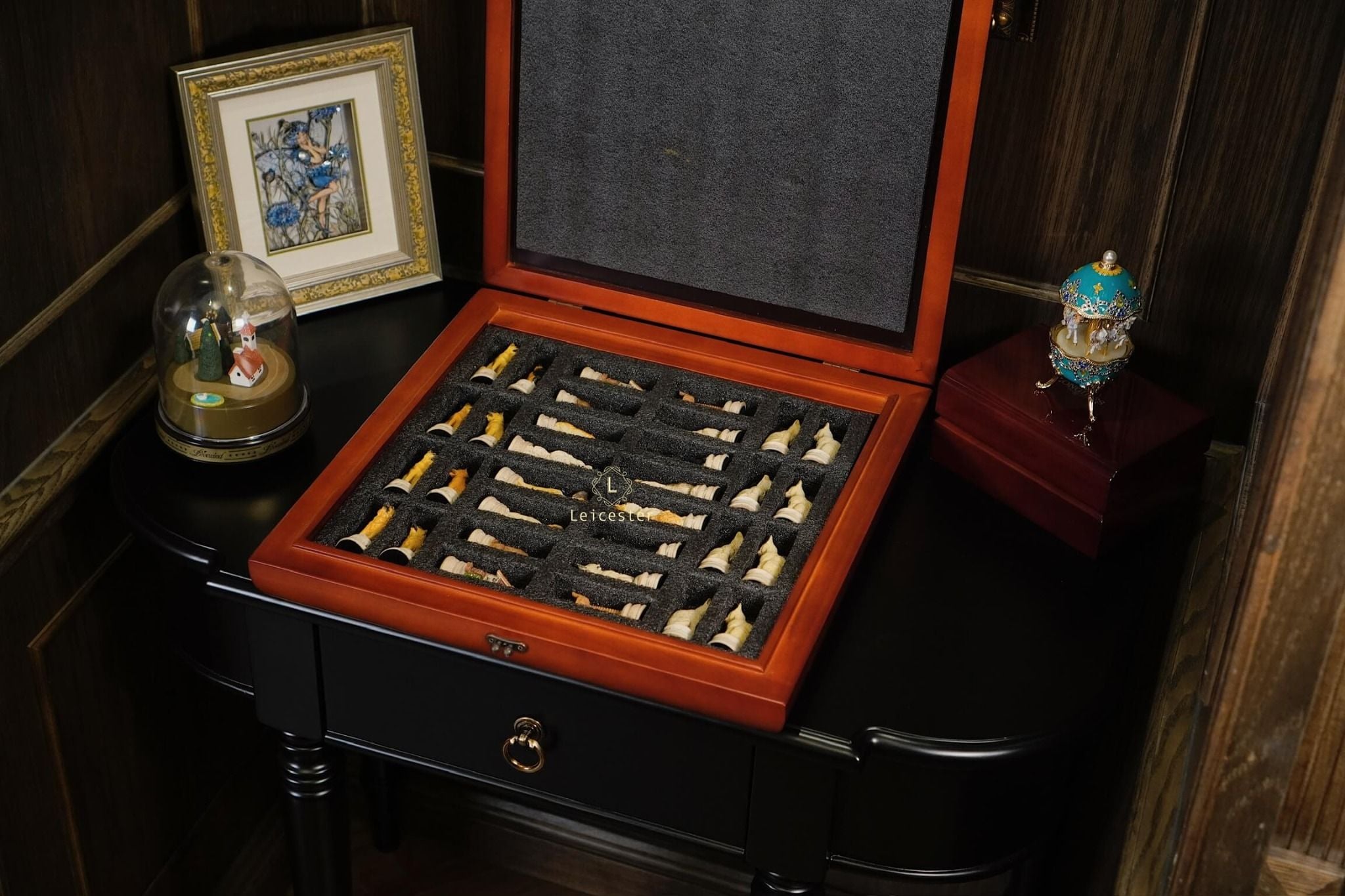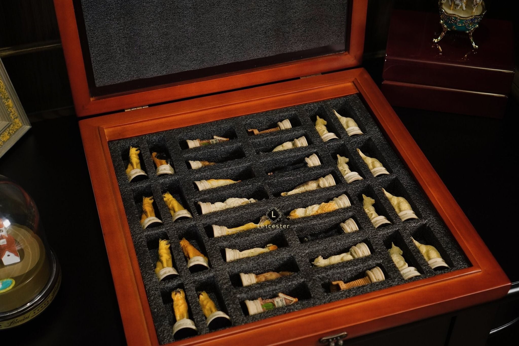 Được làm thủ công sơn tay tỉ mỉ từng quân cờ.