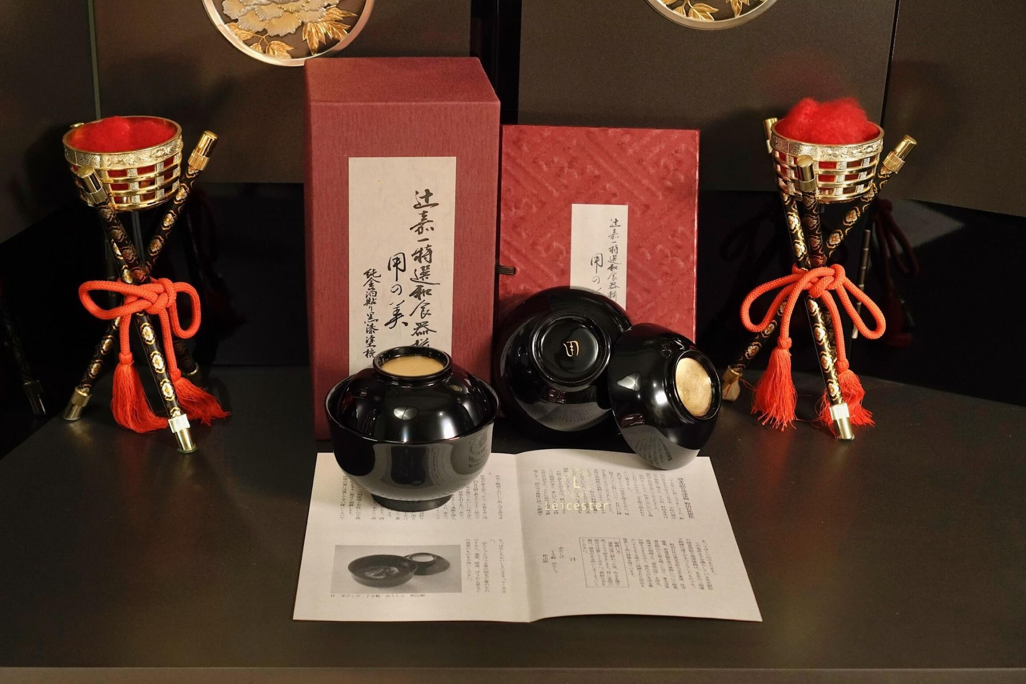 - Set chén sơn mài đen dát vàng (Gyusaku Noda)
