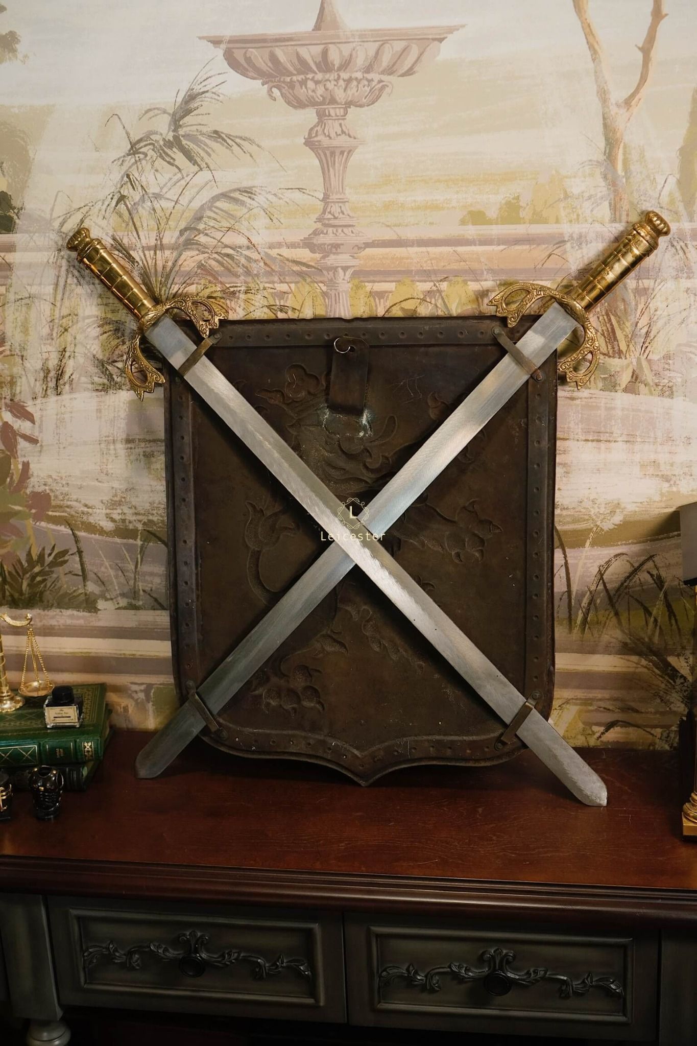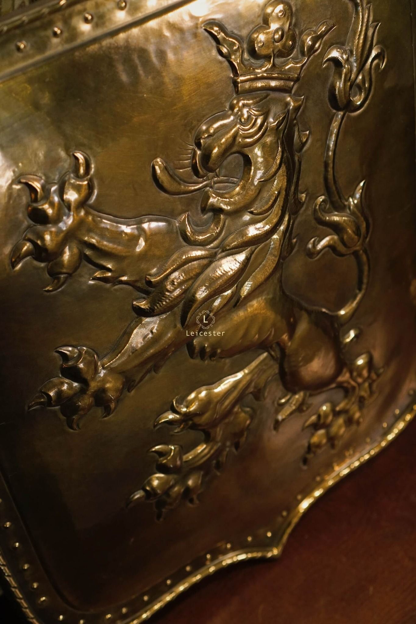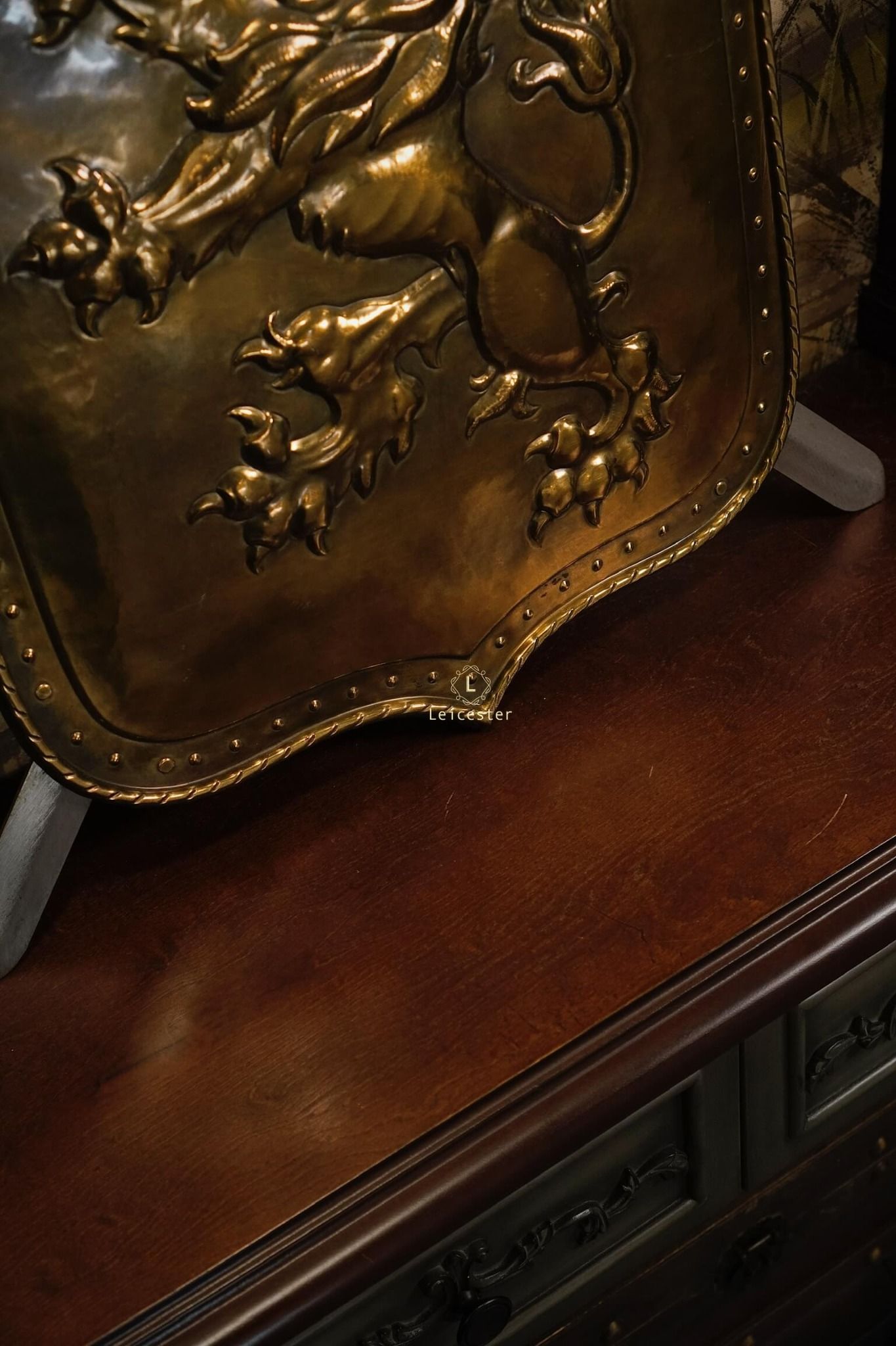 Bộ khiên này tượng trưng cho lòng dũng cảm và quyền lực, lấy cảm hứng từ huy hiệu Hoàng gia Scotland. Tấm khiên bằng đồng được chạm nổi hình sư tử đứng (Lion Rampant) – biểu tượng gắn liền với Hoàng tộc Scotland từ thế kỷ 12. Với thiết kế cổ điển, bộ khiên không chỉ mang giá trị lịch sử mà còn là món đồ trang trí ấn tượng cho những ai yêu thích phong cách Trung Cổ.