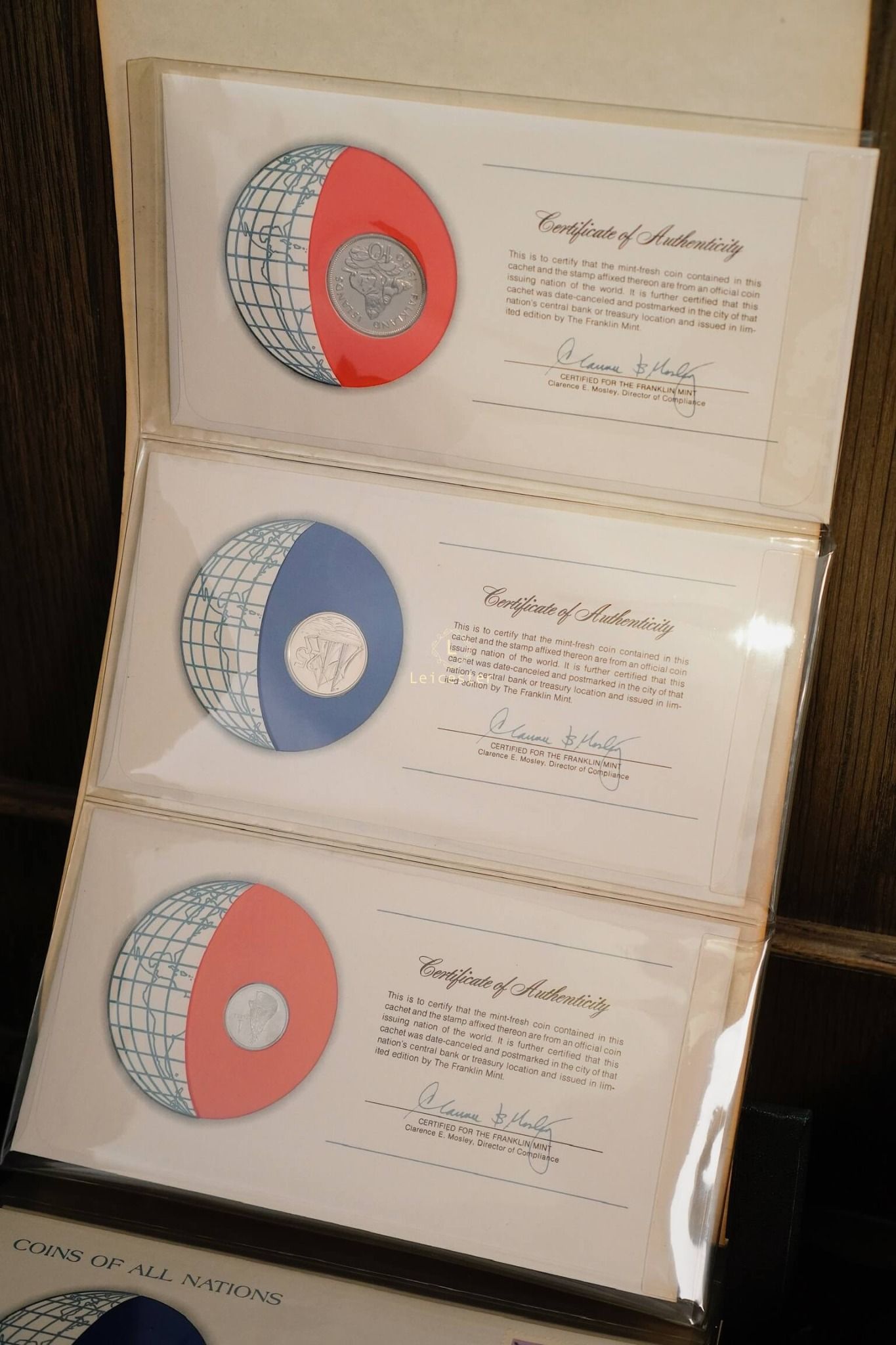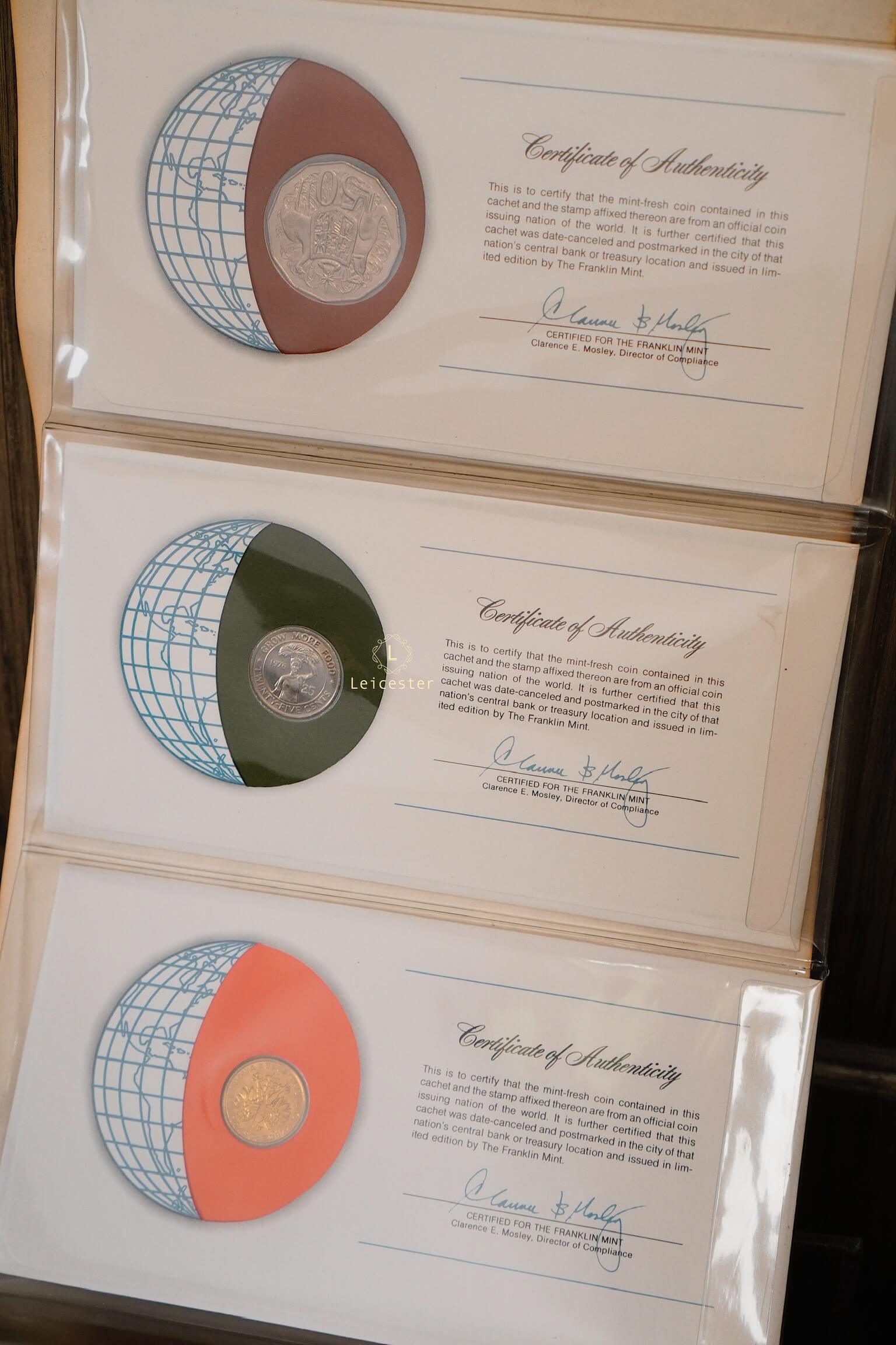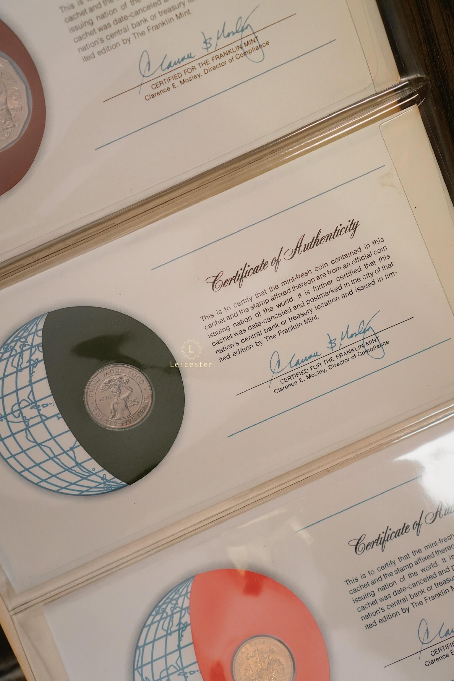 Bộ sưu tập tiền xu và tem được nhà phát hành Franklin Mint thiết kế như một cuốn sách với trang bìa được bọc da khắc chữ bạc. Mỗi đồng xu được niêm phong trong một tệp bảo vệ, đựng trong một phong bì có đầy đủ tem và dấu mộc cùng với thông tin tương ứng với đồng xu của Quốc gia đó. Điều này giúp cho giới sưu tầm không những sưu tập được những tờ tiền quý hiếm, mà còn có thêm sự am hiểu sâu sắc về giá trị của mỗi đồng tiền và cả đất nước đã tạo ra nó.