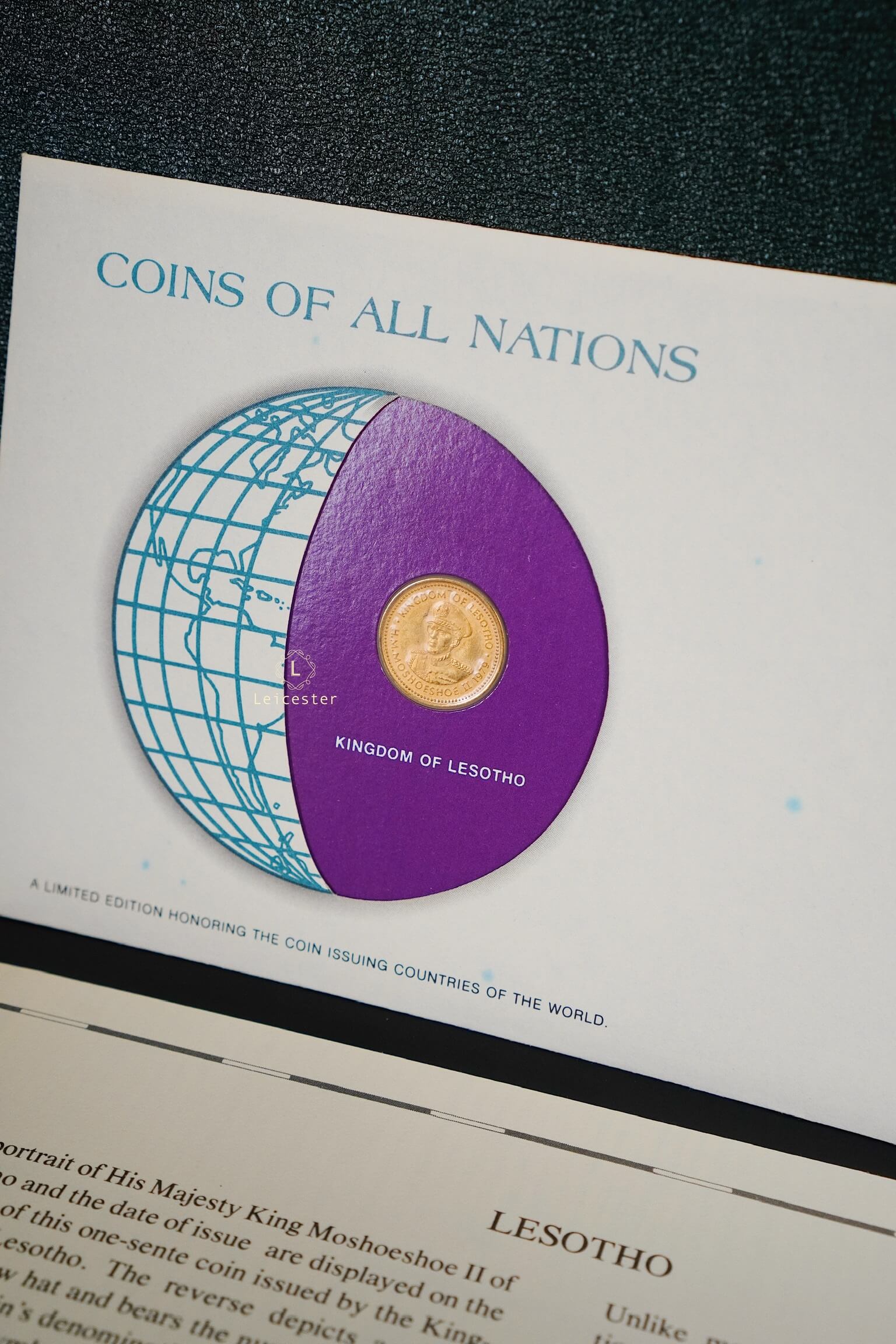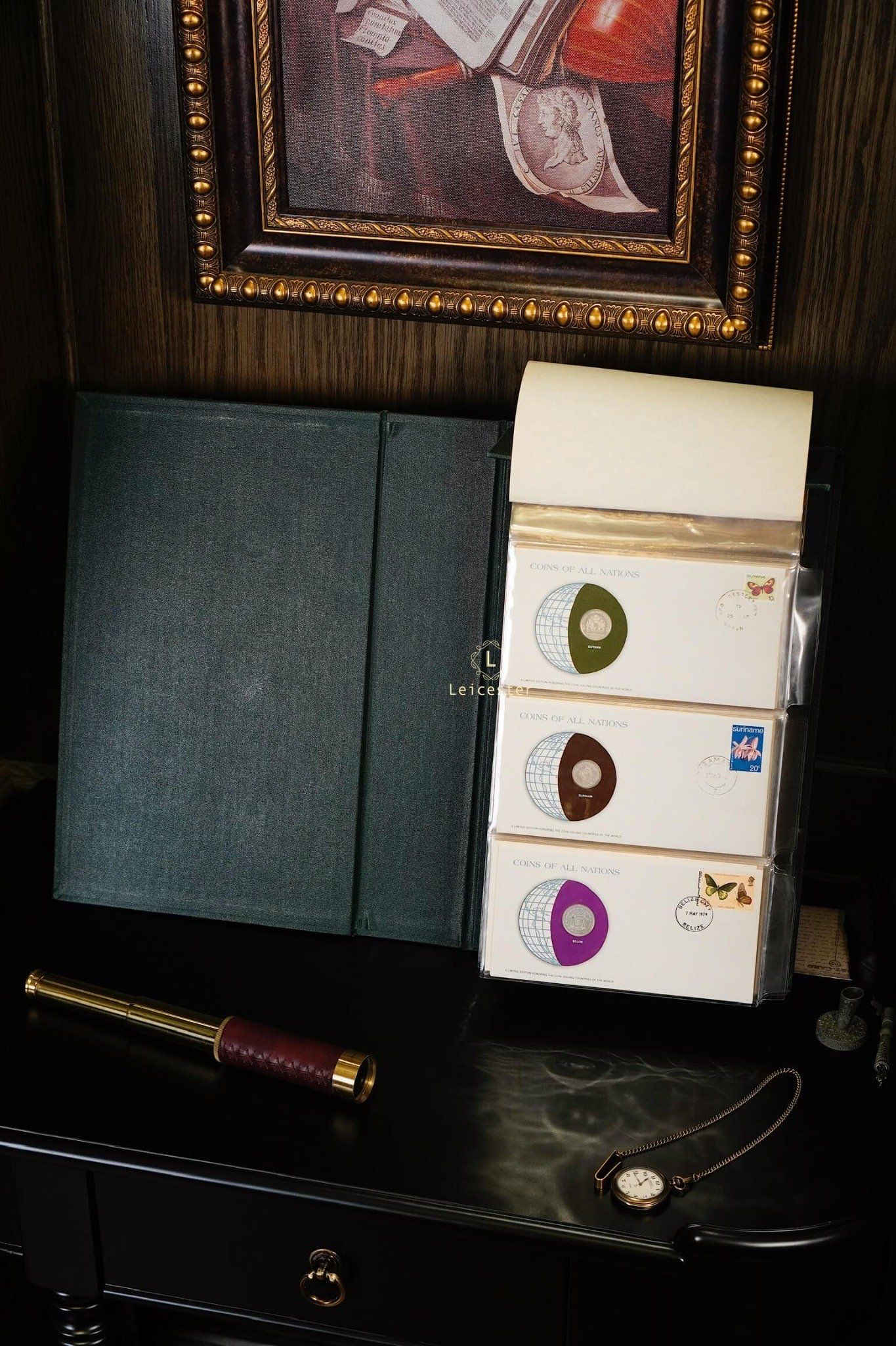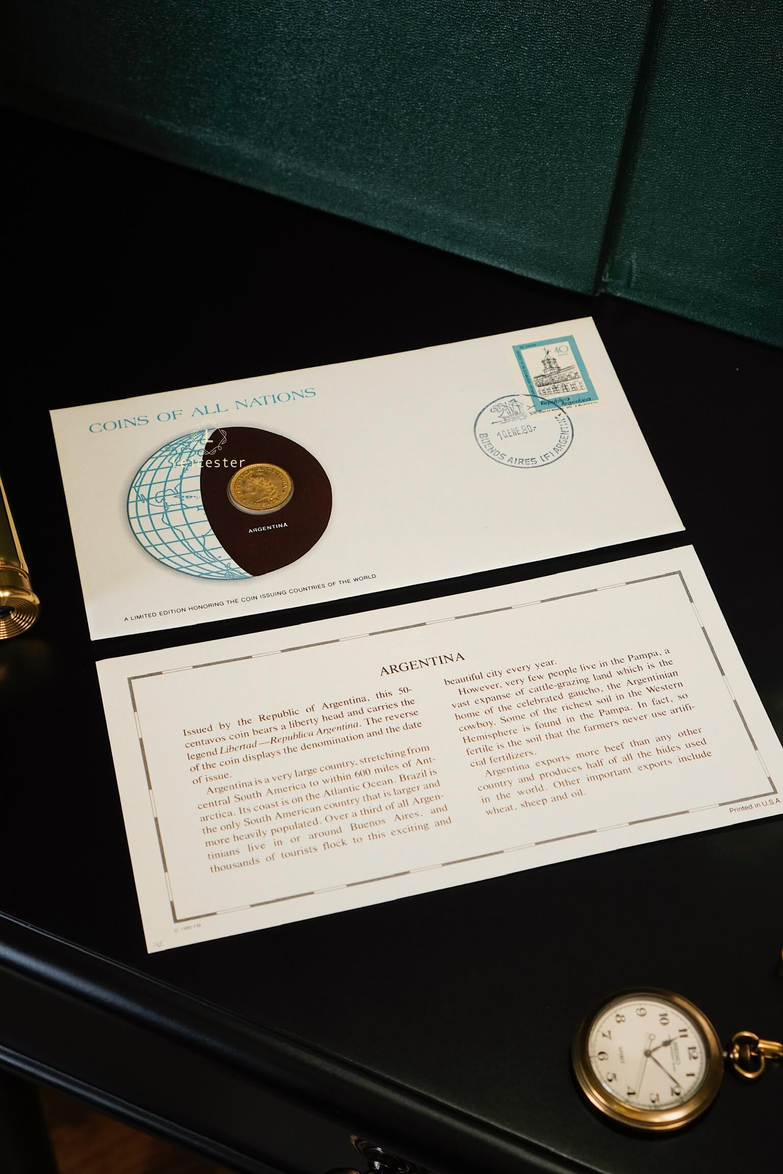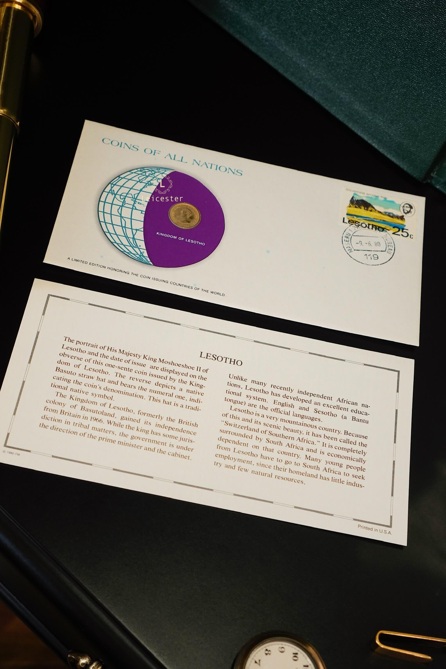 Bộ sưu tập Coins & Stamps Of All Nations được Franklin Mint thiết kế như một cuốn sách sang trọng với bìa da khắc chữ bạc tinh xảo. Bên trong, mỗi đồng xu được bảo quản trong túi bảo vệ riêng, đặt trong phong bì có đầy đủ tem, dấu mộc và thông tin chi tiết về quốc gia phát hành. Điều này không chỉ mang đến cho người sưu tầm những hiện vật giá trị, mà còn mở ra hành trình khám phá bề dày lịch sử, văn hóa và bản sắc của từng đất nước qua đồng tiền đại diện.