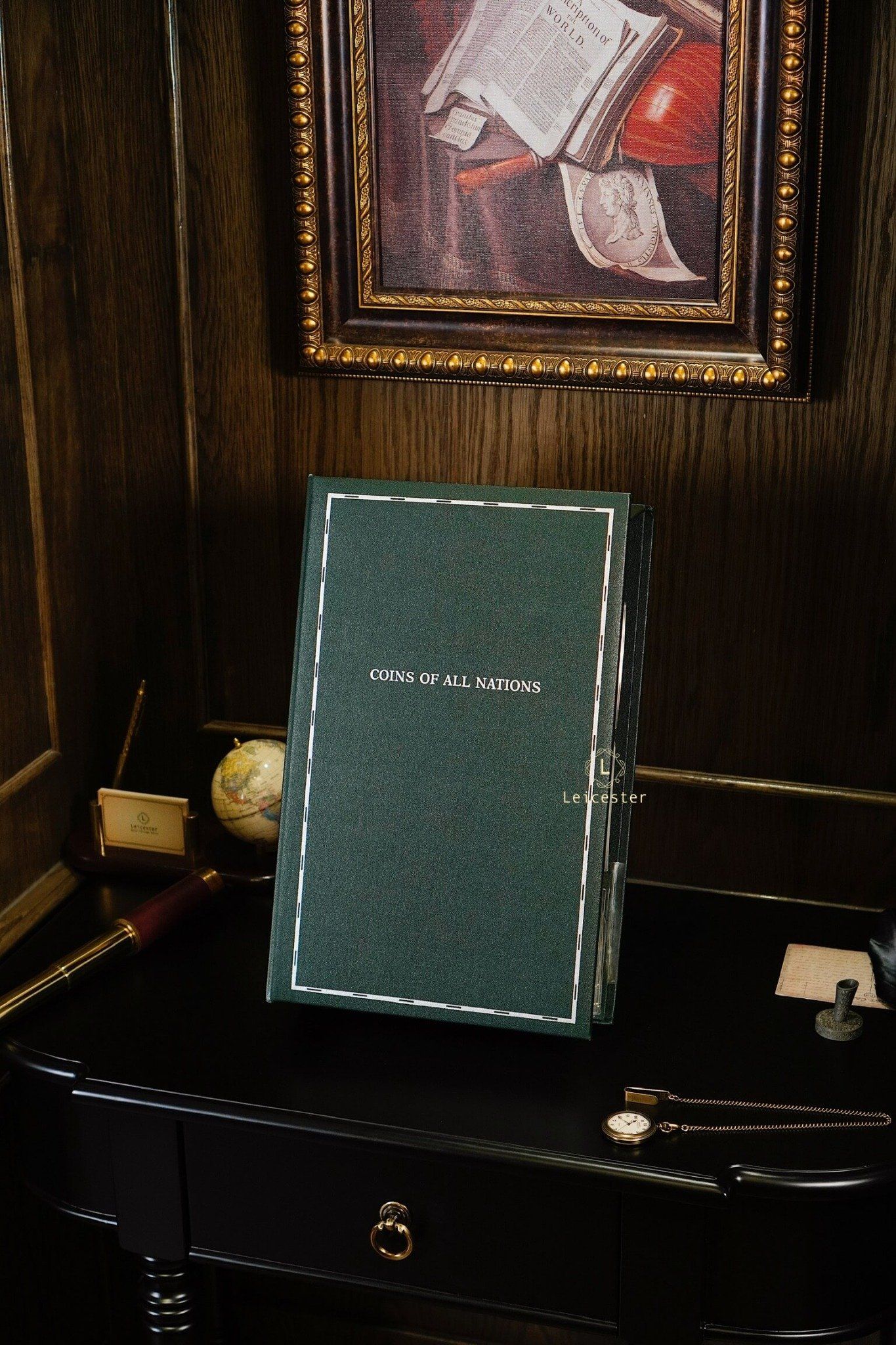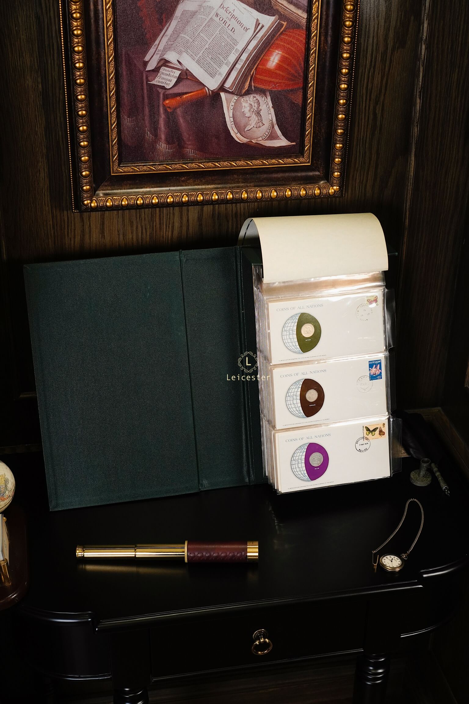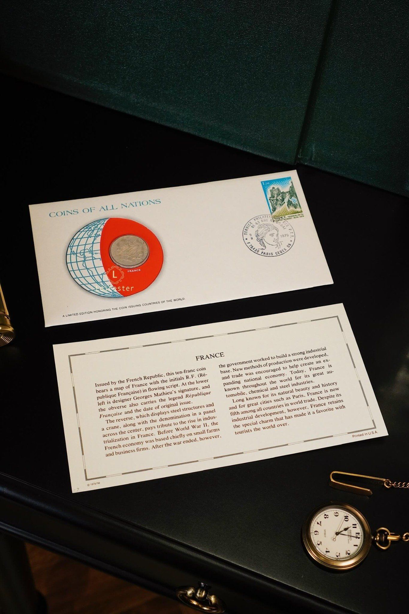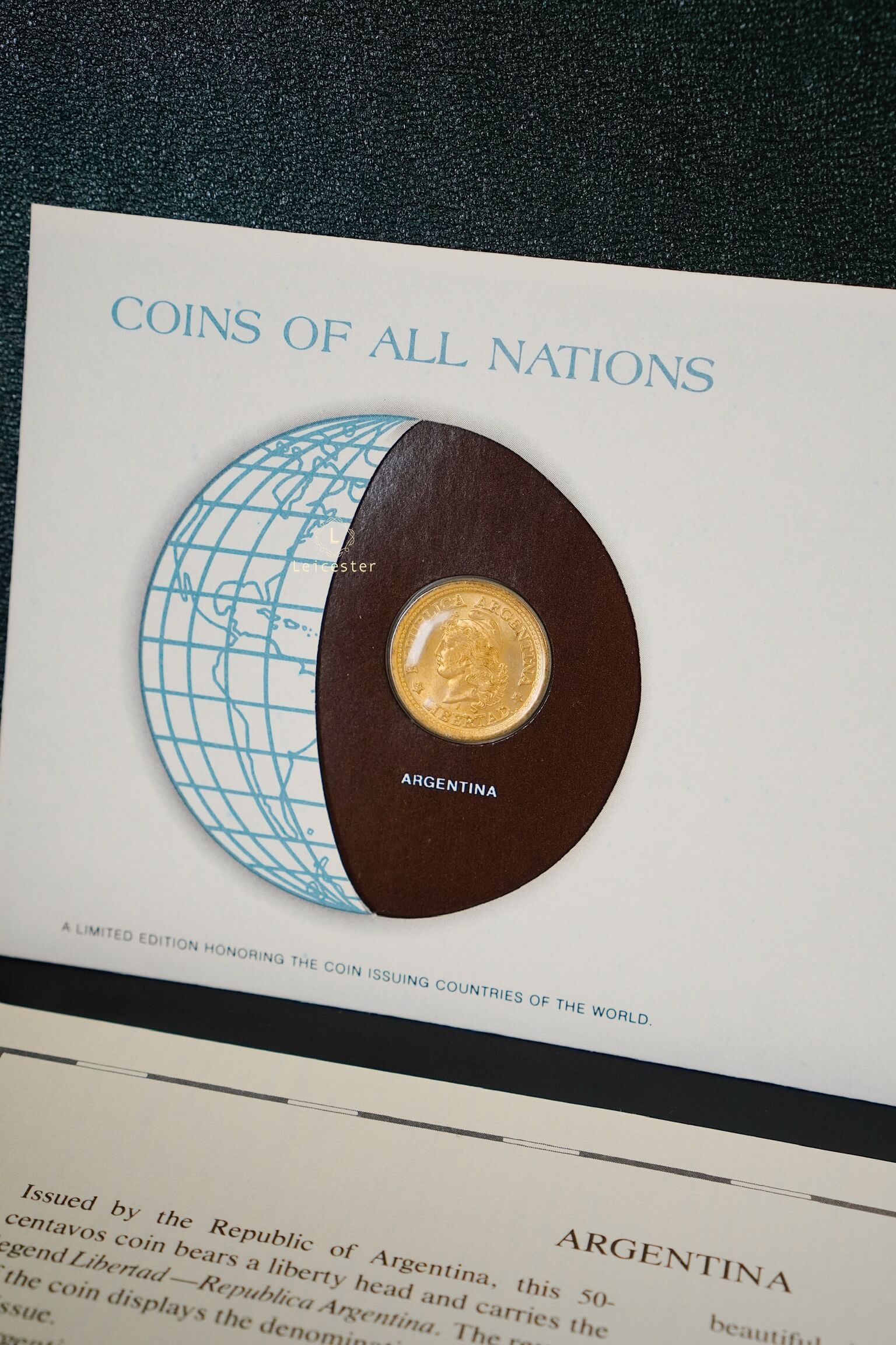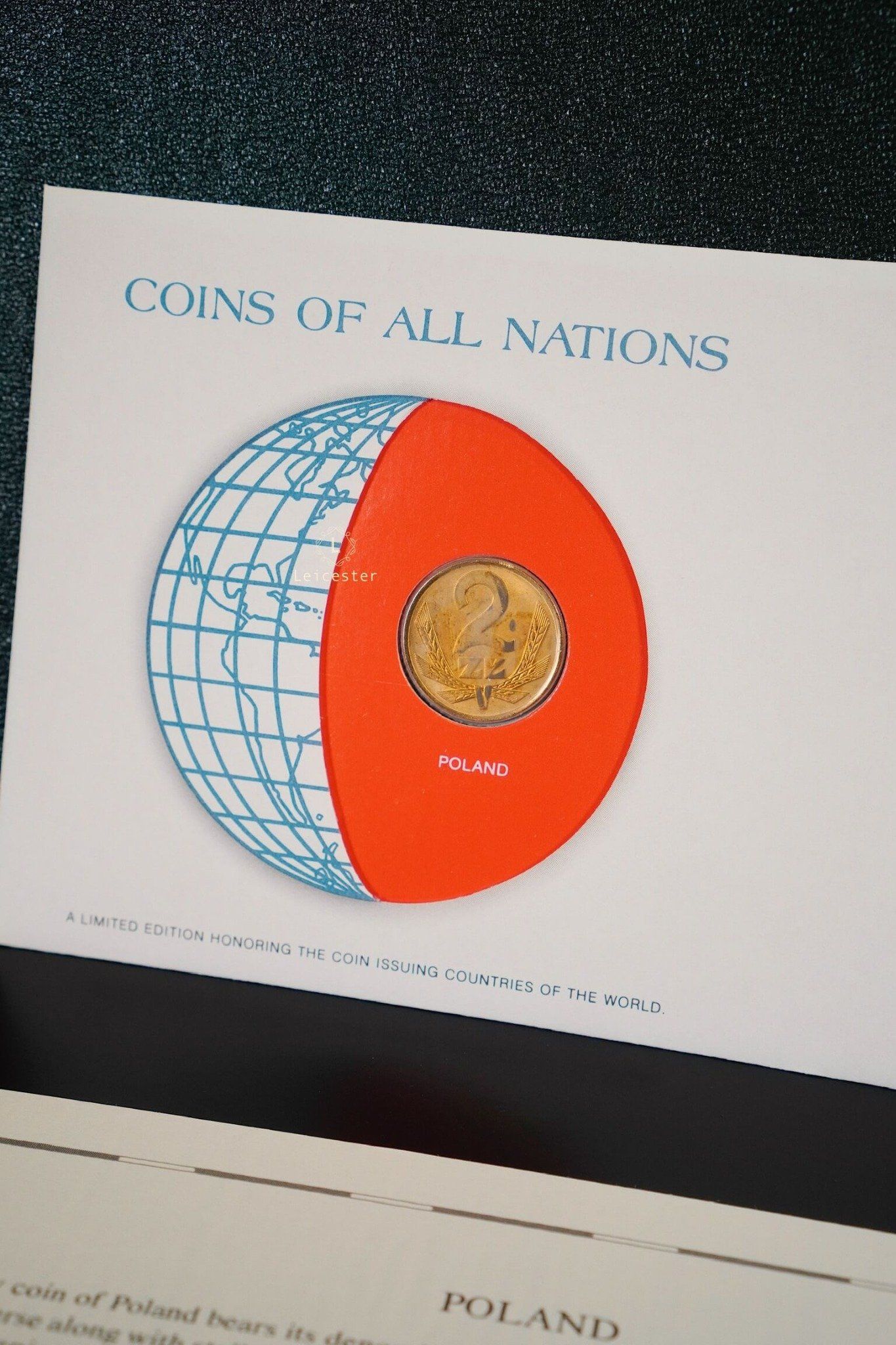 Bộ sưu tập Coins & Stamps Of All Nations được Franklin Mint thiết kế như một cuốn sách sang trọng với bìa da khắc chữ bạc tinh xảo. Bên trong, mỗi đồng xu được bảo quản trong túi bảo vệ riêng, đặt trong phong bì có đầy đủ tem, dấu mộc và thông tin chi tiết về quốc gia phát hành. Điều này không chỉ mang đến cho người sưu tầm những hiện vật giá trị, mà còn mở ra hành trình khám phá bề dày lịch sử, văn hóa và bản sắc của từng đất nước qua đồng tiền đại diện.