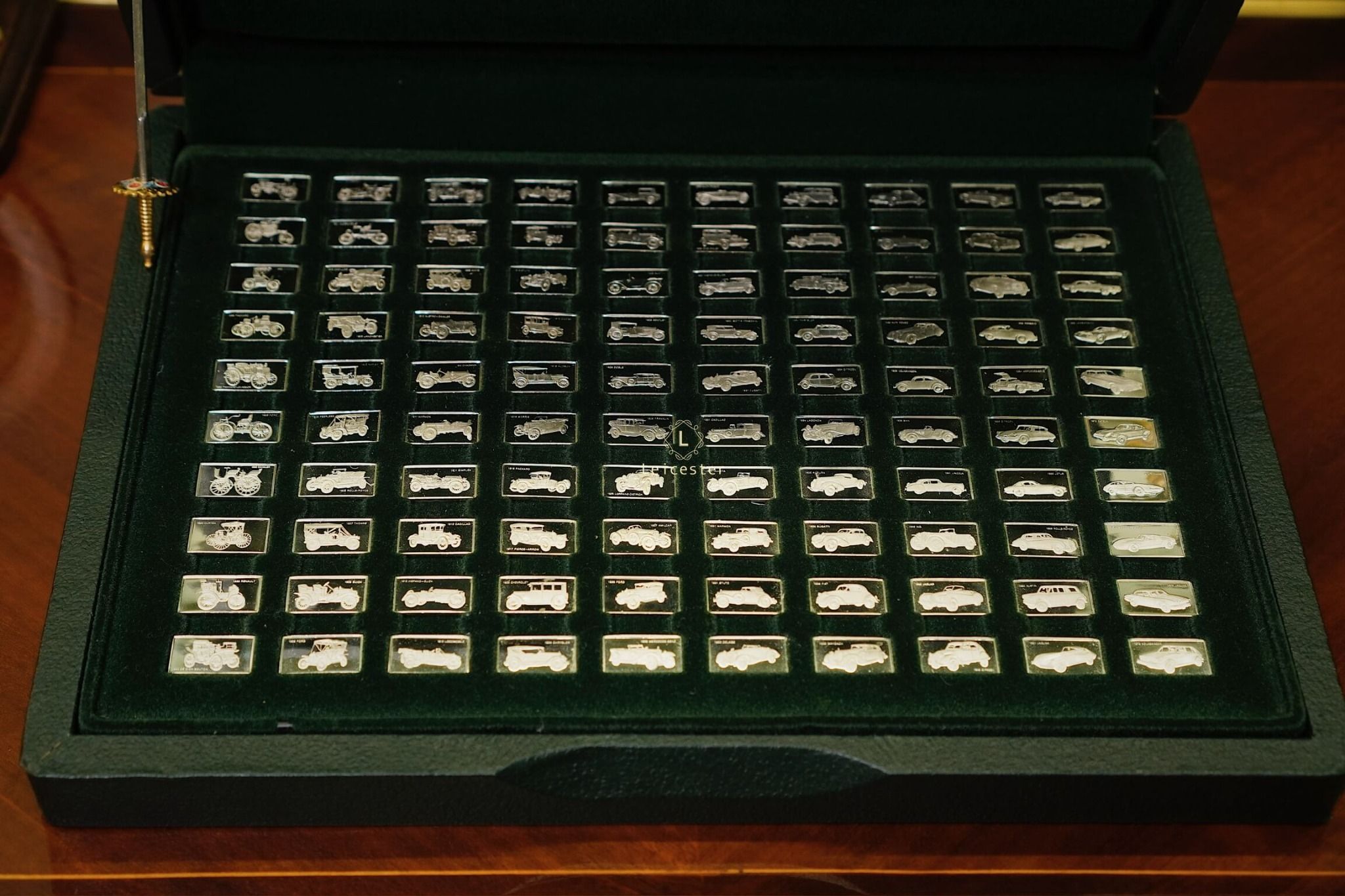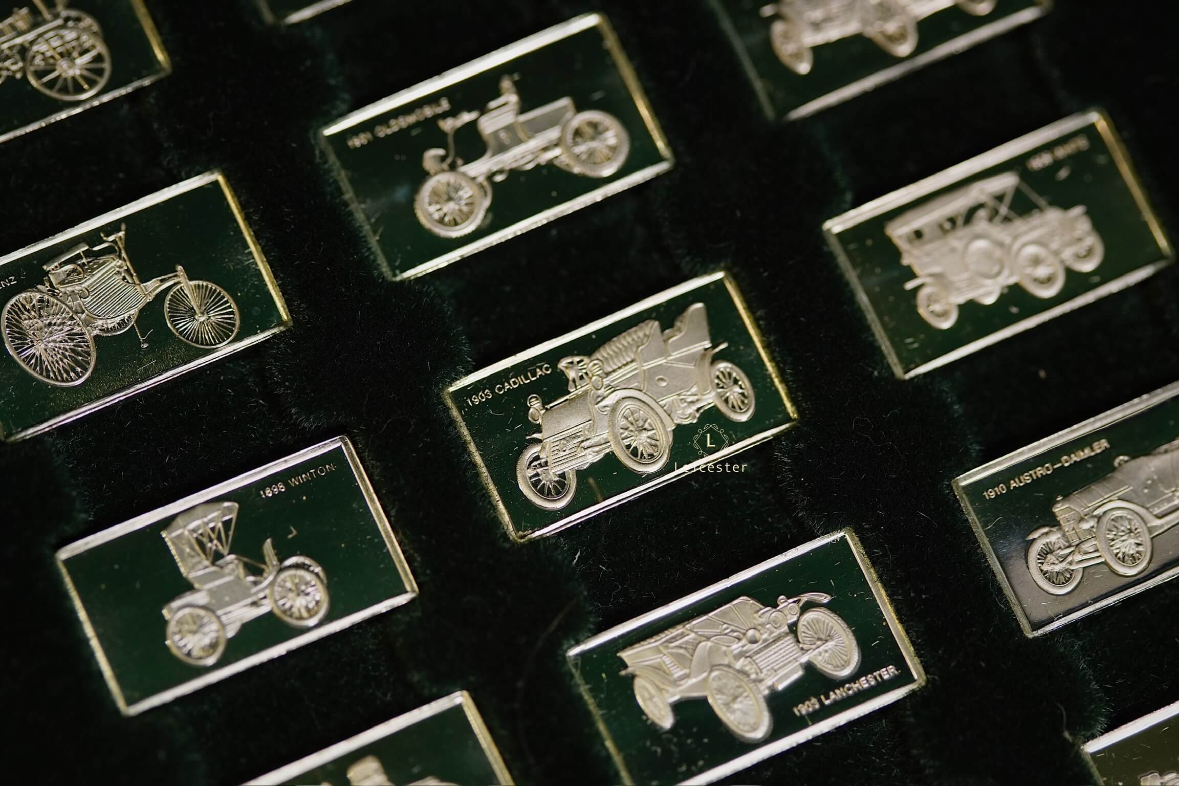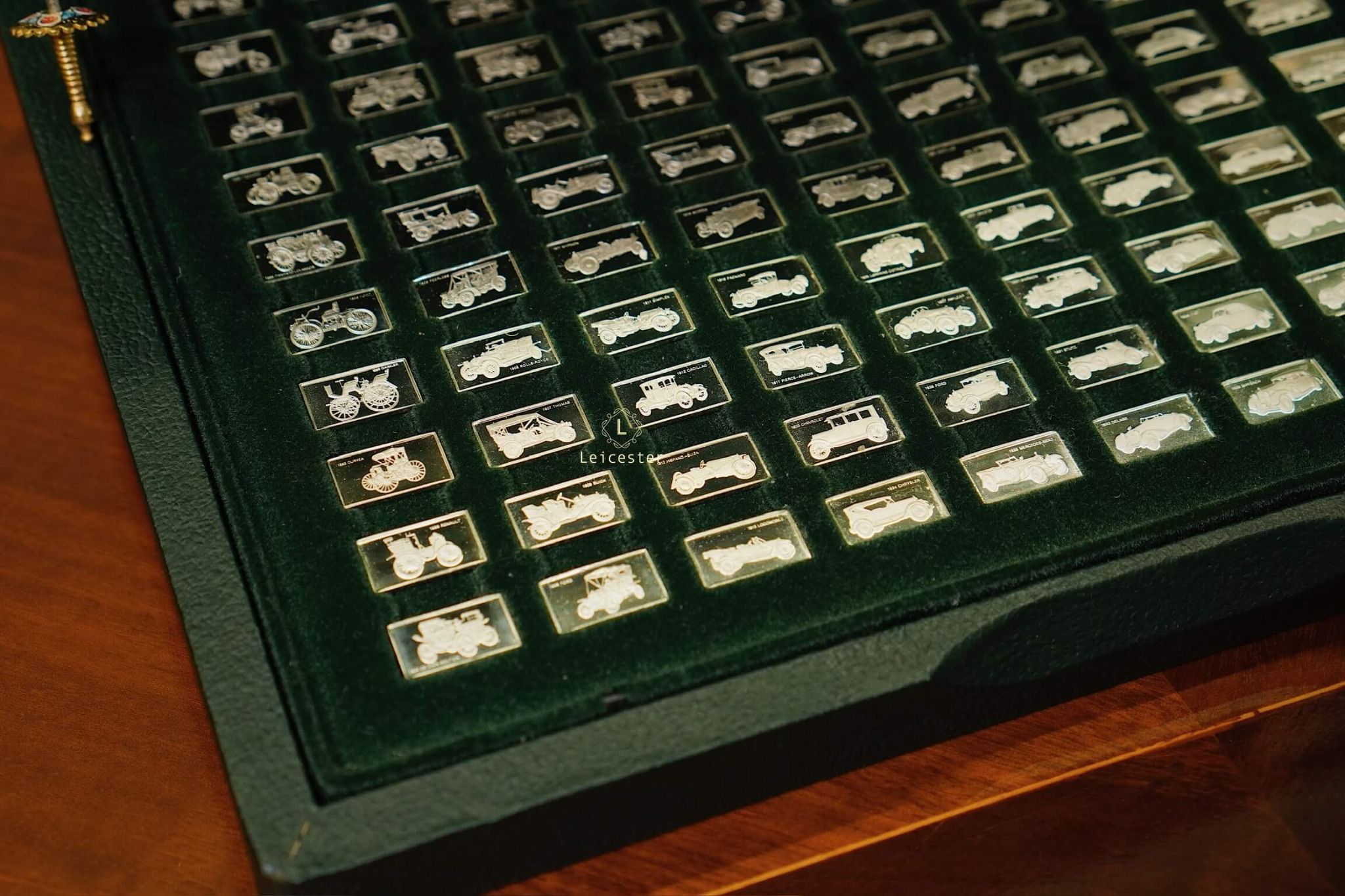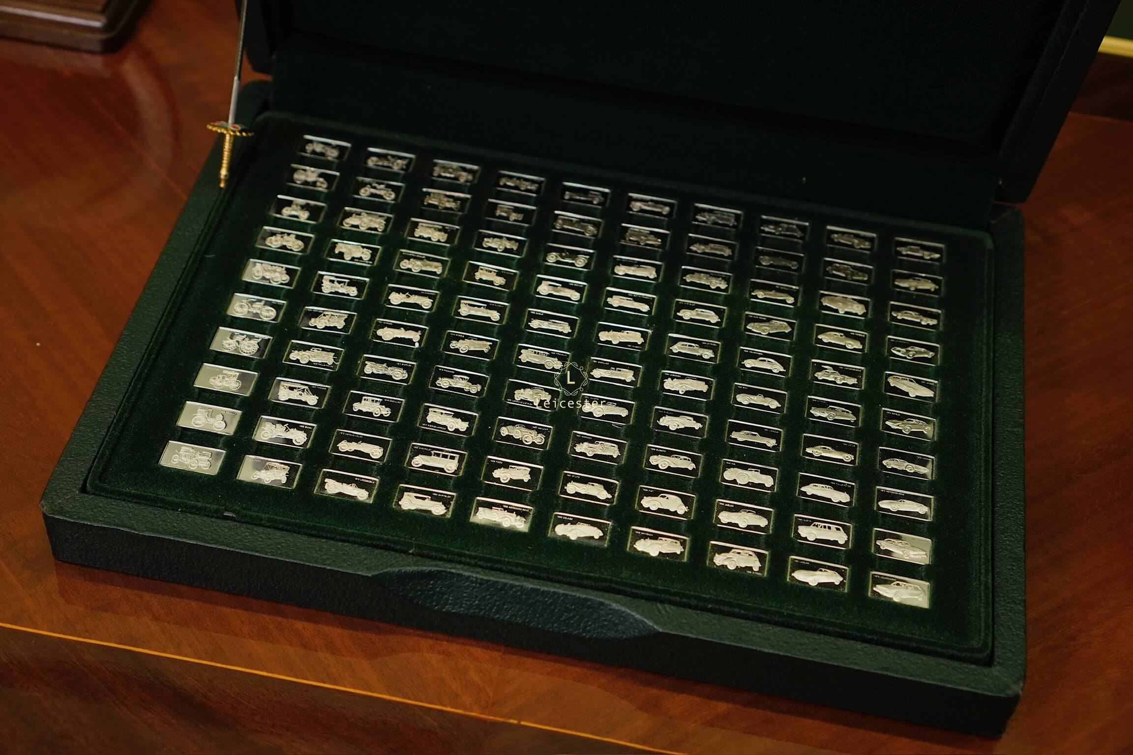 Mỗi medalet bạc trong bộ sưu tập được khắc họa khéo léo, làm nổi bật đường nét đặc trưng của 100 mẫu xe huyền thoại. Ánh bạc thanh khiết kết hợp cùng hộp da sang trọng, lót nhung mềm mịn, mang đến sự đẳng cấp tuyệt đối trong trưng bày. Đây là một lựa chọn xứng đáng cho những ai trân trọng di sản cơ khí và yêu thích vẻ đẹp tinh tế trong không gian sống.