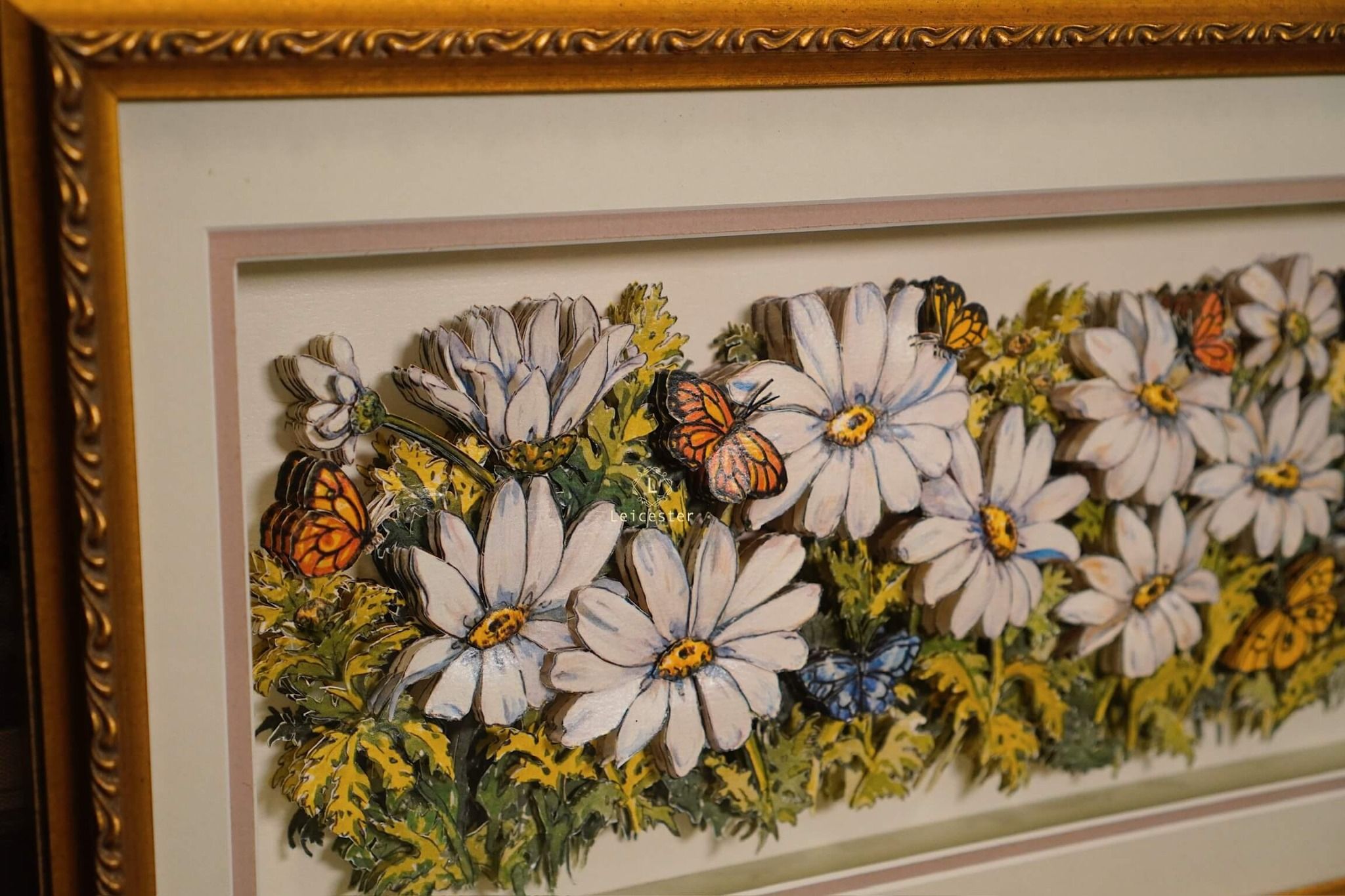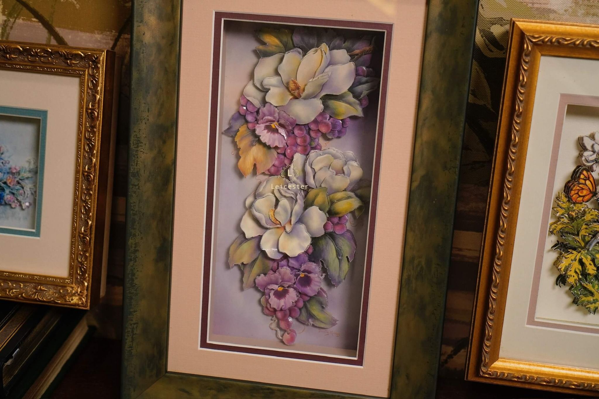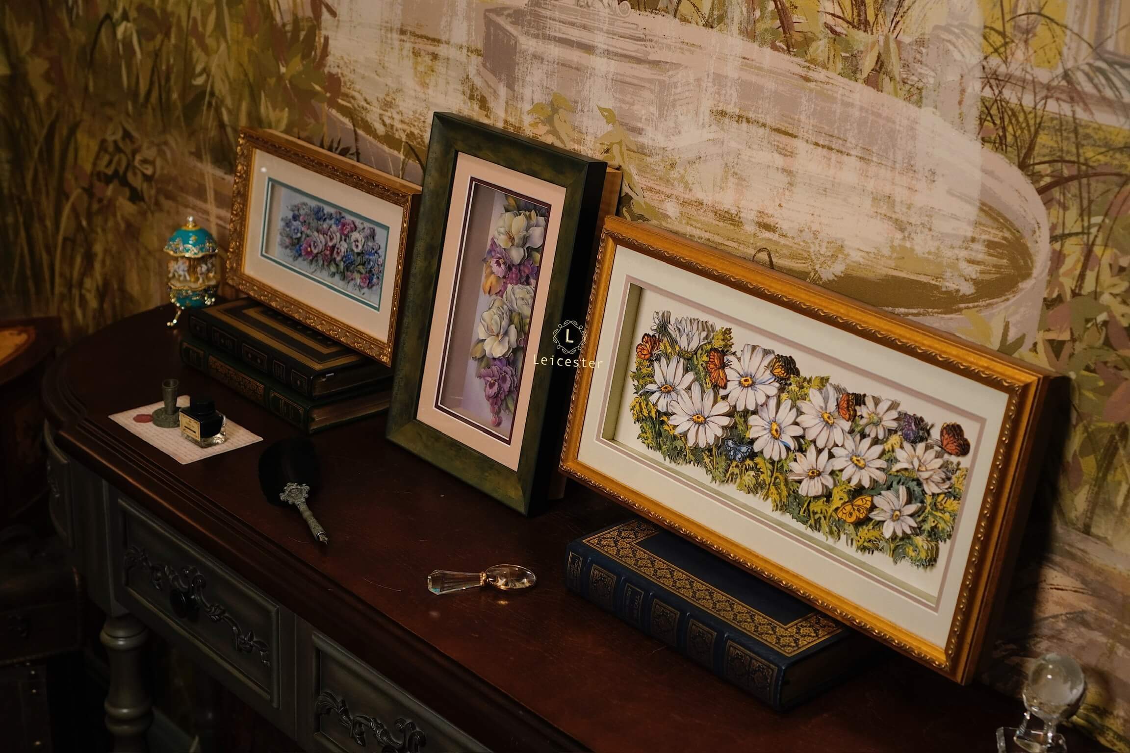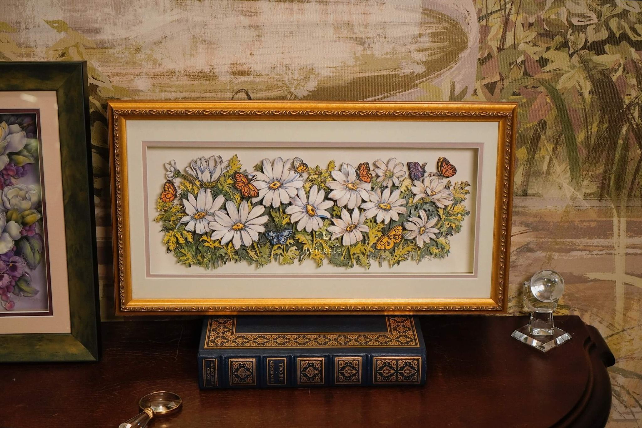 Shadow Art – nghệ thuật tranh đổ bóng là sự kết hợp cắt ghép giấy thủ công với bố cục ánh sáng, tạo nên những bức tranh có chiều sâu và sự chuyển động khi ánh đèn thay đổi. Tác phẩm như một khu vườn thu nhỏ, mang theo sự thanh thoát và mềm mại nhưng đậm chất vintage. Mỗi bông hoa, mỗi cánh lá được cắt tỉa, xếp lớp tỉ mỉ bằng tay, tạo chiều sâu và sự sống động trong từng góc nhìn.