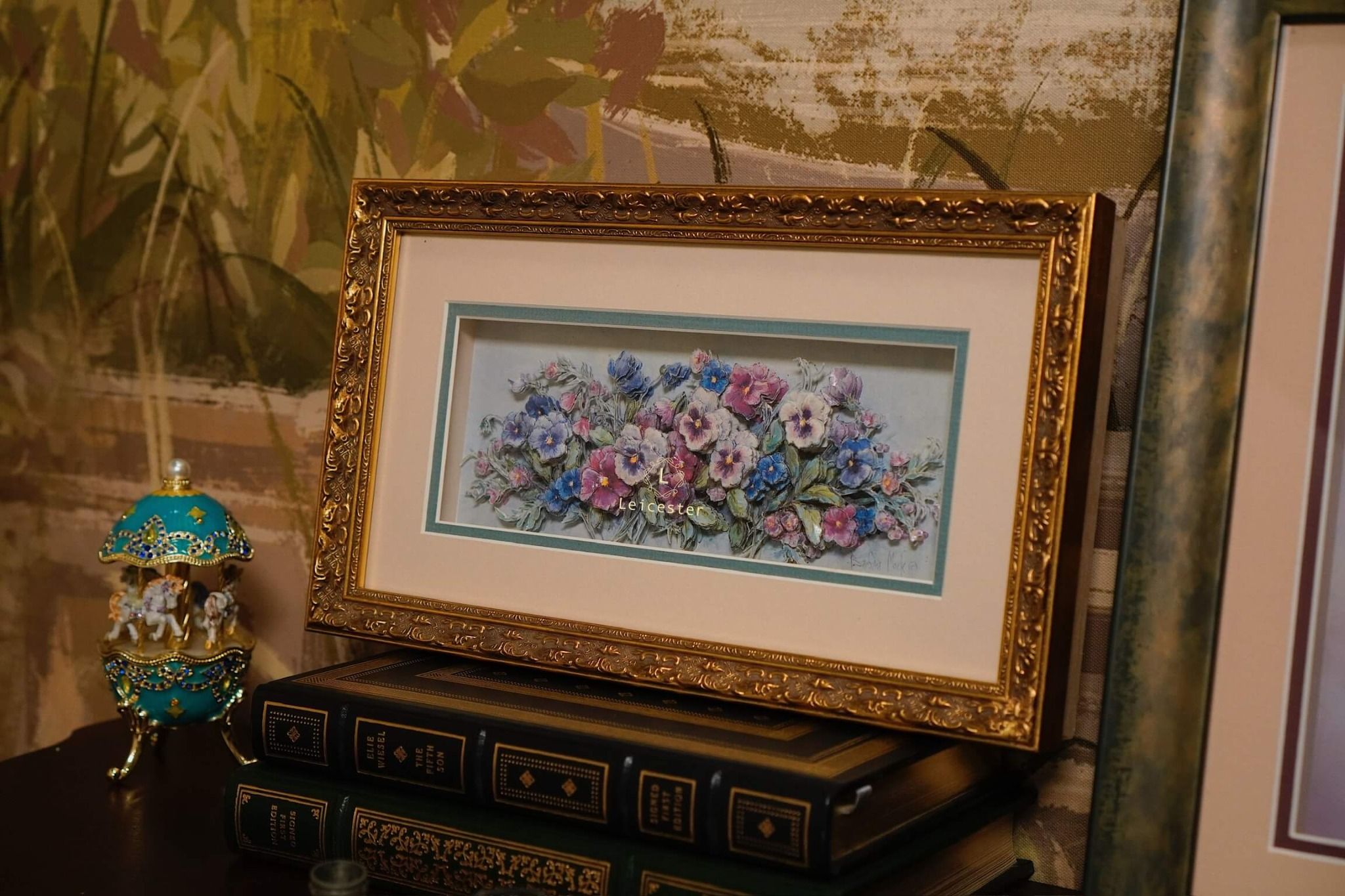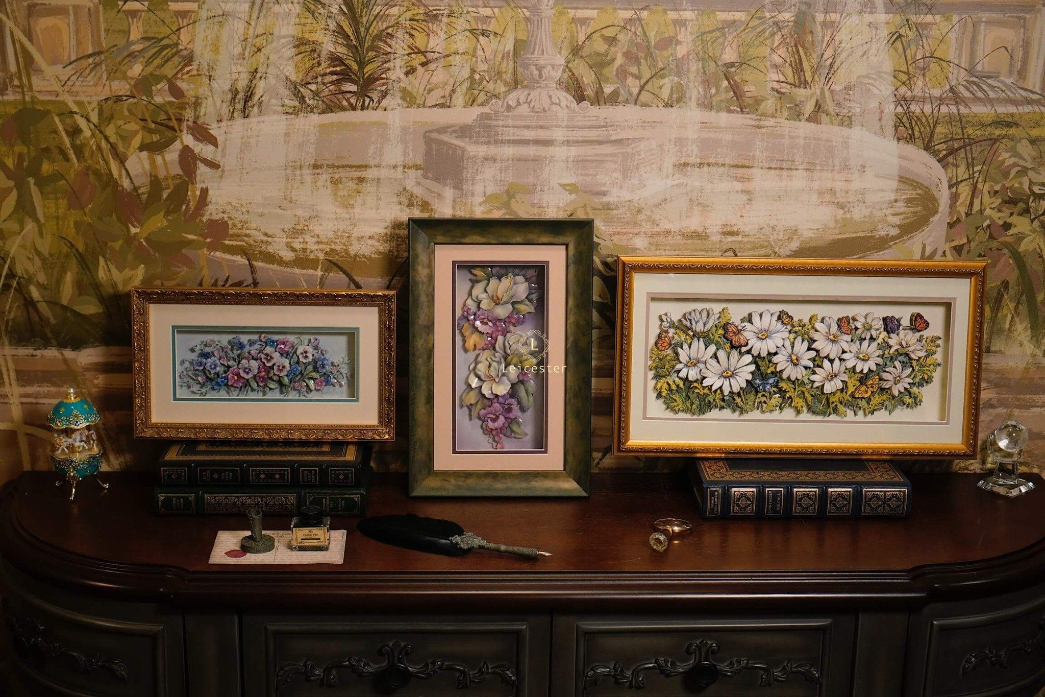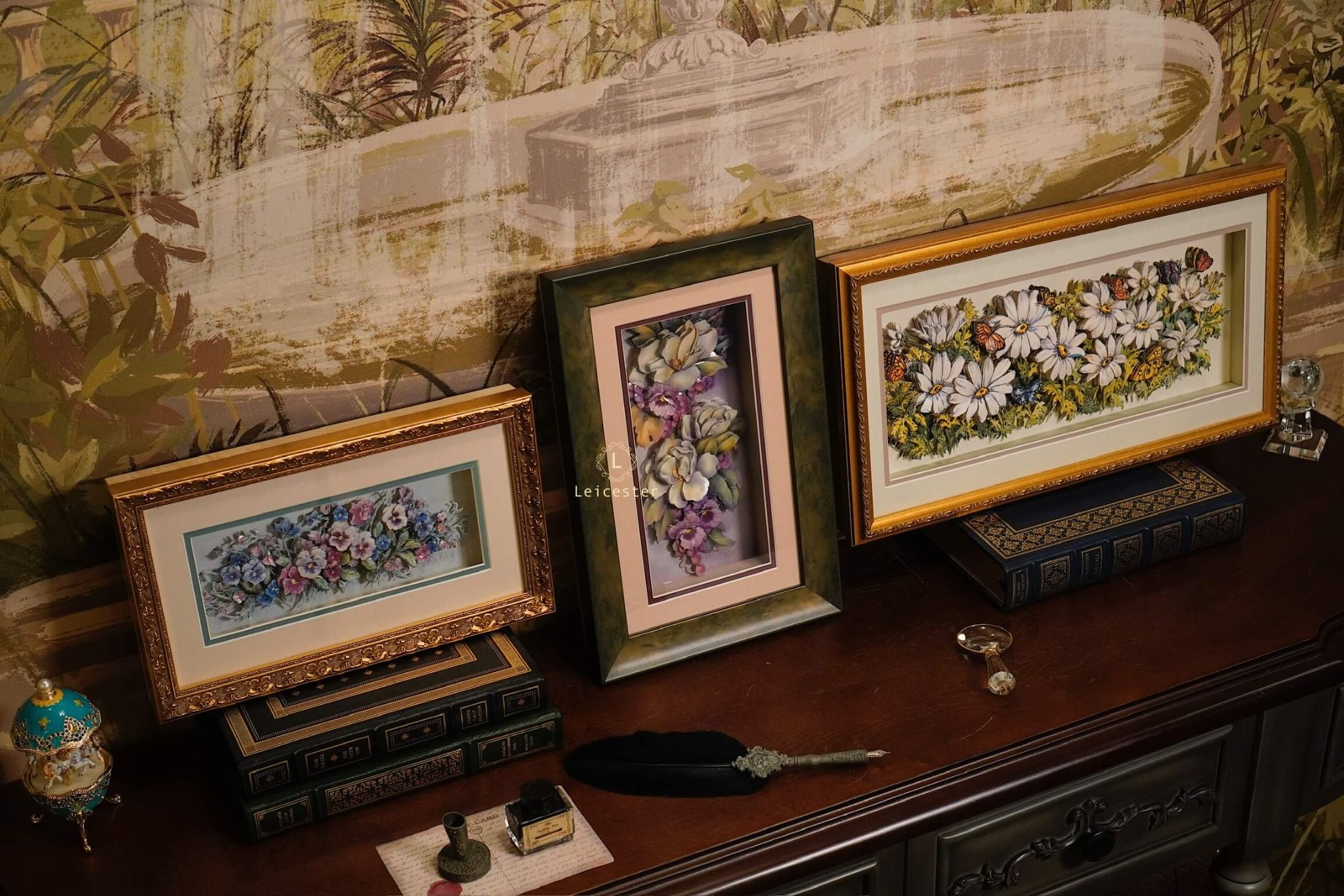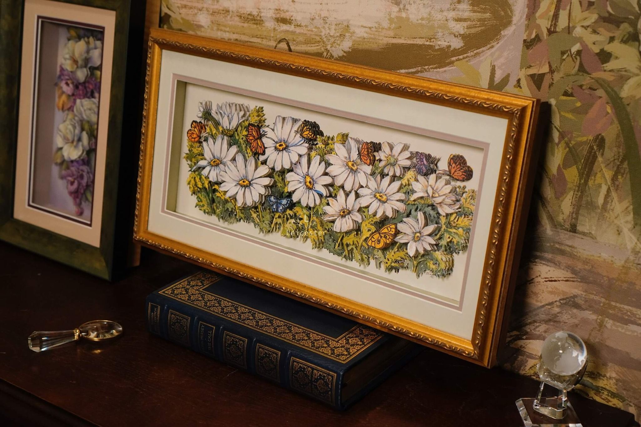 Shadow Art – nghệ thuật tranh đổ bóng là sự kết hợp cắt ghép giấy thủ công với bố cục ánh sáng, tạo nên những bức tranh có chiều sâu và sự chuyển động khi ánh đèn thay đổi. Tác phẩm như một khu vườn thu nhỏ, mang theo sự thanh thoát và mềm mại nhưng đậm chất vintage. Mỗi bông hoa, mỗi cánh lá được cắt tỉa, xếp lớp tỉ mỉ bằng tay, tạo chiều sâu và sự sống động trong từng góc nhìn.