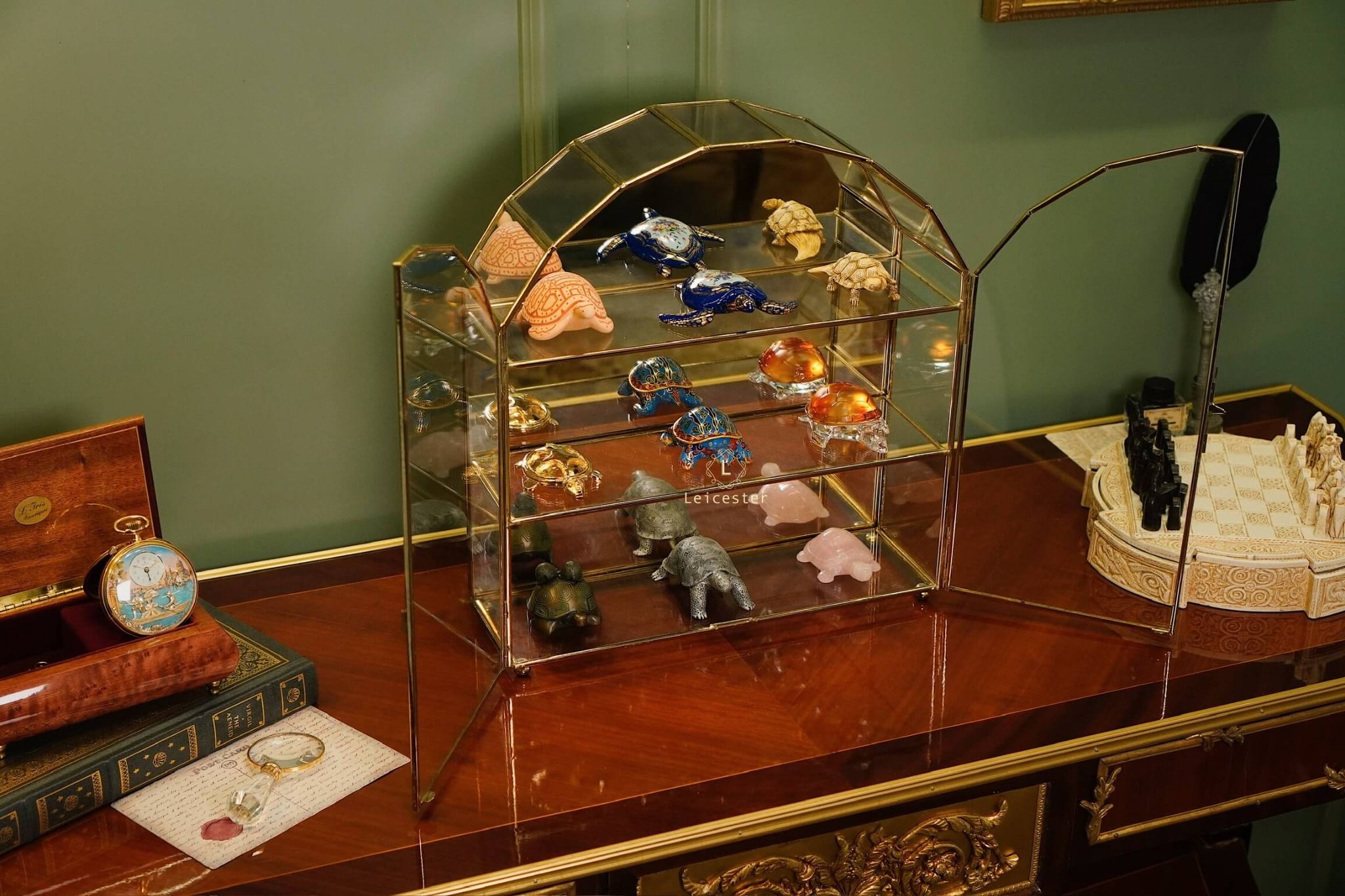 Bộ sưu tập gồm 9 con rùa được Franklin Mint chế tác thủ công từ 9 chất liệu khác nhau và trưng bày trong kệ tủ kính nguyên bản.