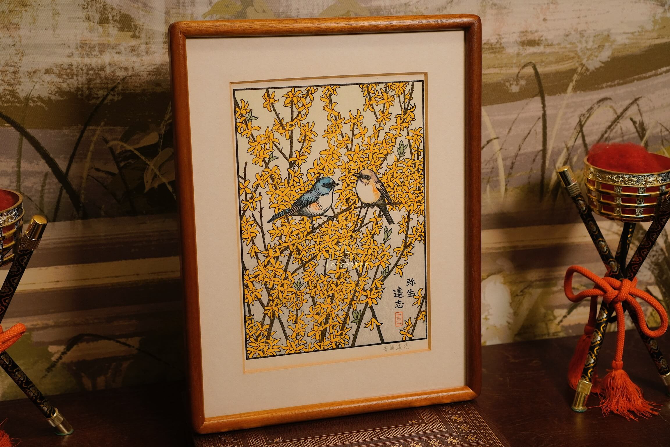 Bộ tranh mộc bản “Birds and Flowers” là khúc giao hòa giữa con người và thiên nhiên, nơi mỗi loài chim, mỗi nhành hoa đều ẩn chứa một triết lý sống thanh tịnh và tinh tế - nét đặc trưng trong mỹ học Nhật Bản. Mỗi bức tranh là một hơi thở thiên nhiên, vừa tĩnh lặng, vừa tràn đầy sức sống - nơi sắc xuân bừng sáng, niềm tin lan tỏa và tình yêu bền vững. Tất cả hòa quyện như một bản giao hưởng nhẹ nhàng của màu sắc và cảm xúc, mang đến cảm giác an nhiên, sang trọng và đầy sức sống cho không gian trưng bày.