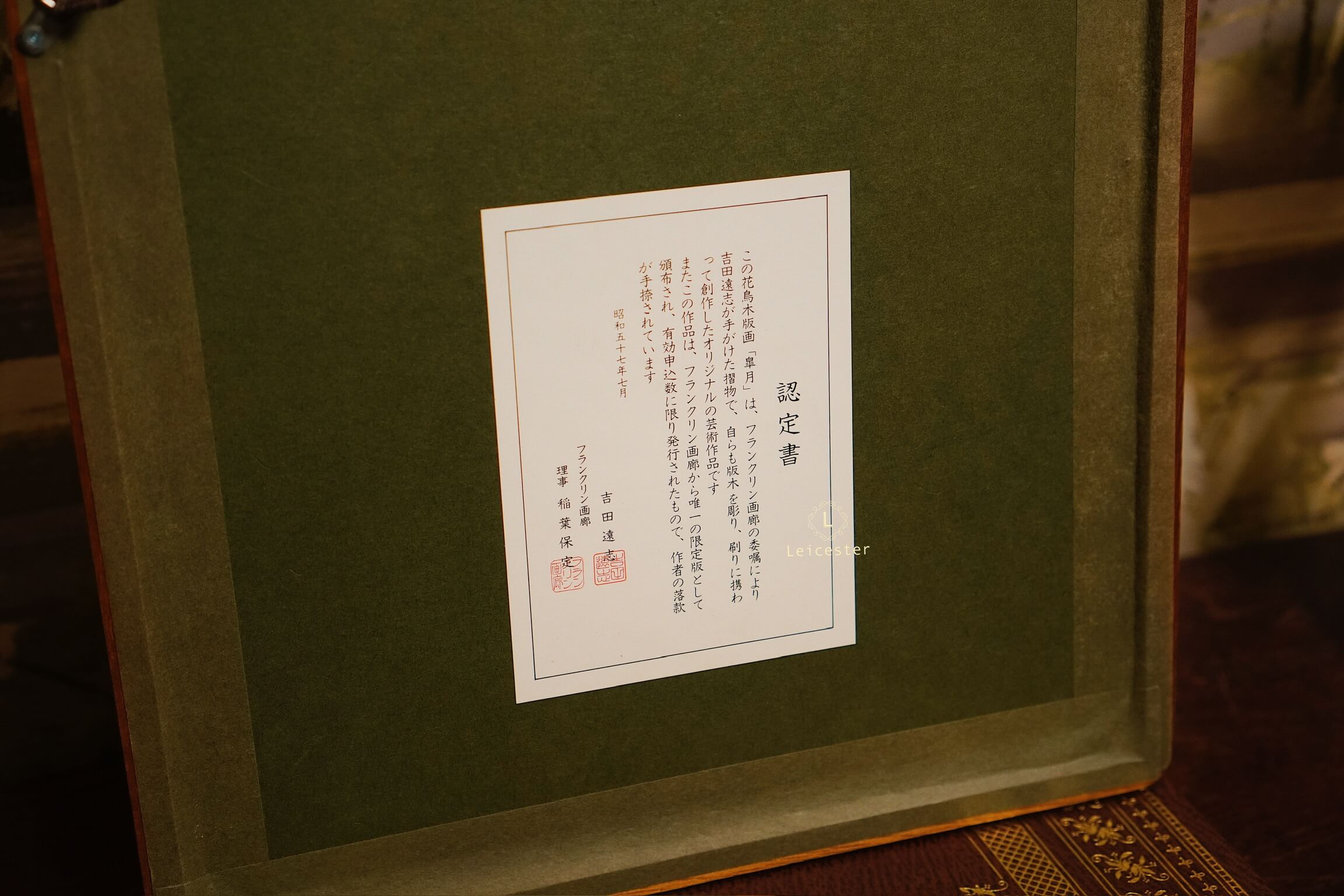 Là tác phẩm thuộc trường phái Shin-hanga (Tân Mộc Bản Họa) - dòng tranh dung hòa giữa vẻ đẹp cổ điển của Ukiyo-e và tinh thần hiện đại đầu thế kỷ 20. Bộ tranh do Ito Sozan - nghệ nhân tài hoa thời kỳ Taishō sáng tác và được xuất bản bởi Watanabe Shozaburō - thương hiệu danh tiếng của Tokyo nổi tiếng với kỹ thuật in tay mộc bản trên giấy washi cao cấp.