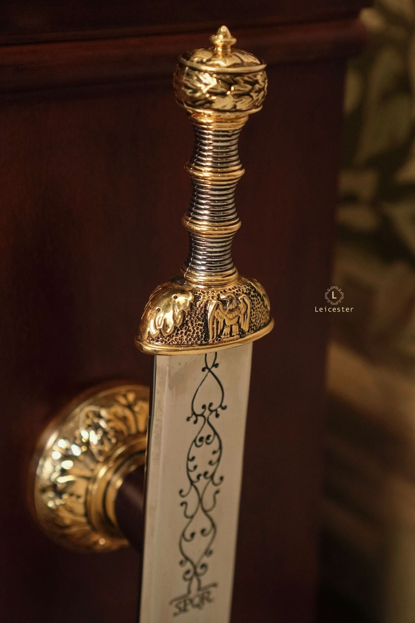 Chất liệu: Gỗ gụ, kim loại mạ vàng 24k