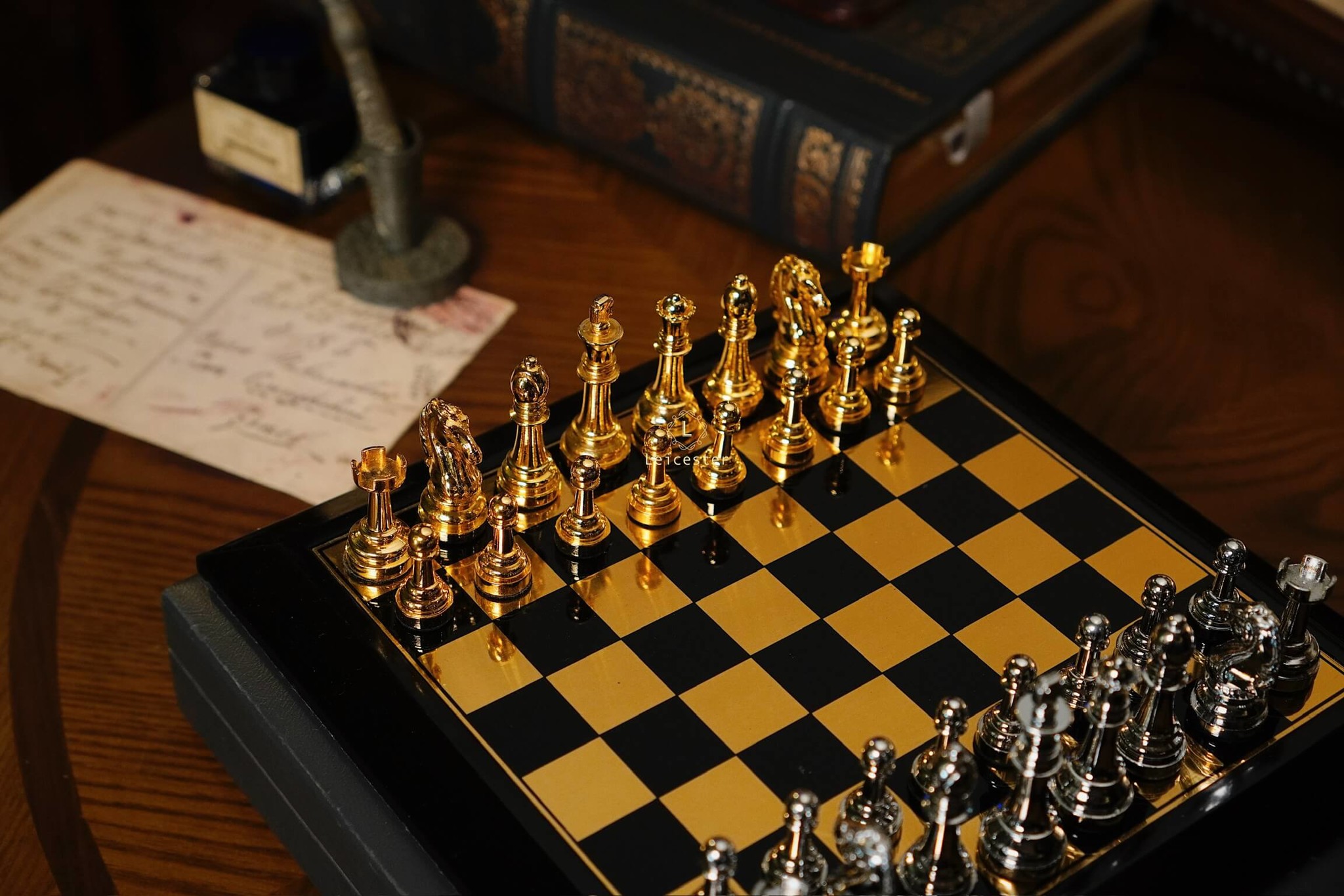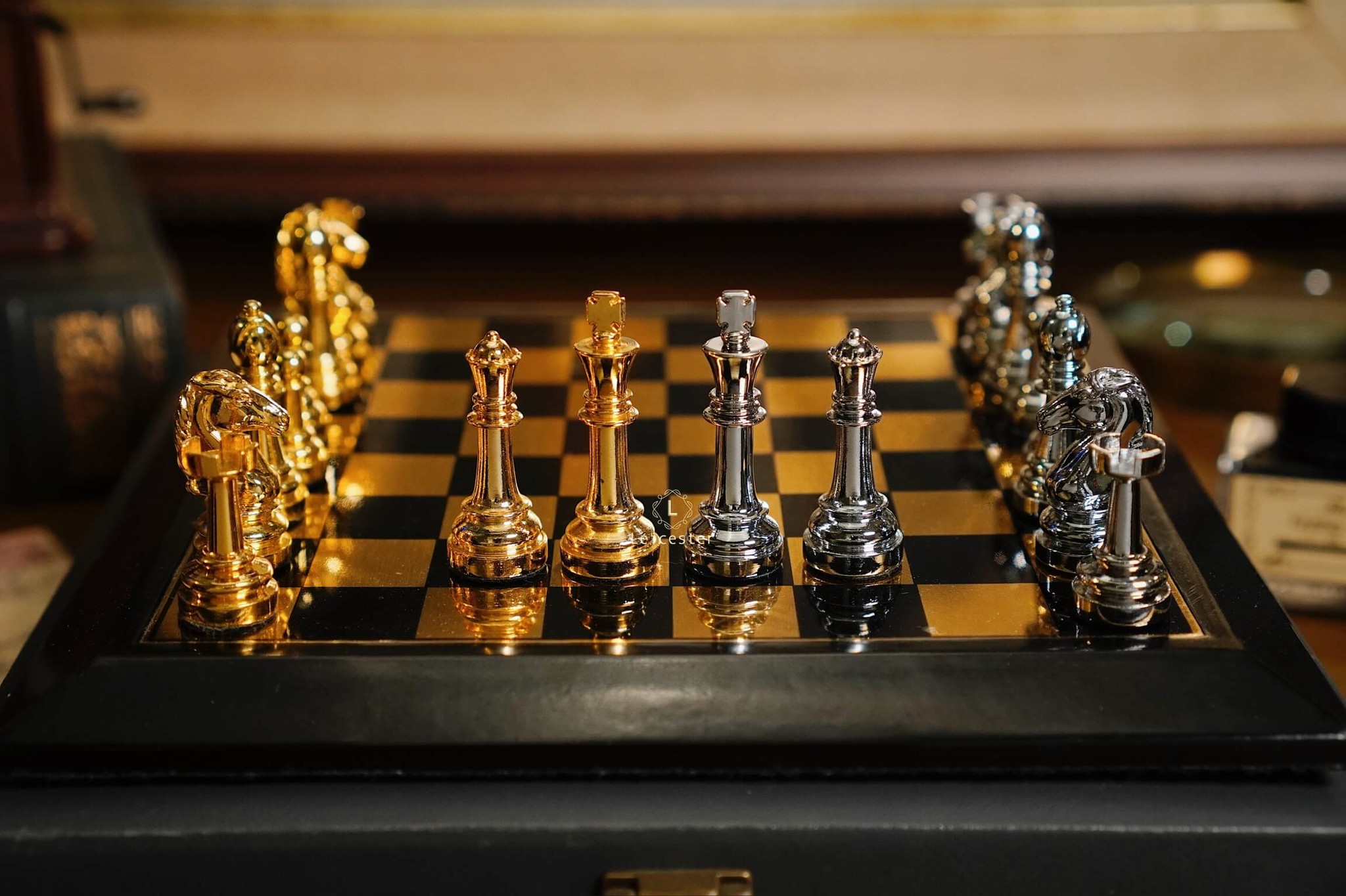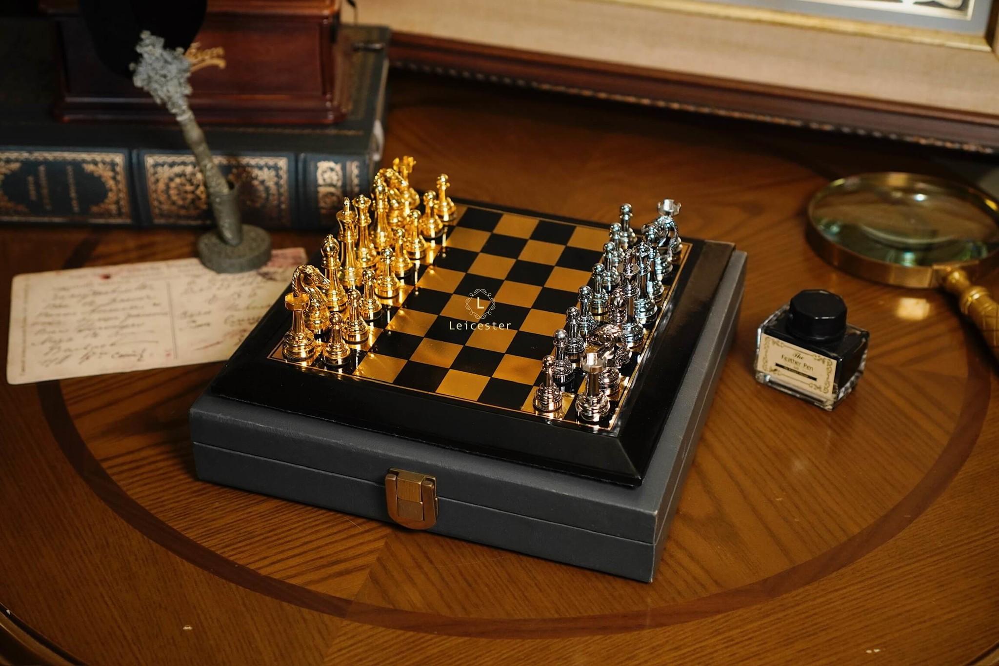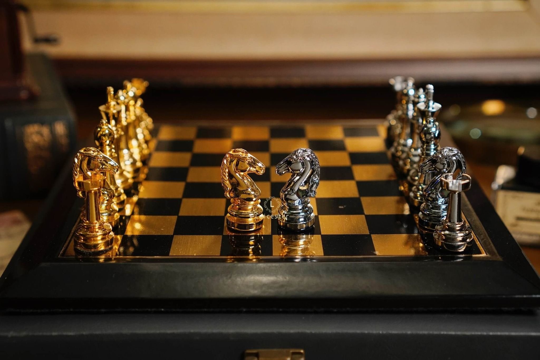 - Quân cờ: kim loại, đế lót nhung